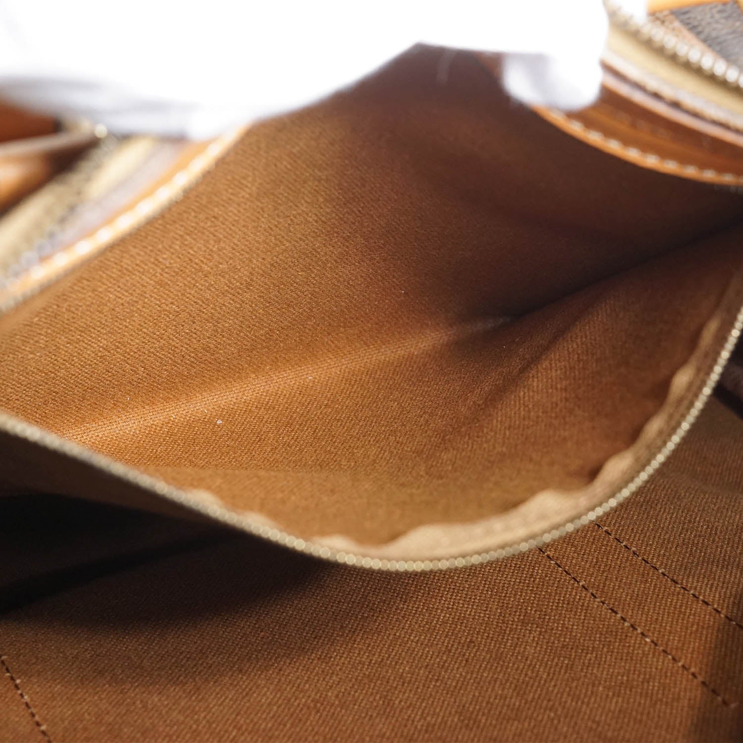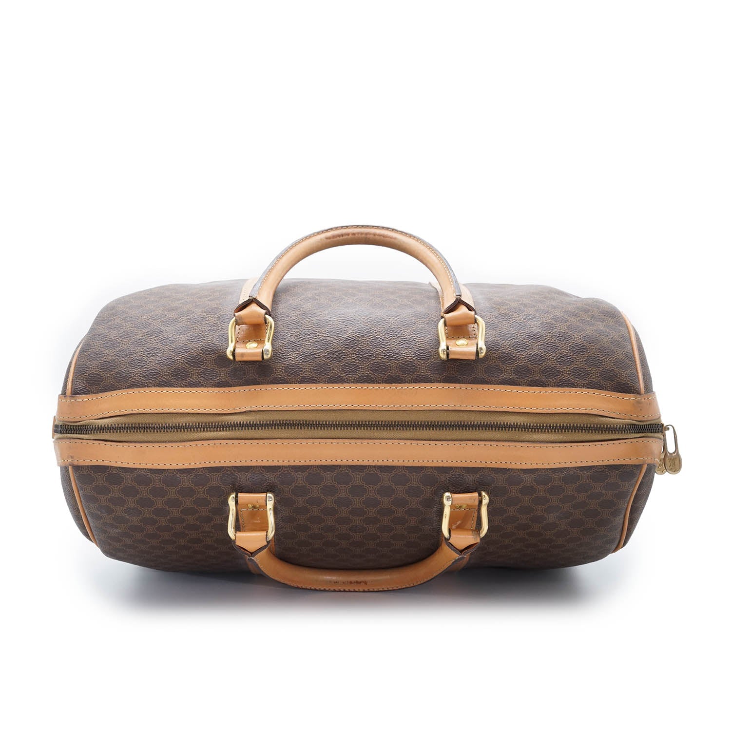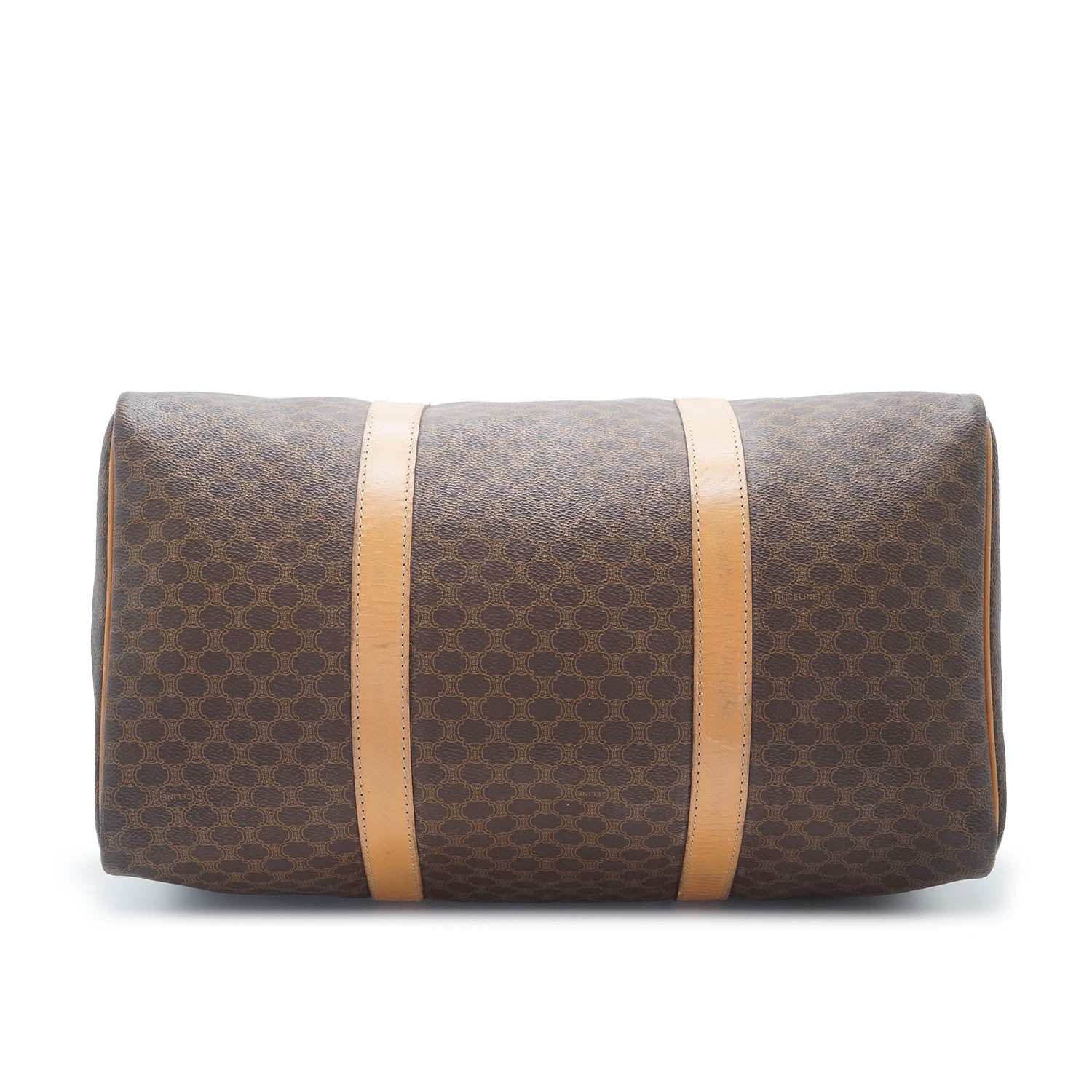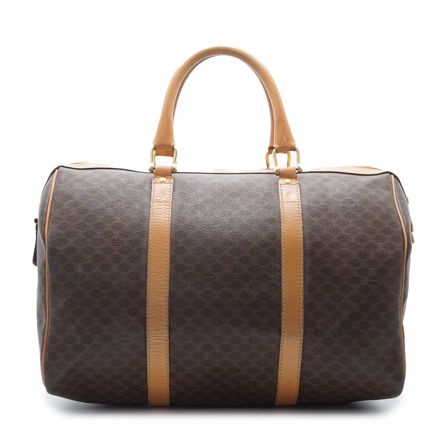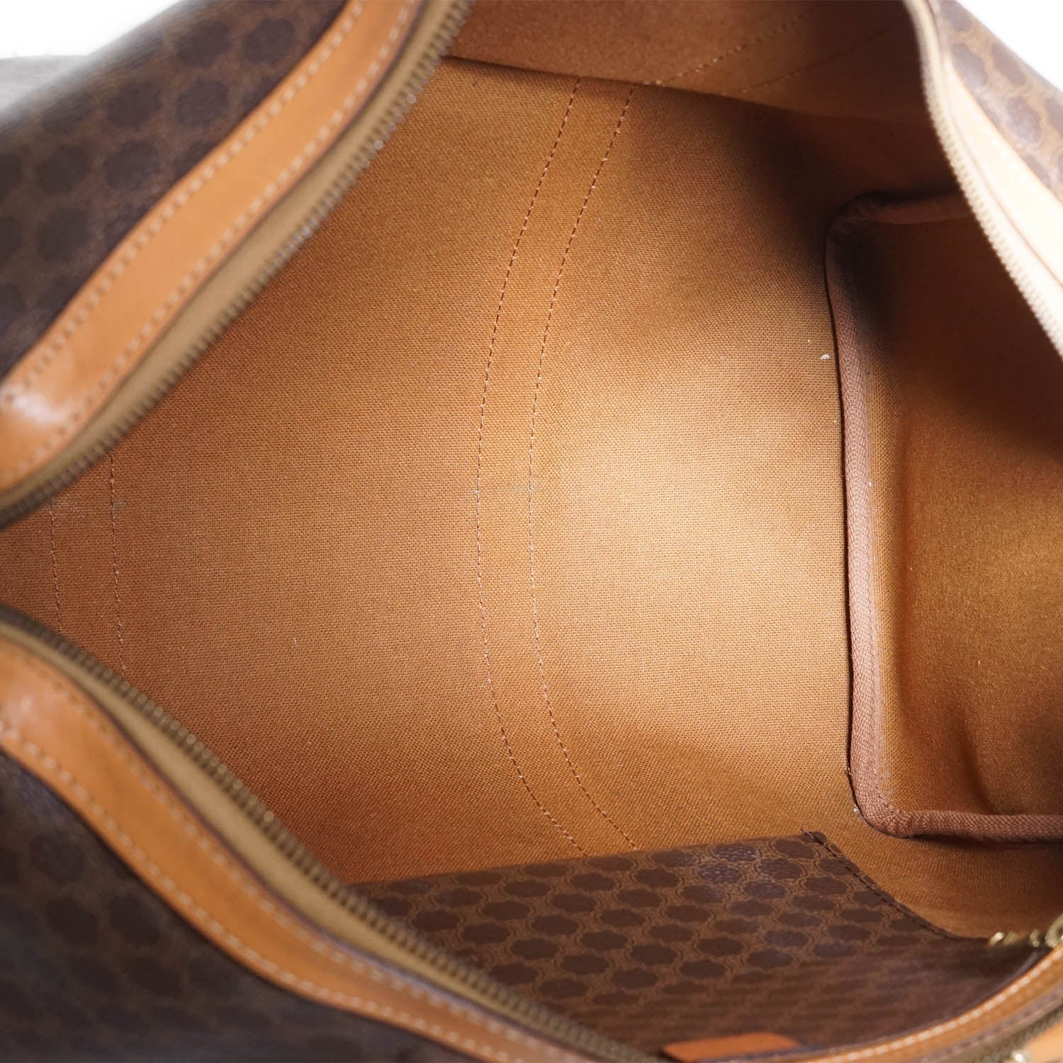 Macadam Boston Bag Brown Canvas, LeatherDepth: 21cmHeight: 25cmWidth: 40cmHand Drop: 18cmStain: Some black stains/discoloration marks on the leather parts, minor pen marks on the inside pocketDiscoloration: Hardware tarnish, visible leather discoloration on the leather parts (top handles, near the zipper, piping)Scratch: Some corner rub, some scratches on the leather partsPeeling: Some creasing and minor cracking on the side leather tabsSerial code: SL