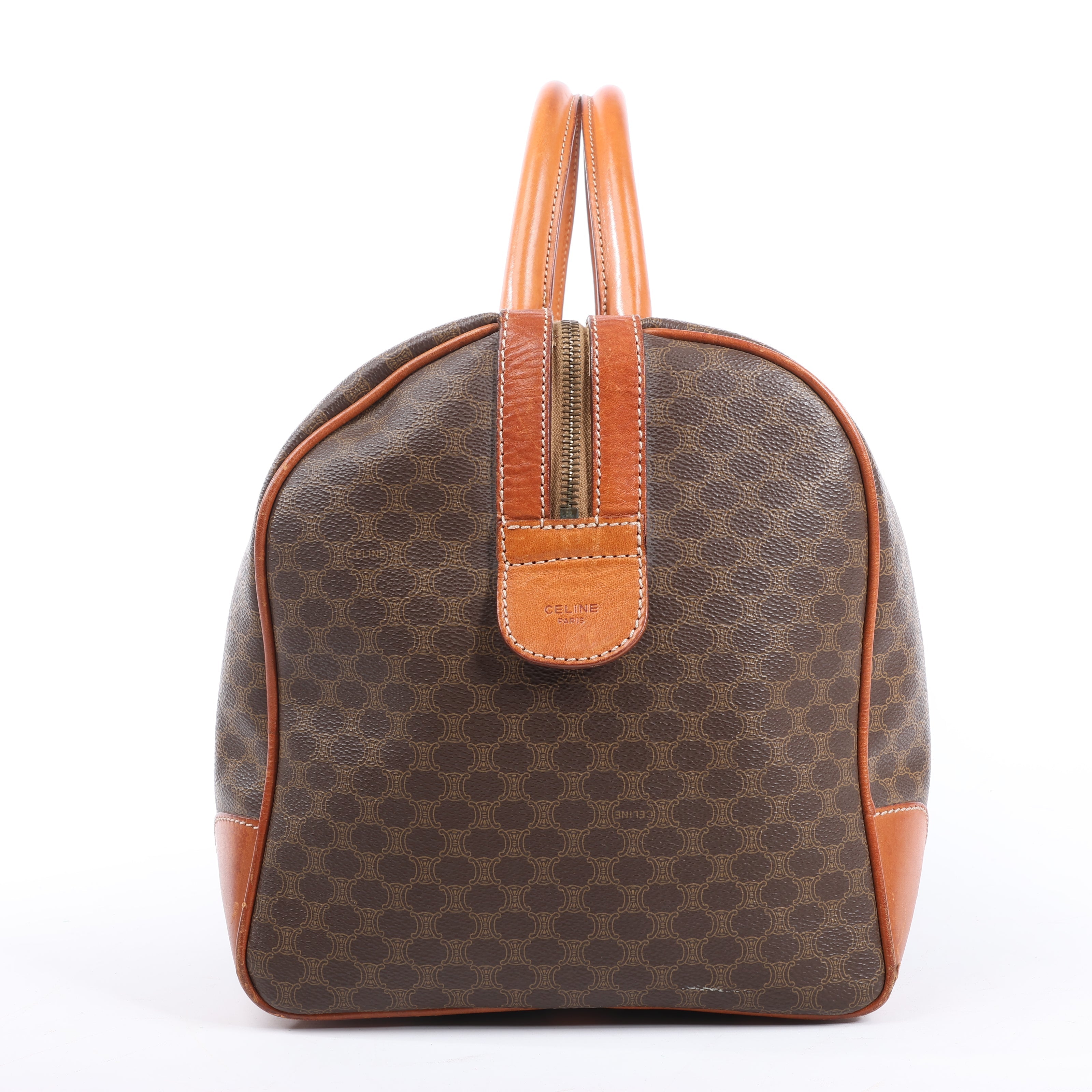 Celine Macadam Boston PVC & Leather Travel Bag in Brown