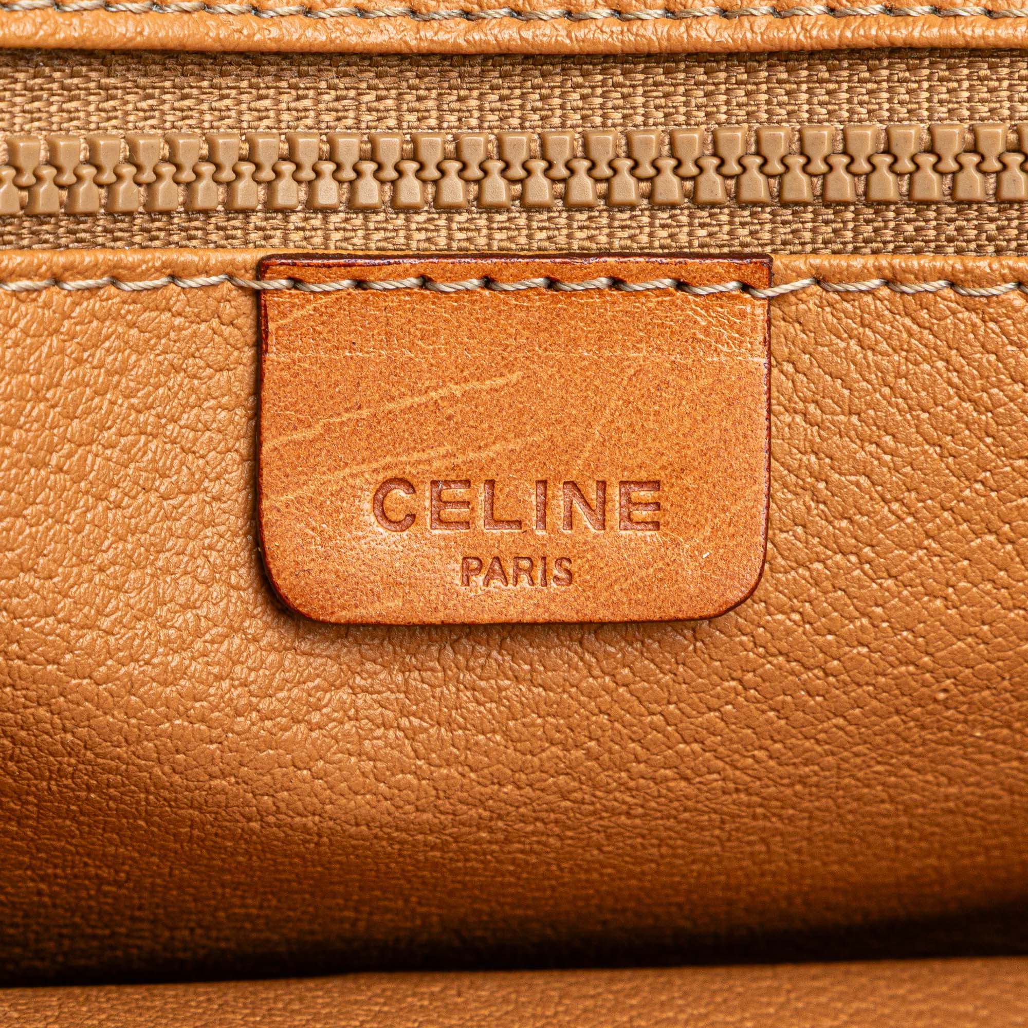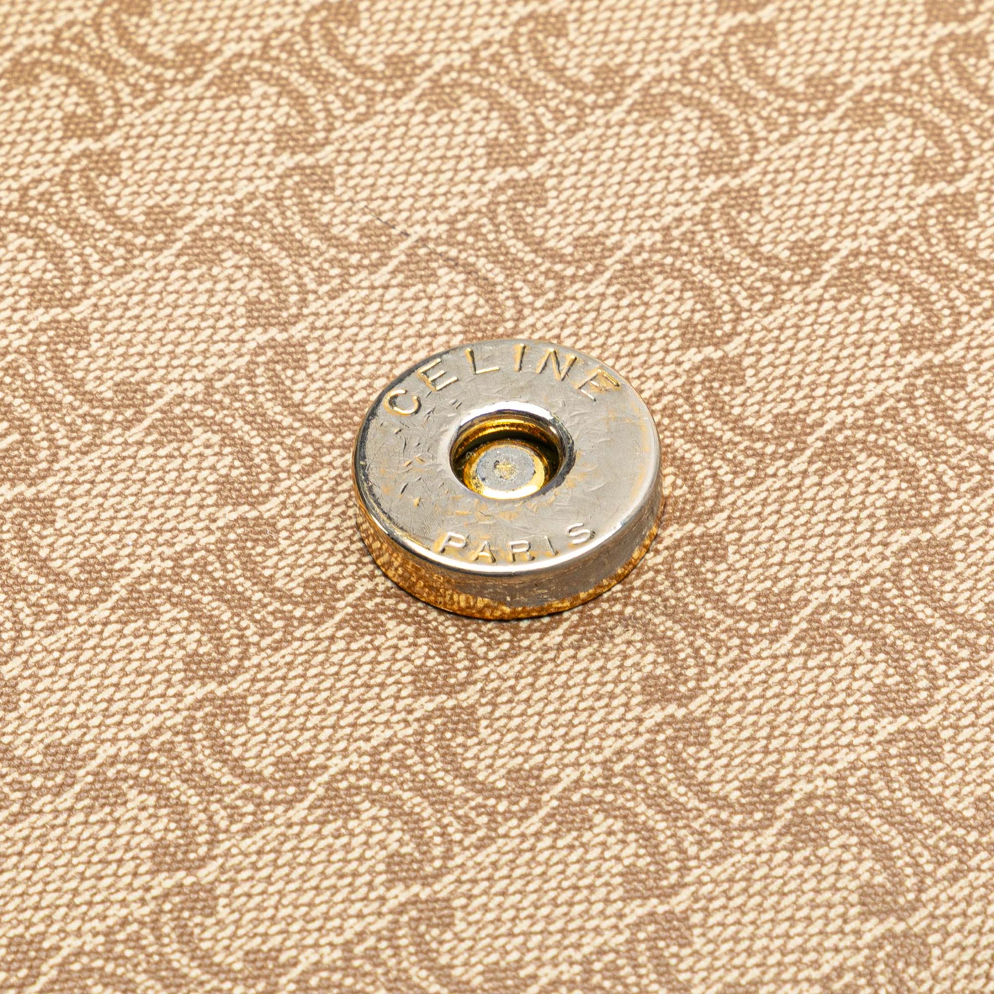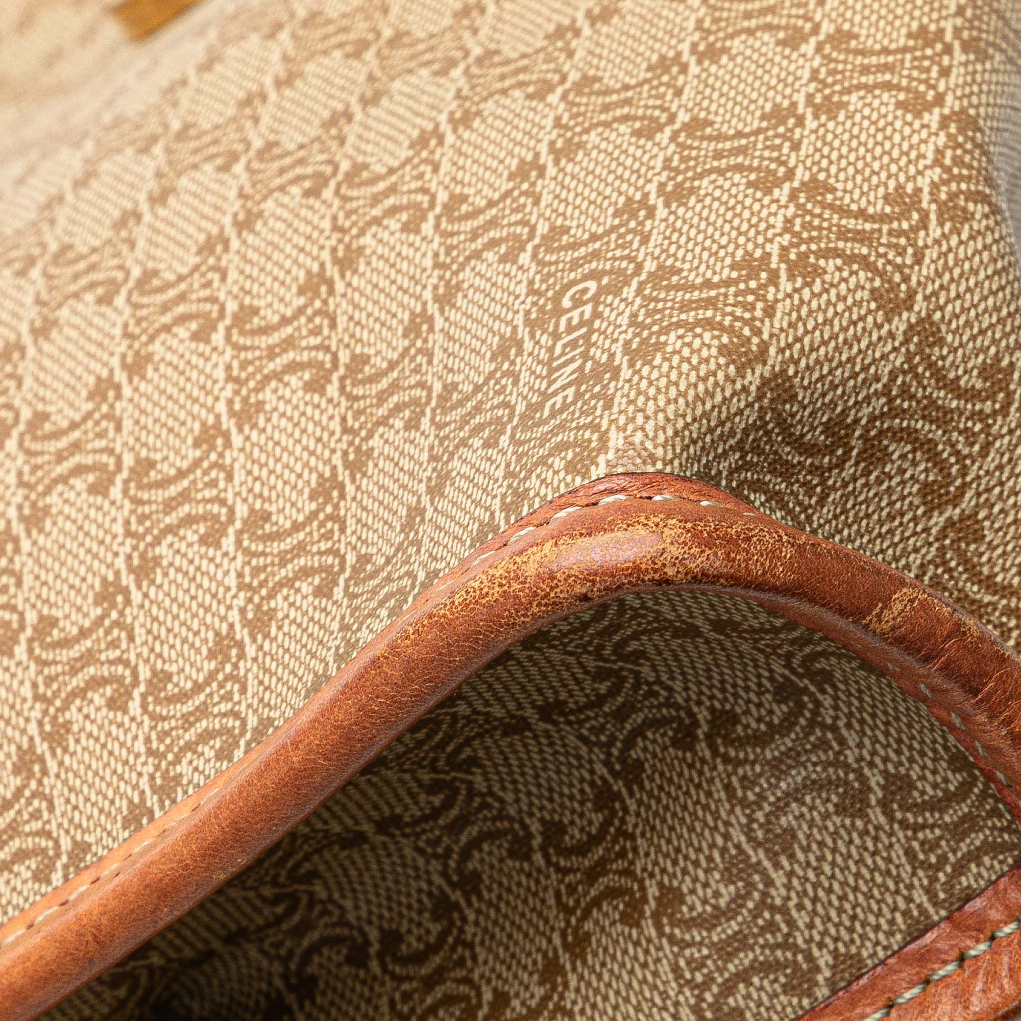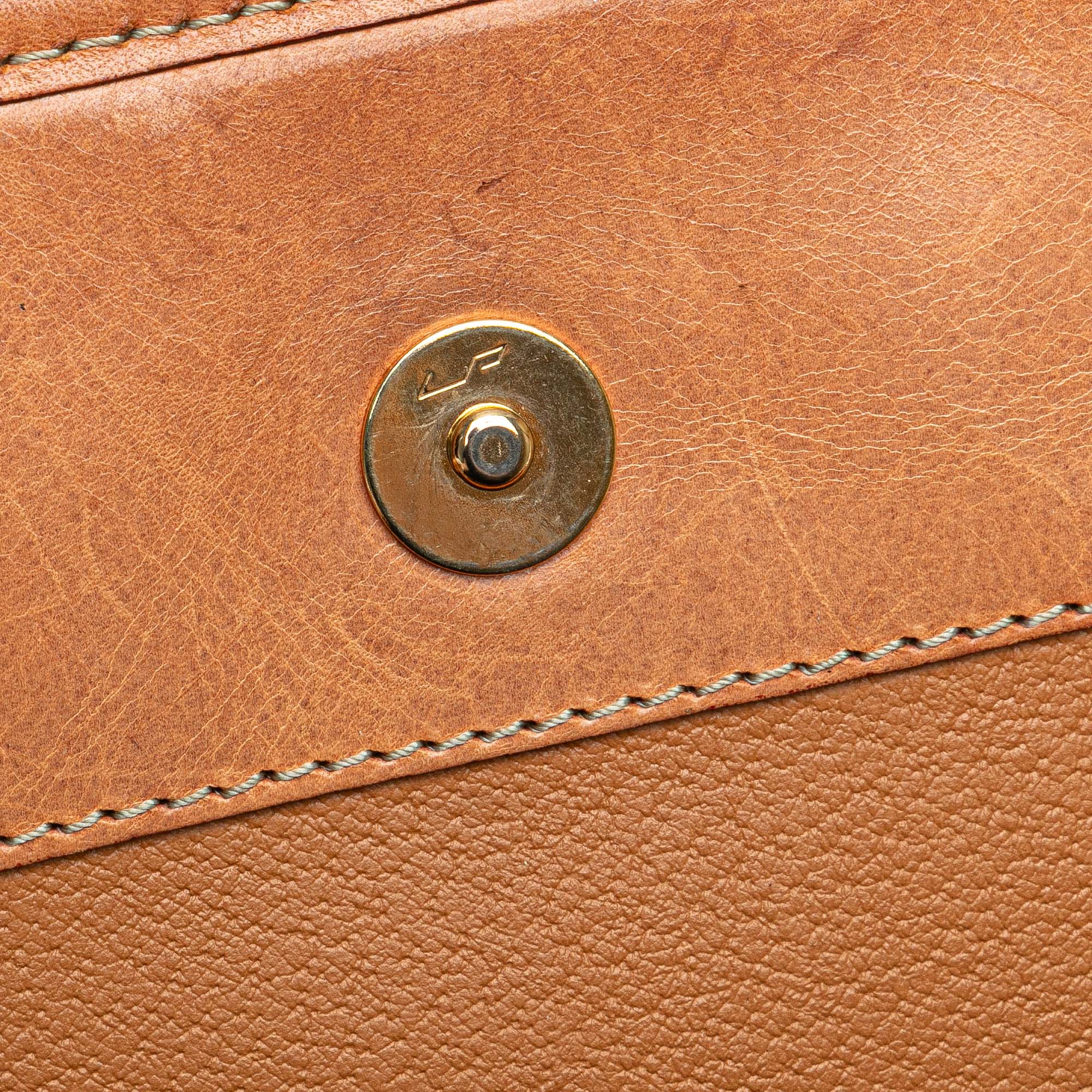 This crossbody bag features a coated canvas body with leather trim, a flat leather strap, a front flap with magnetic snap closure, and an interior zip pocket. Retail Price: 780.00
