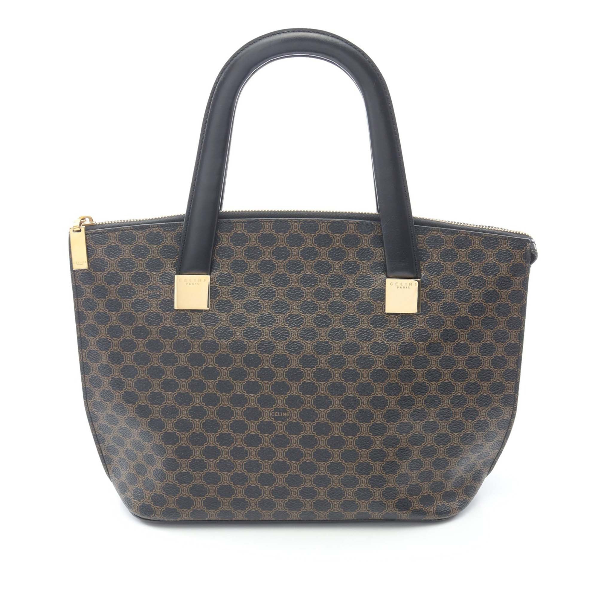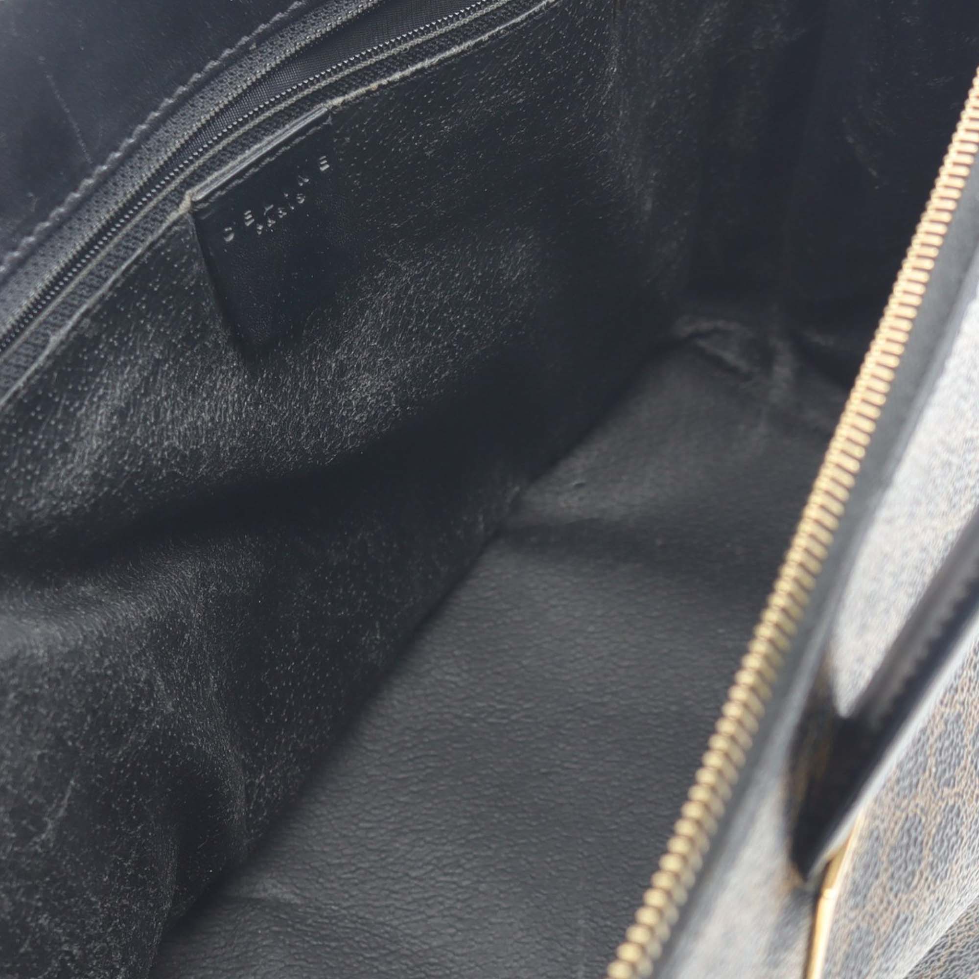 This handbag features a coated canvas body, flat leather handles, a top zip closure, and interior zip and slip pockets. Retail Price: 1550.00
