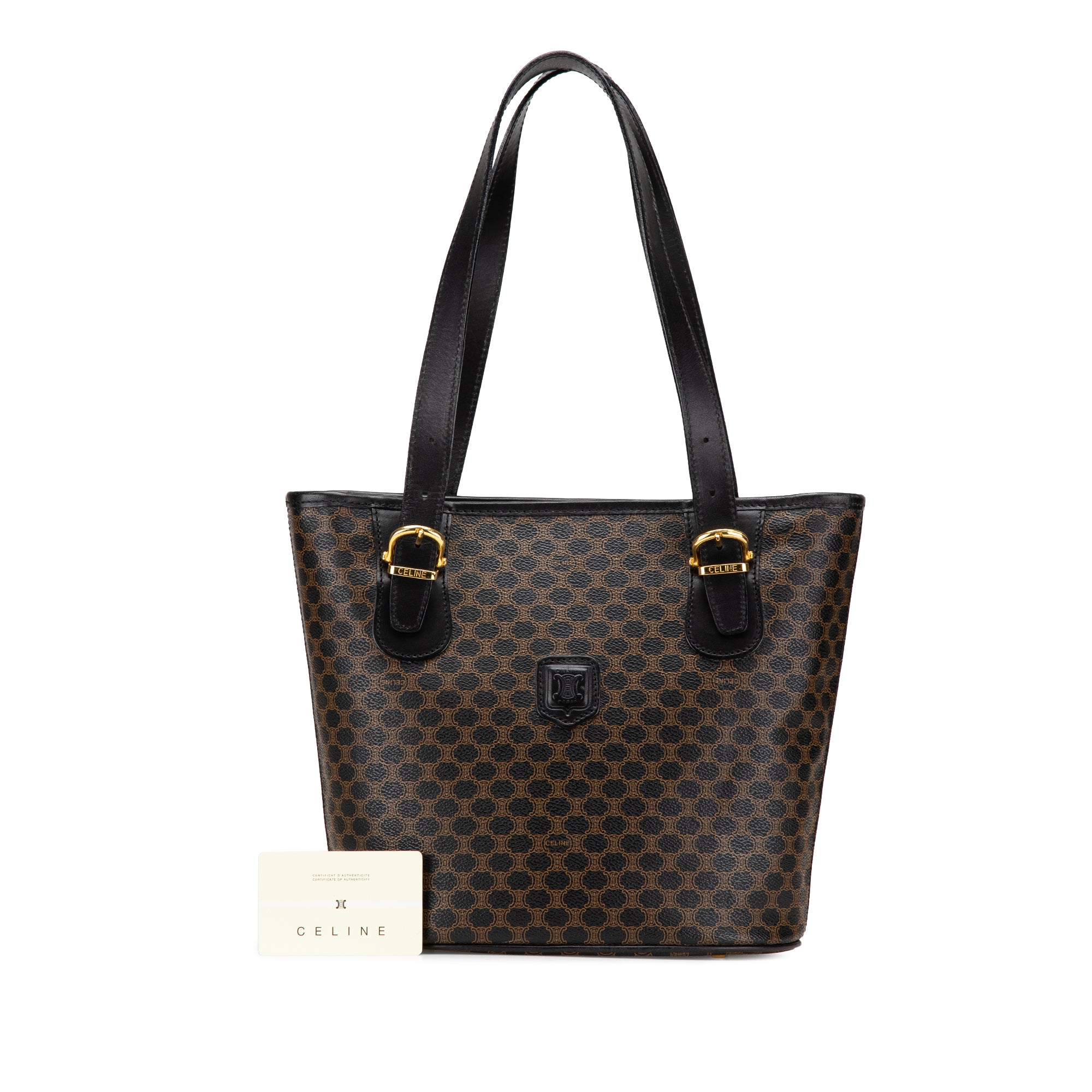 This tote bag features a coated canvas body with leather trim, flat leather shoulder straps, an open top, and an interior zip compartment. Inclusion: authenticity card. Retail Price: 800.00
