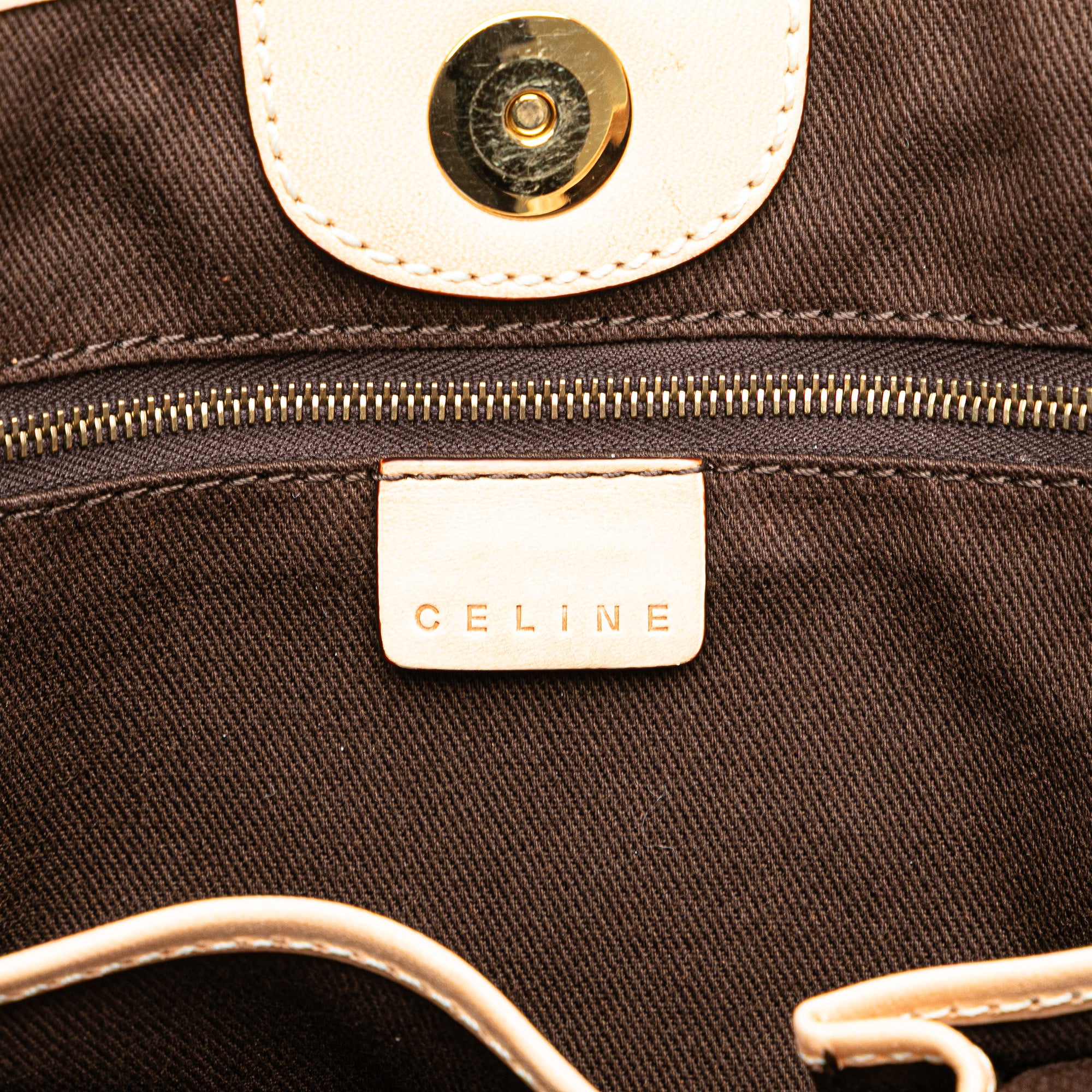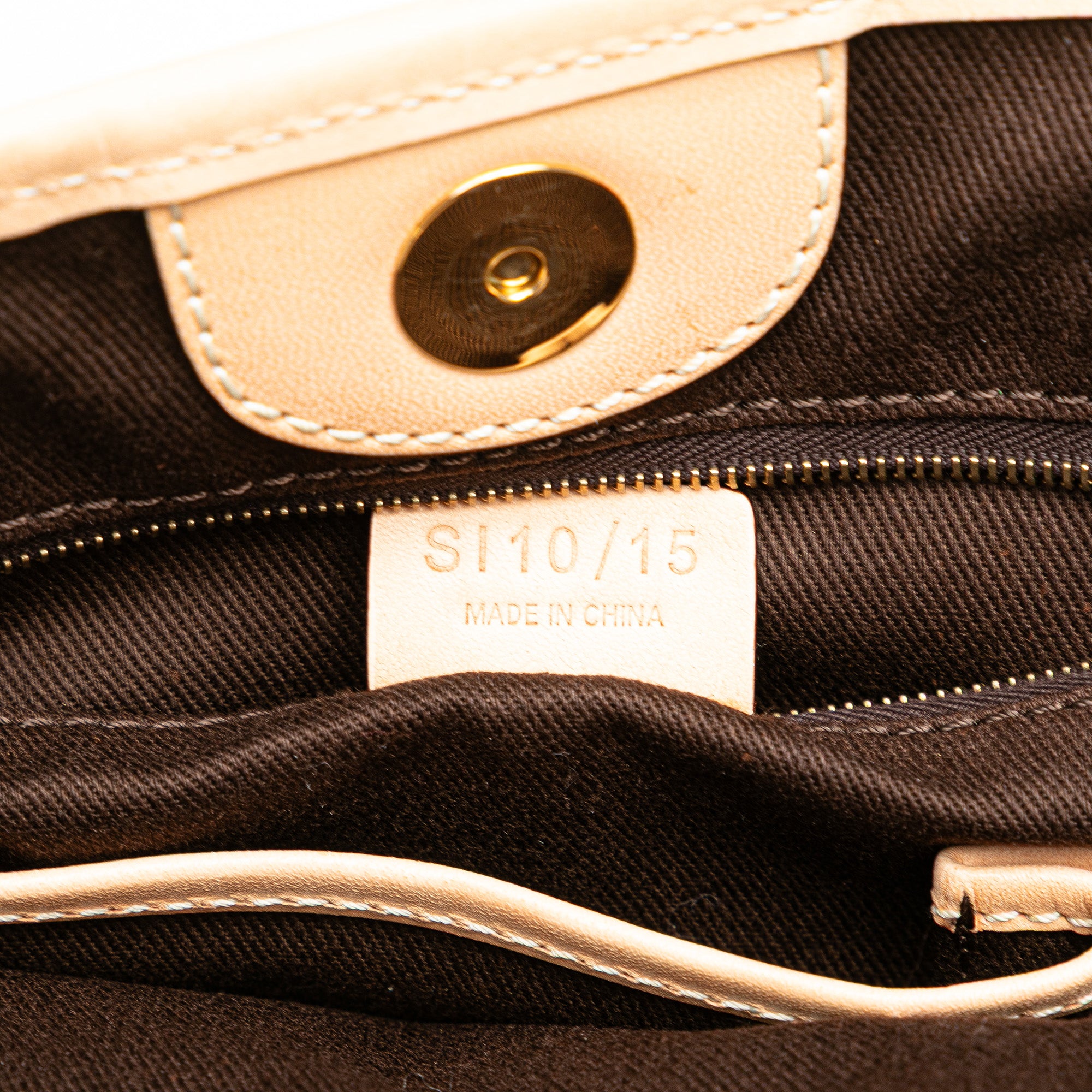 This tote bag features a coated canvas body with leather trim, flat leather straps, an open top with magnetic snap closure, and interior zip and slip pockets. Inclusion: Dust bag, authenticity card. Retail Price: 725.00