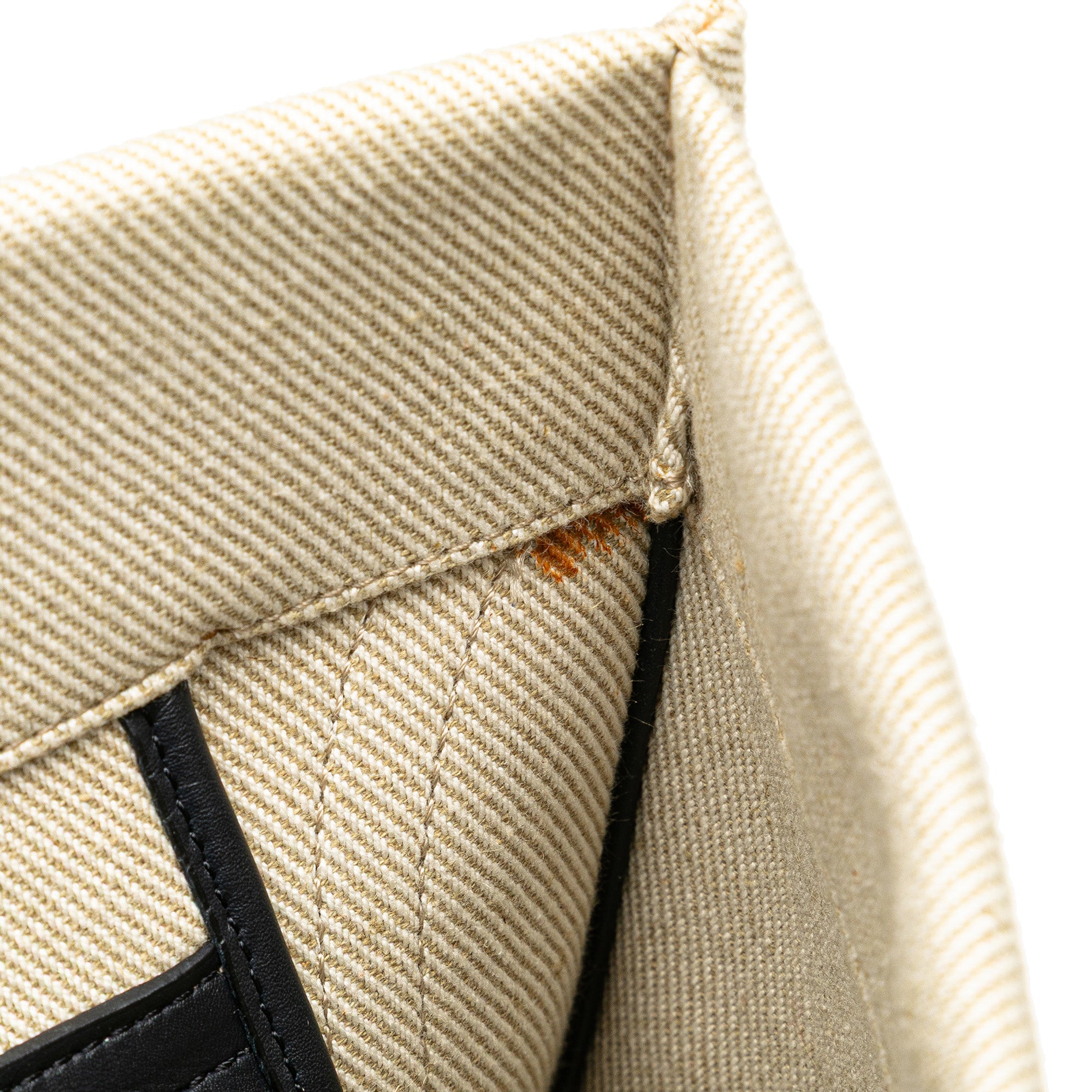 The Phantom tote bag features a canvas body with leather trim, rolled leather handles, an open top with pull-through closure, an exterior front zip pocket, and an interior zip pocket. Retail Price: 2250.00