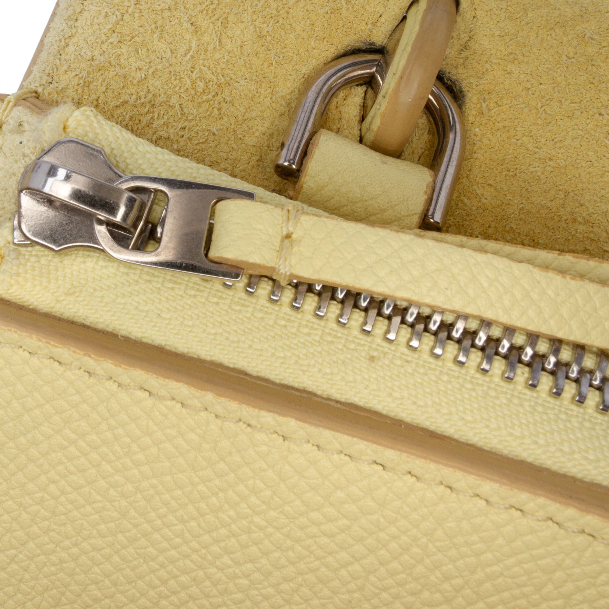 This satchel features a leather body, a flat leather handle, a flat and detachable leather strap, a front clasp closure, and an exterior zip pocket. Retail Price: 2700.00