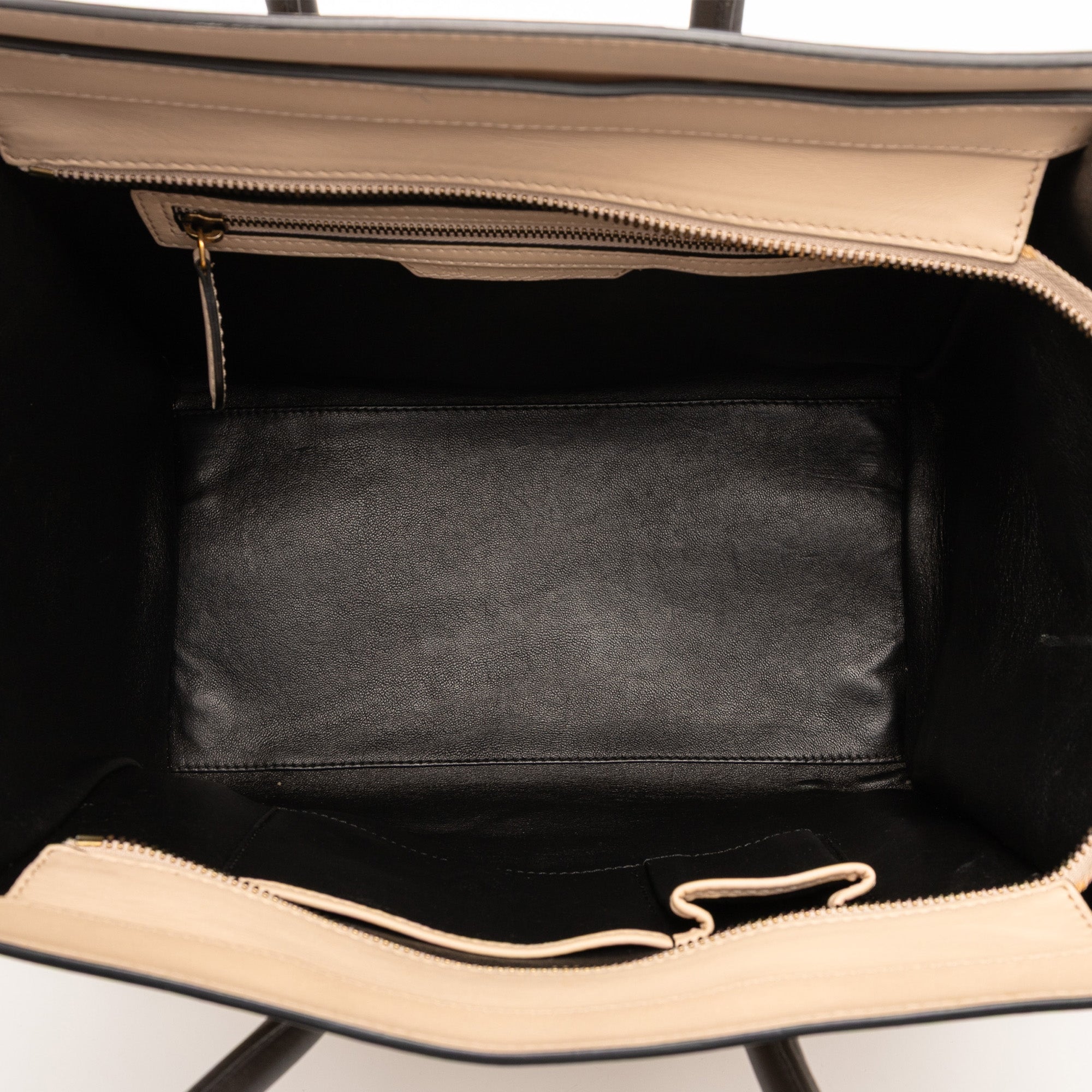 The Luggage Tote features a leather body, rolled leather top handles, a top zip closure, an exterior front zip pocket, and interior zip and slip pockets. Retail Price: 2900.00