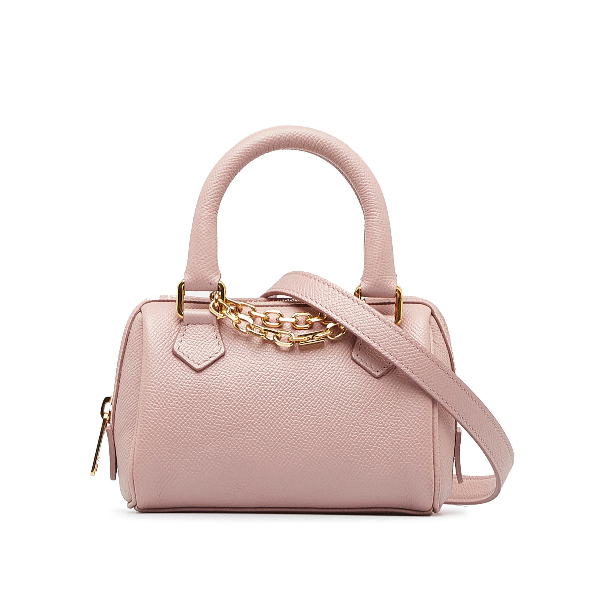 This satchel features a leather body, rolled leather handles, a detachable flat strap, a gold-tone chain hardware, and a top zip closure. Retail Price: 2150.00