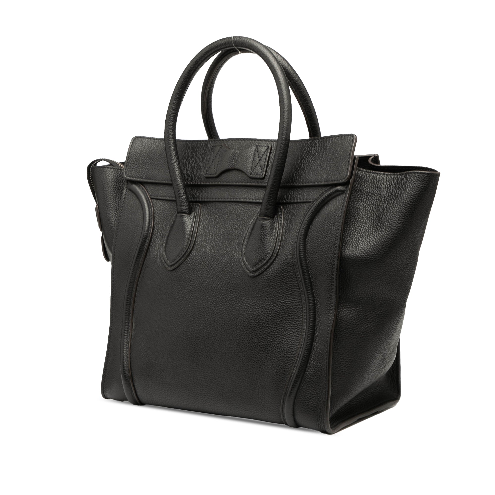 The Luggage Tote features a leather body, rolled leather top handles, top zip closure, and exterior front zip pocket, interior zip and slip pockets. Retail Price: 3350.00