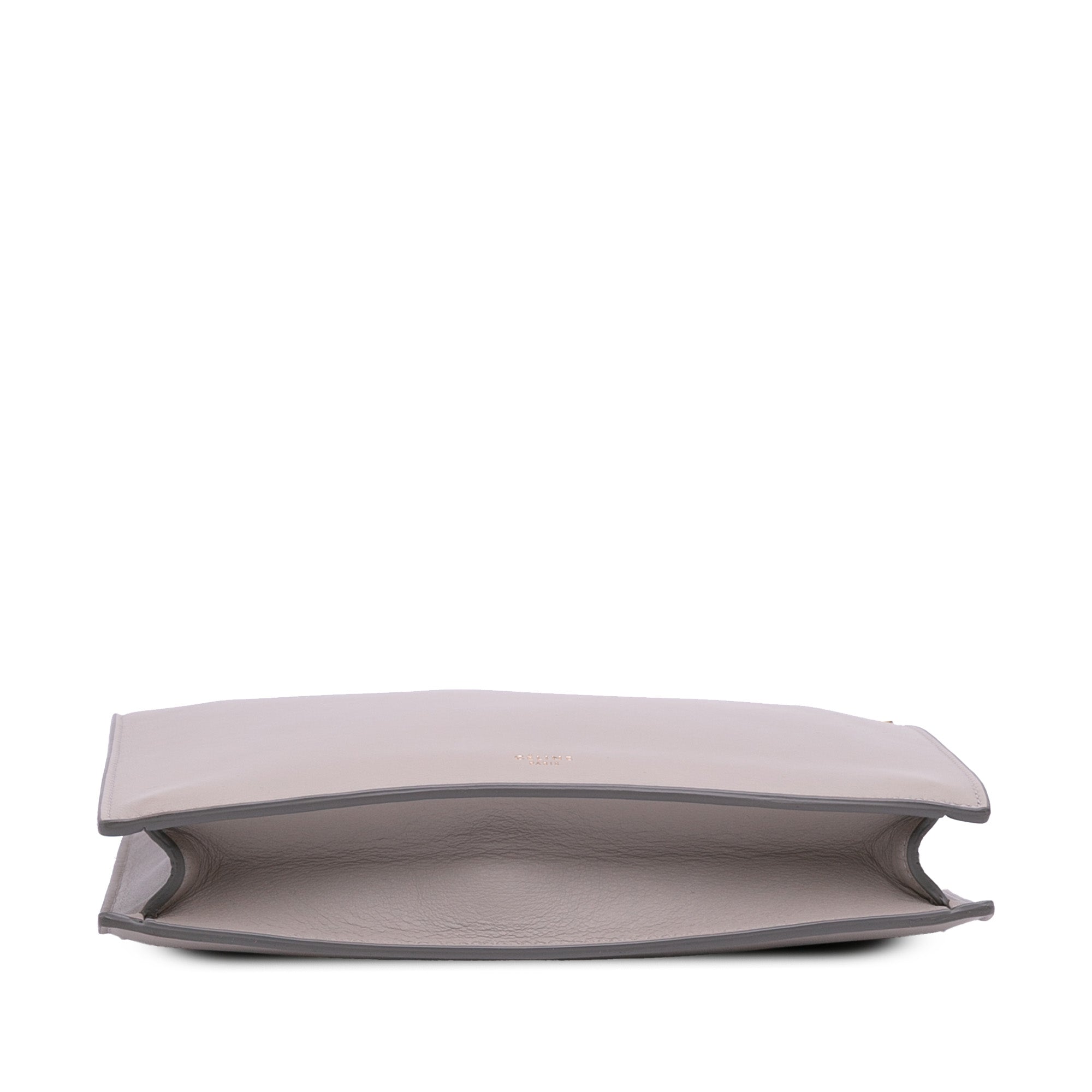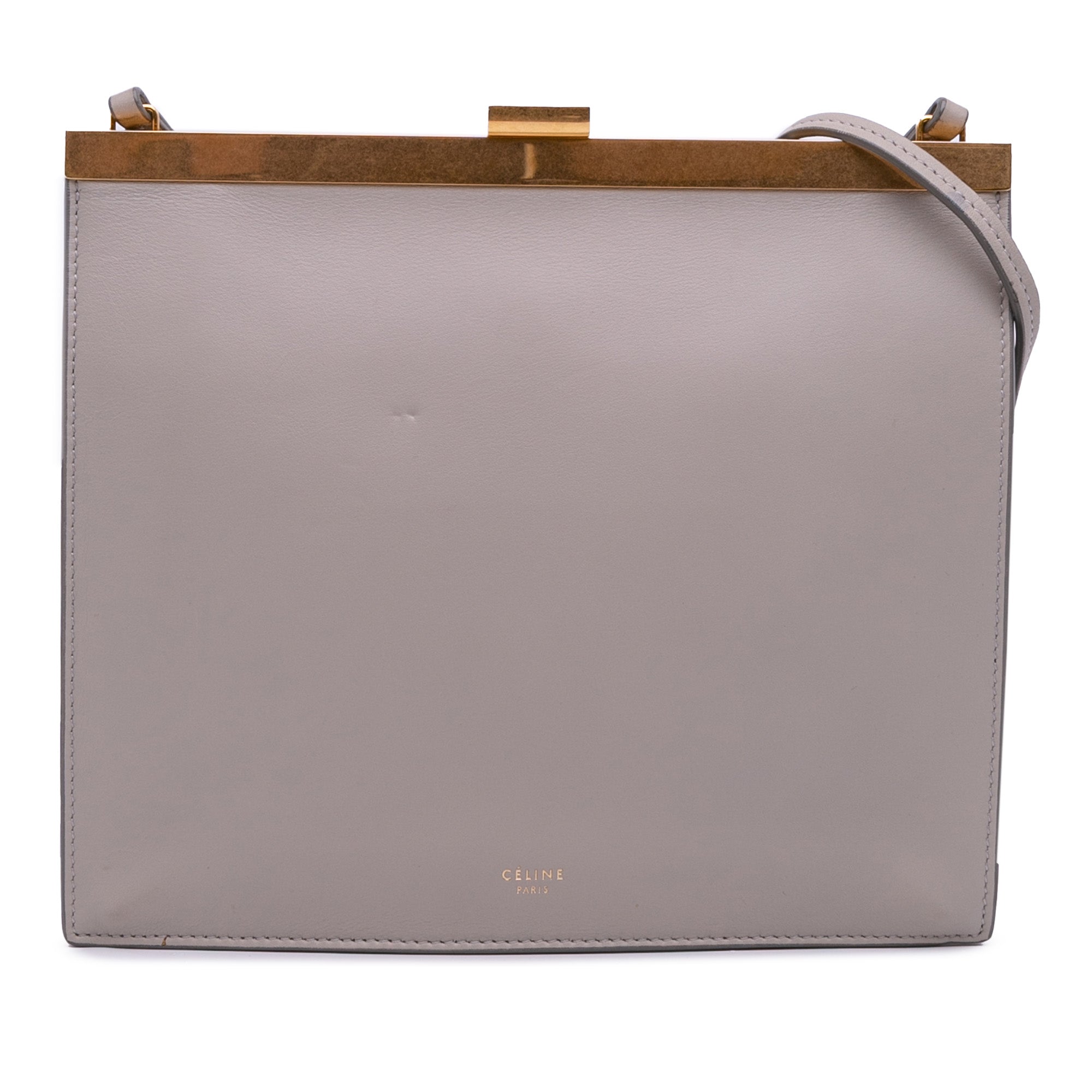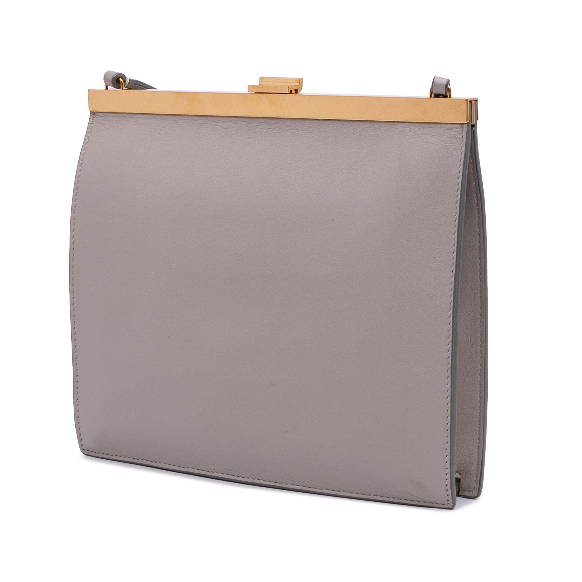 This crossbody bag features a leather body, a flat leather strap, a top frame with metal closure, and interior slip pockets. Retail Price: 2100.00