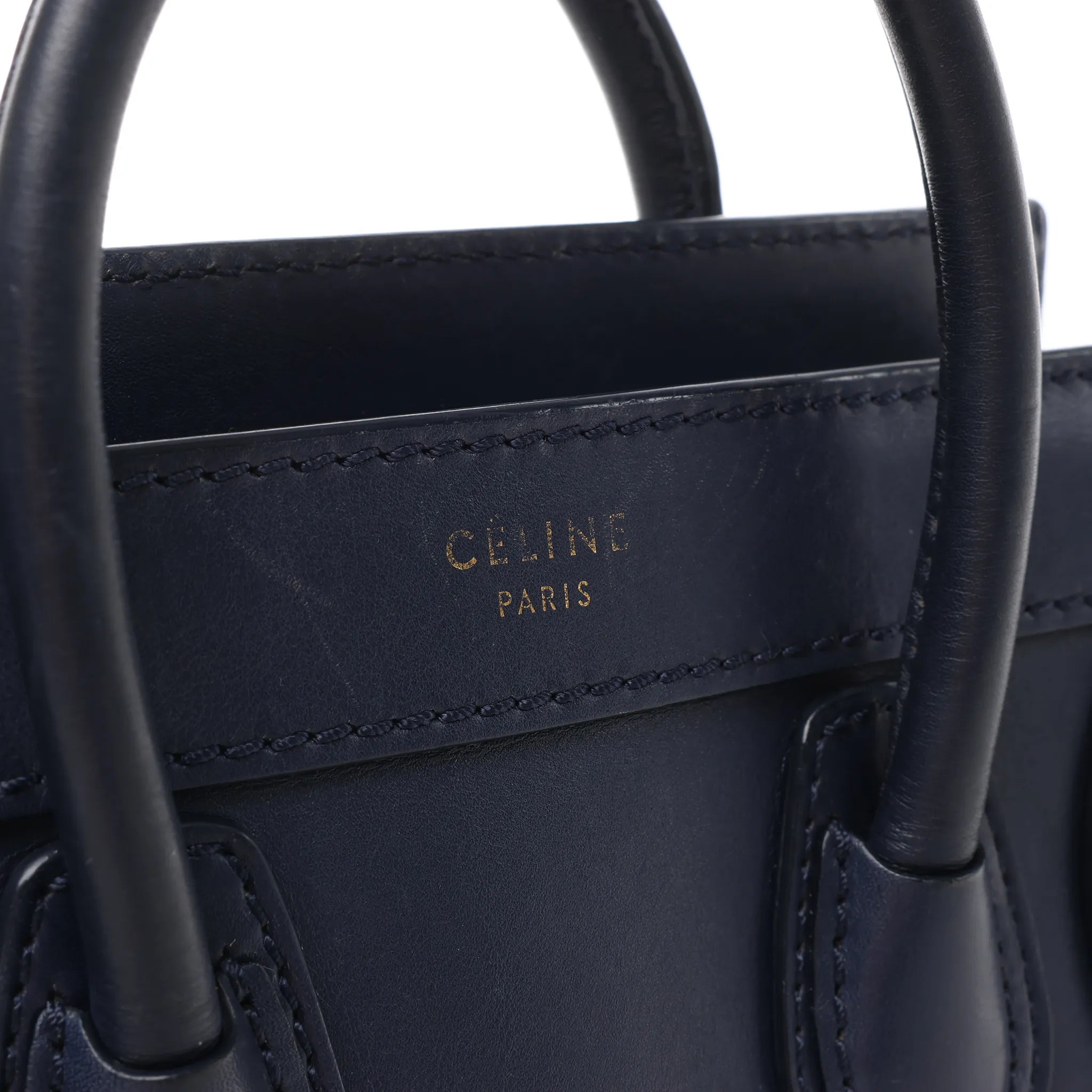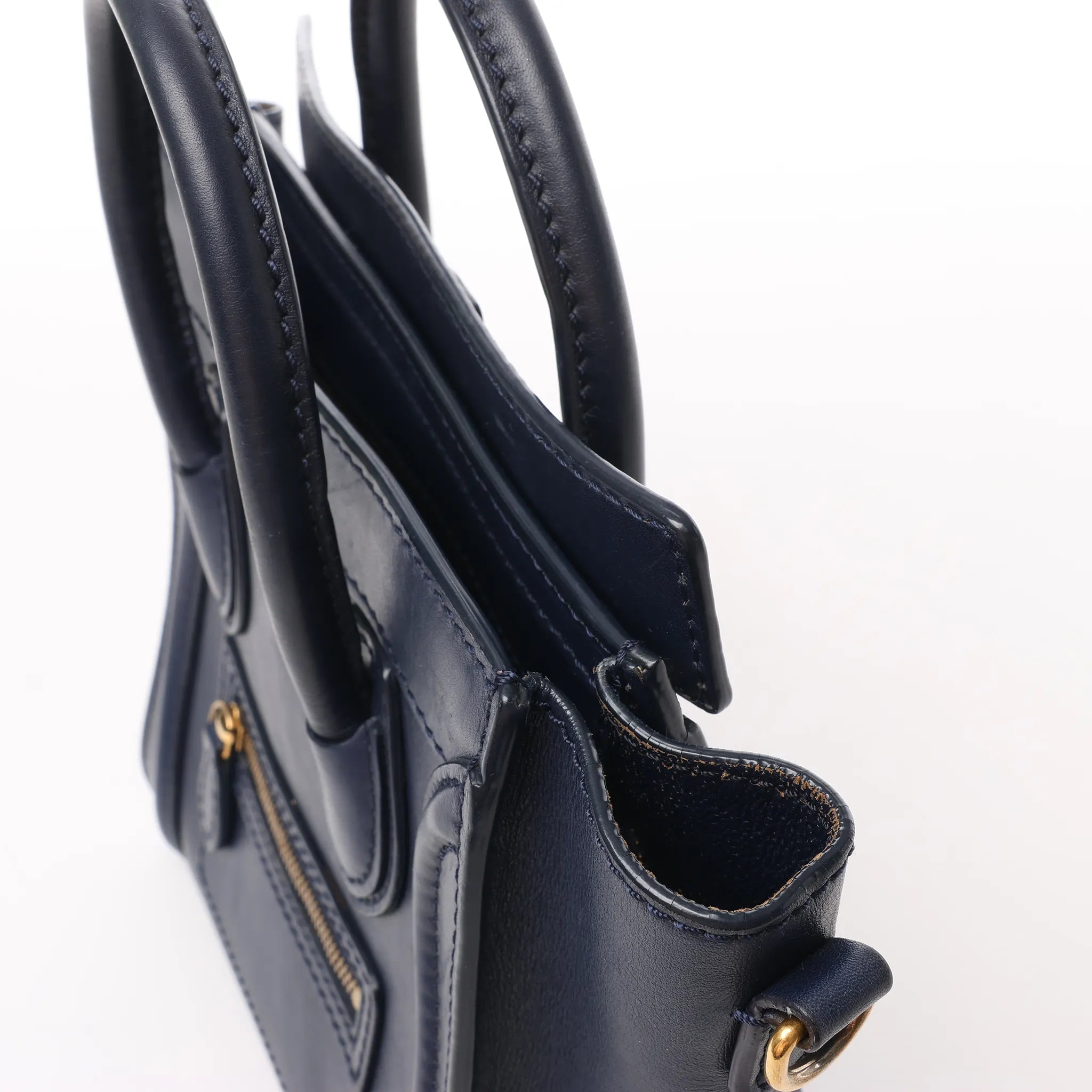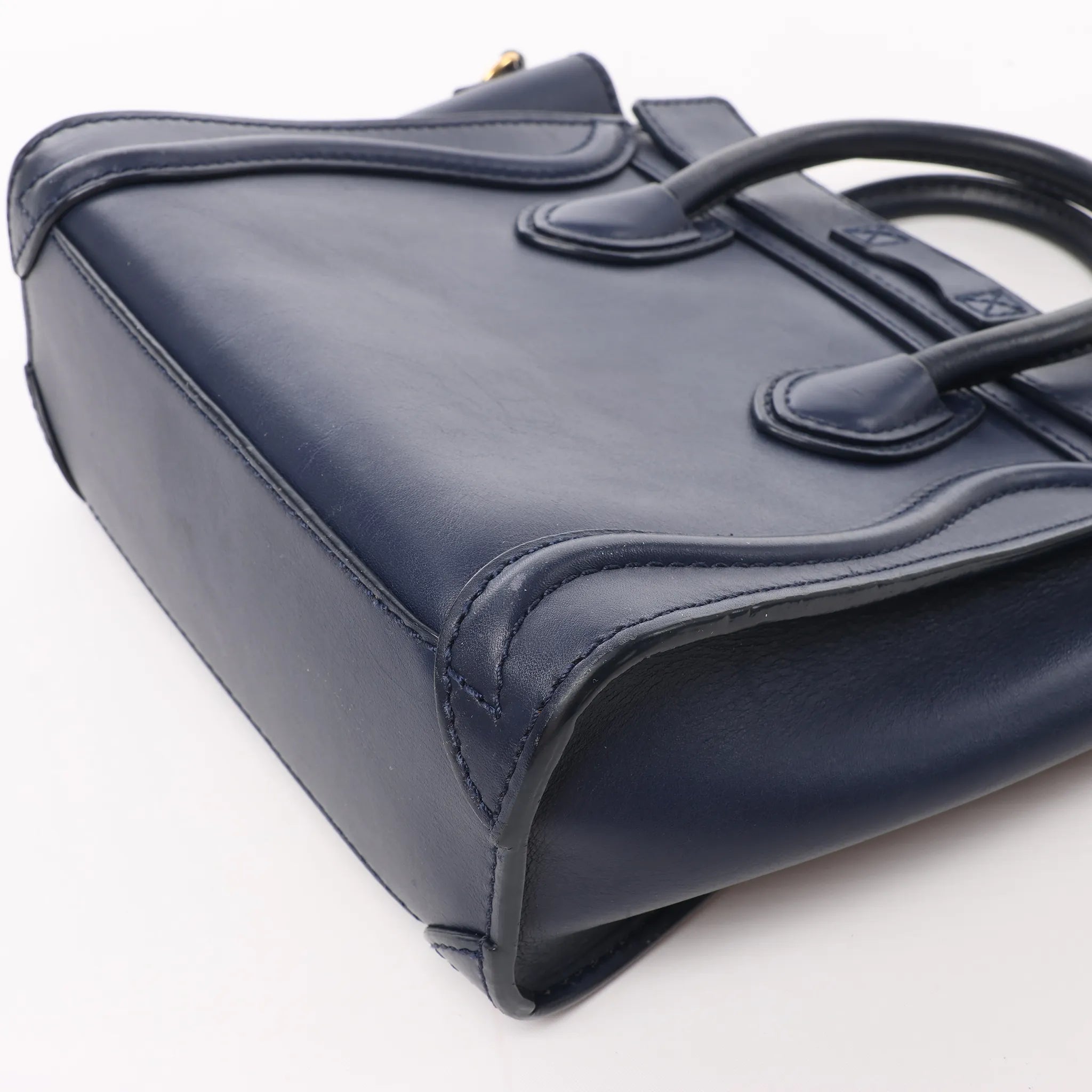 CELINE Nano Luggage Leather 2Way Handbag in Navy Blue Secondhand