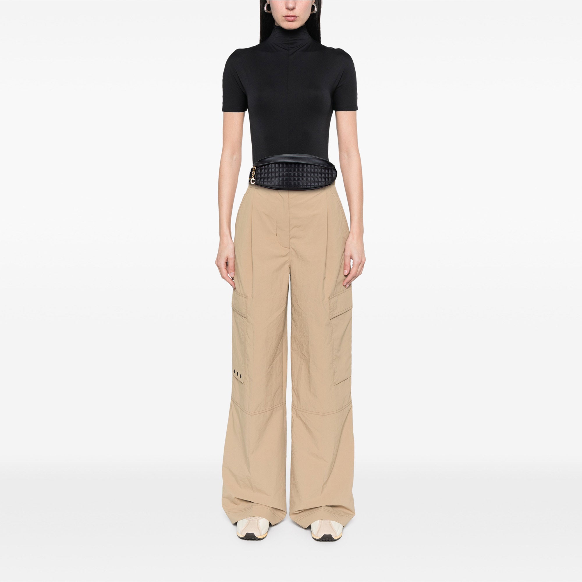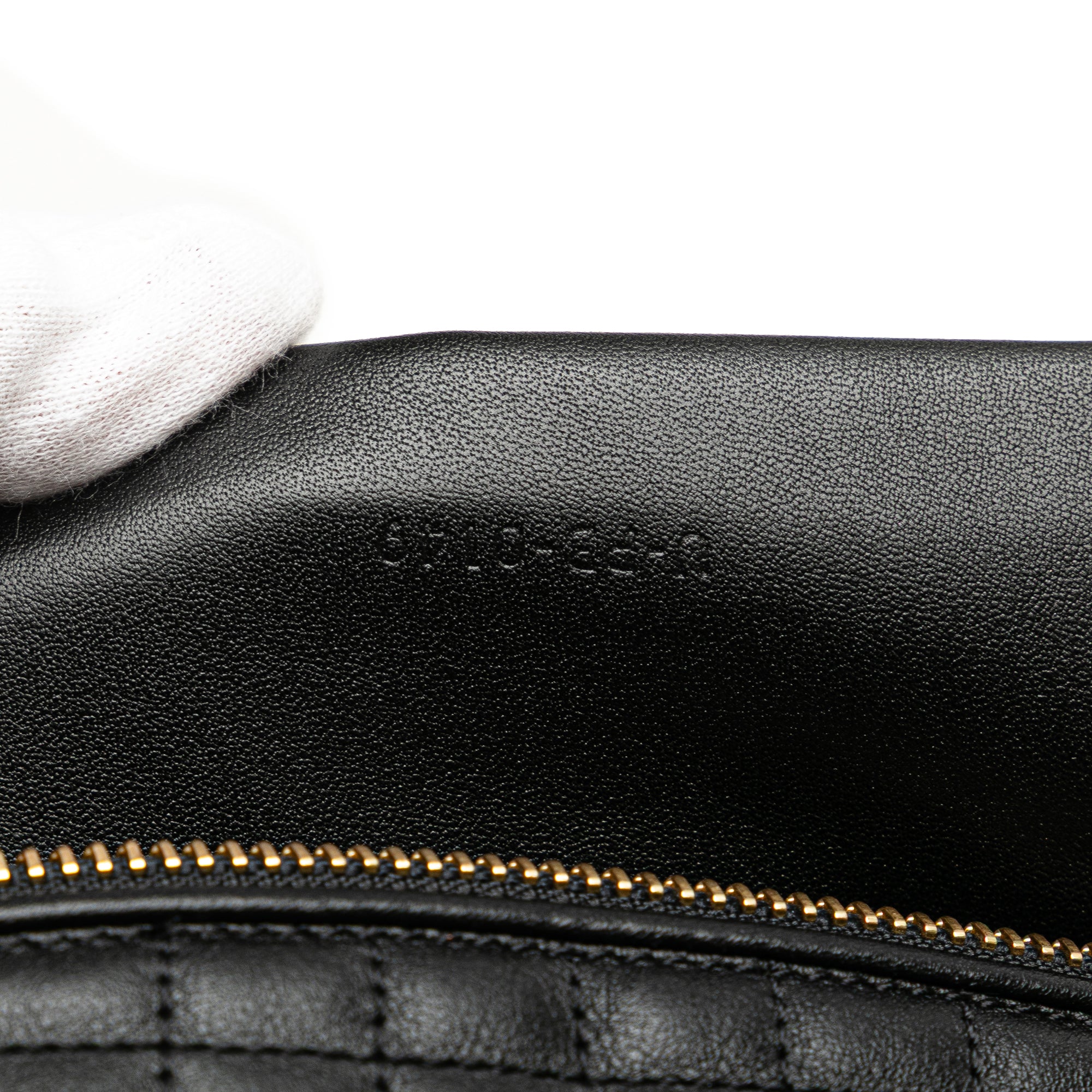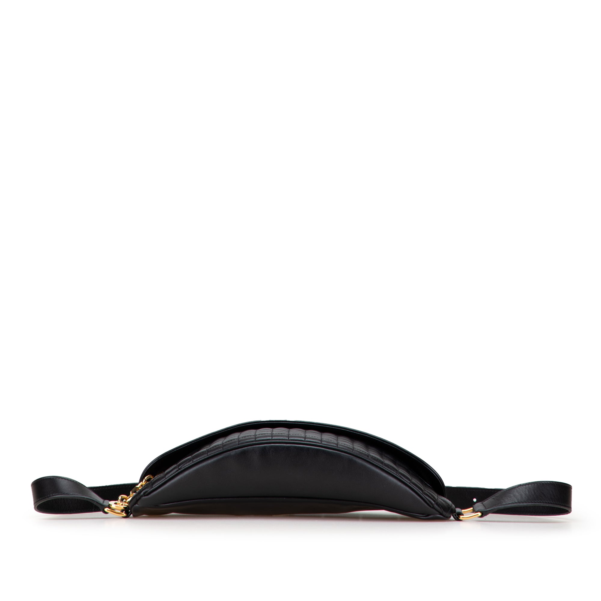 This belt bag features a quilted leather body, an adjustable flat leather waist strap, and a front zip closure. Retail Price: 1395.00