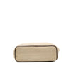 This tote bag features a raffia body with leather trim, flat leather straps, an open top flap with magnetic snap button closure, and interior zip and slip pockets. Retail Price: 1050.00