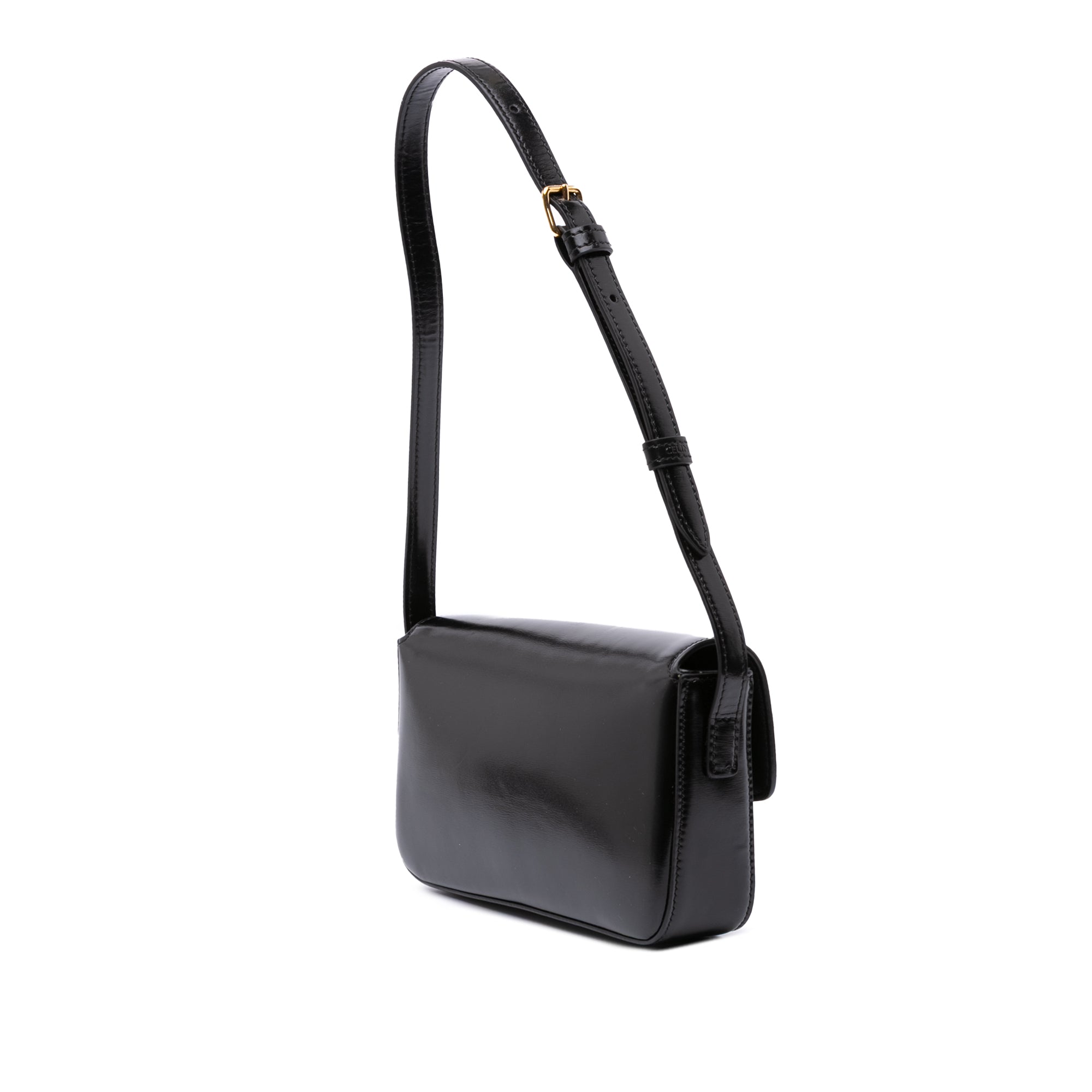 This shoulder bag features a leather body, an adjustable flat shoulder strap, a front flap with push-lock closure, and an interior slip pocket. Retail Price: 2950.00