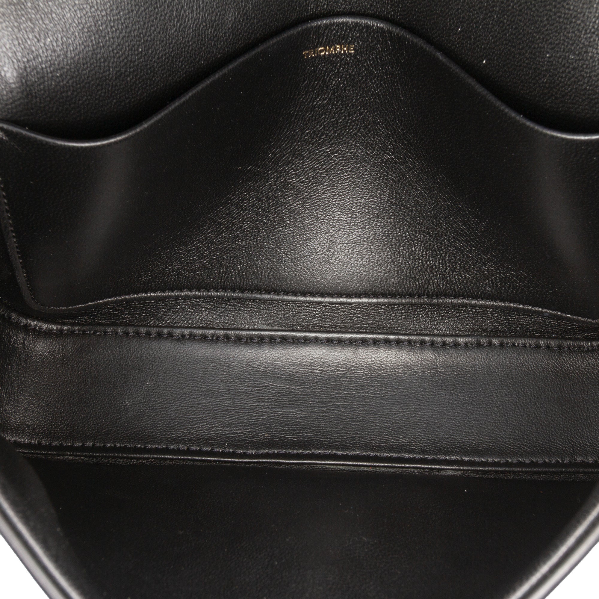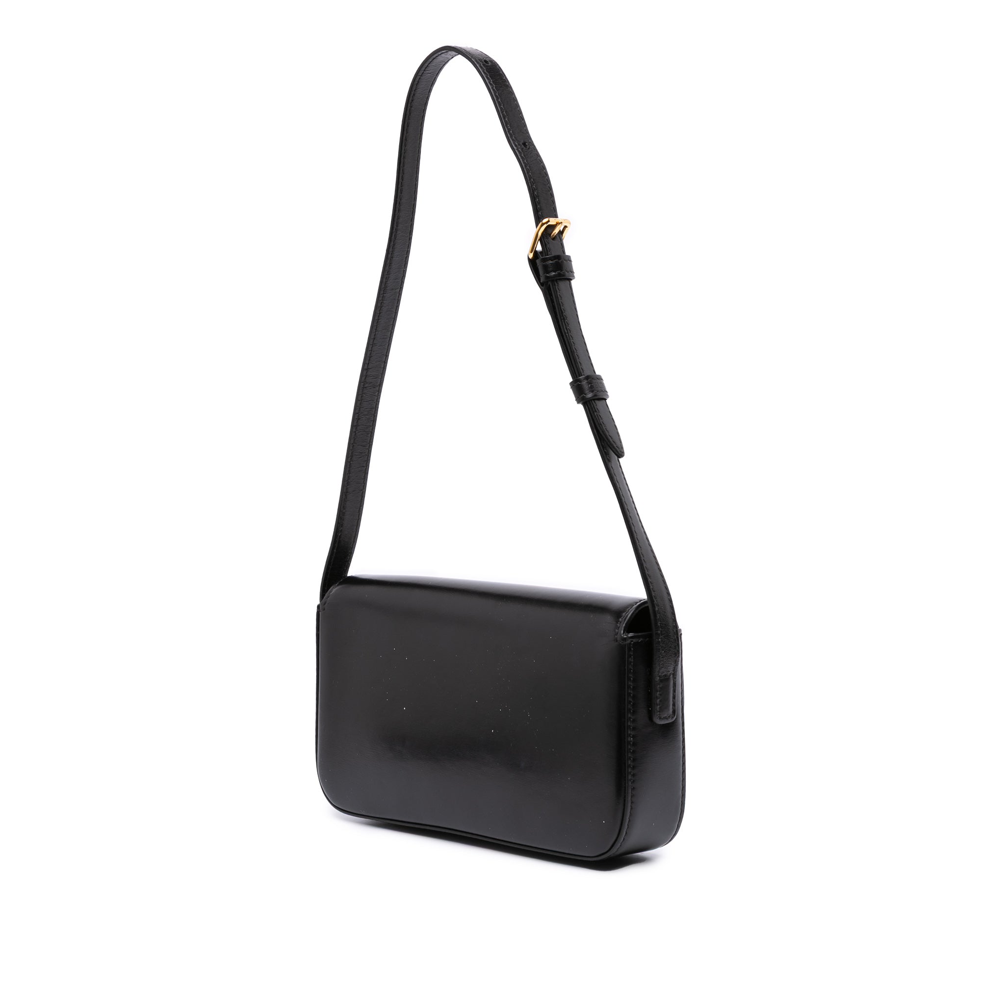 This shoulder bag features a leather body, an adjustable flat shoulder strap, a front flap with push-lock closure, and an interior slip pocket. Retail Price: 2950.00