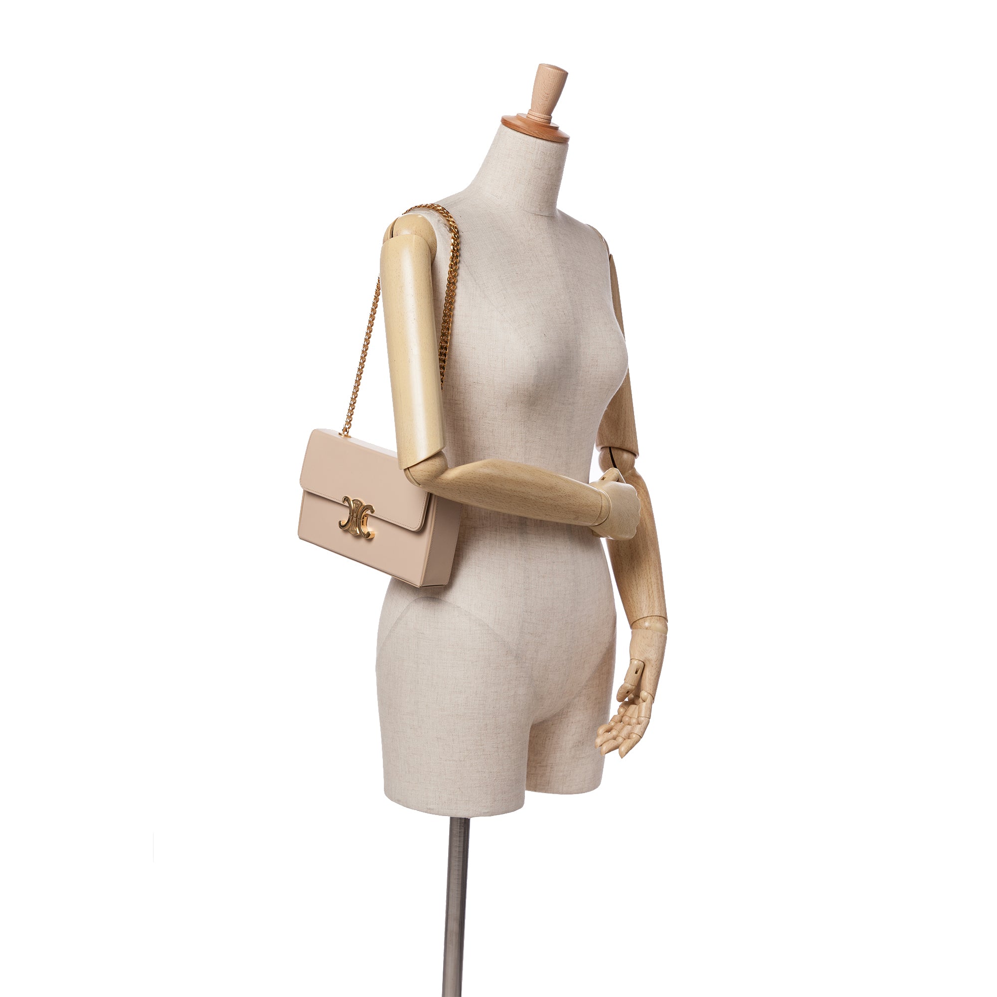 Celine Shiny Calfskin Triomphe Chain Box Shoulder Bag