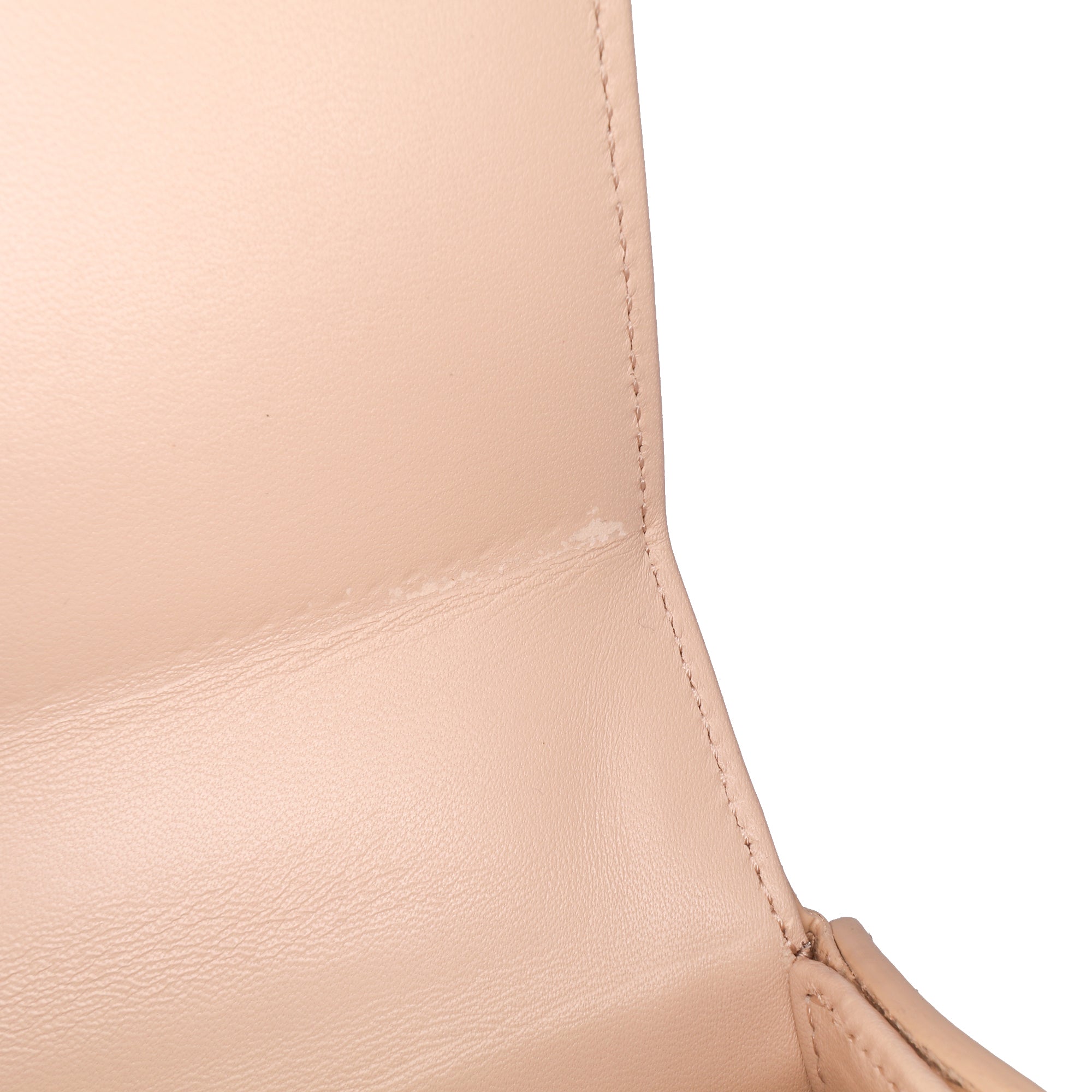 This shoulder bag features a leather body, a gold-tone chain-link shoulder strap, a front flap with a push lock closure, and an interior slip pocket. Retail Price: 3450.00