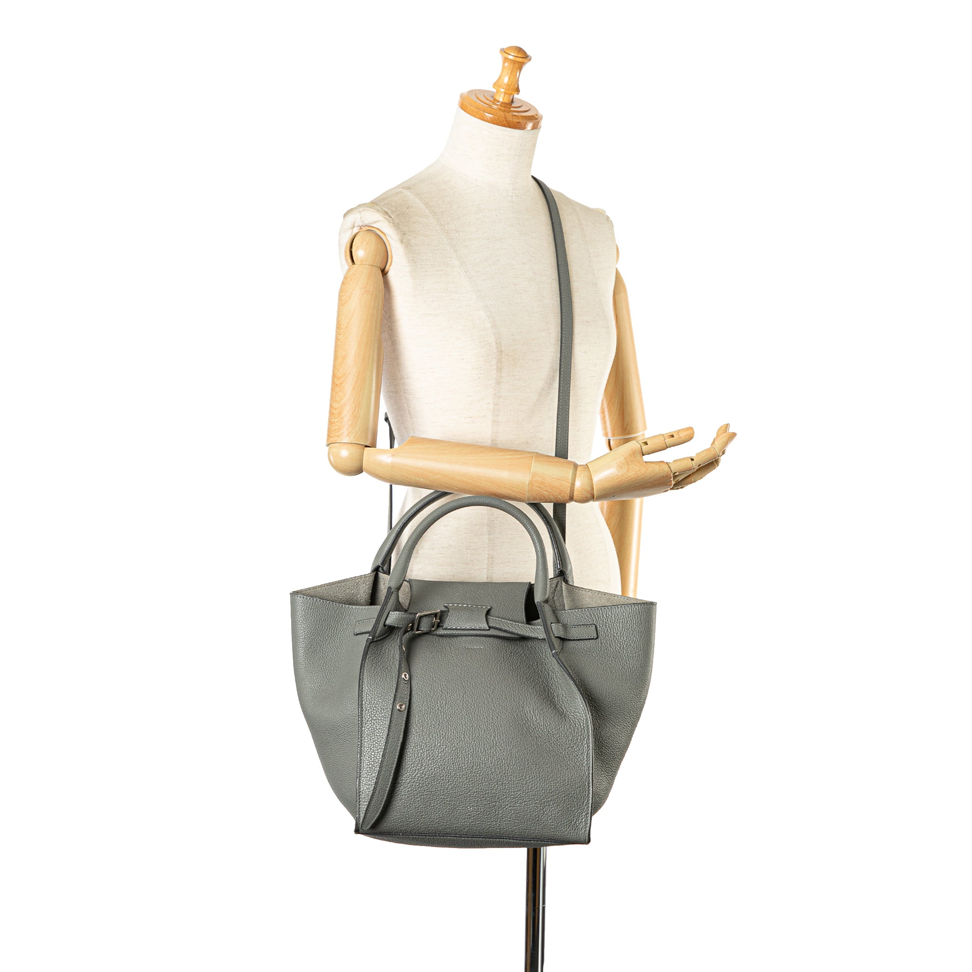The Big bag features a leather body, rolled handles, a flat leather shoulder strap, a top flap with buckle closure, a hook closure, and an interior zip pocket. Retail Price: 1980.00