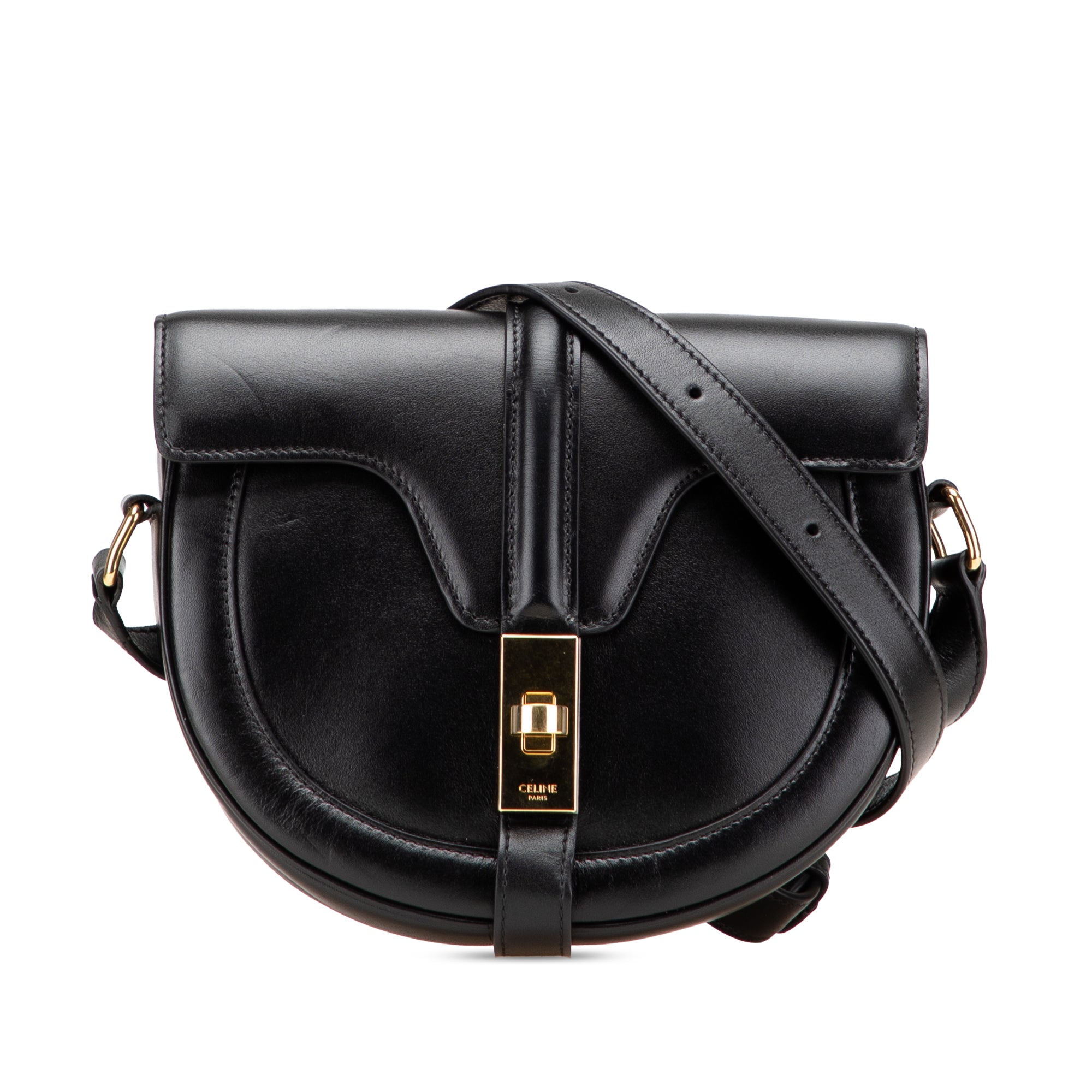 The Besace 16 crossbody bag features a leather body, an adjustable flat leather strap, a front flap with turn-lock closure, and an interior slip pocket. Retail Price: 2250.00