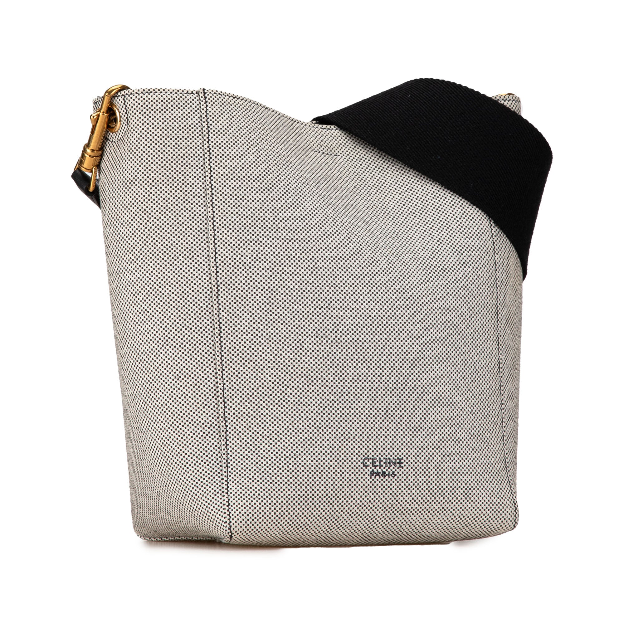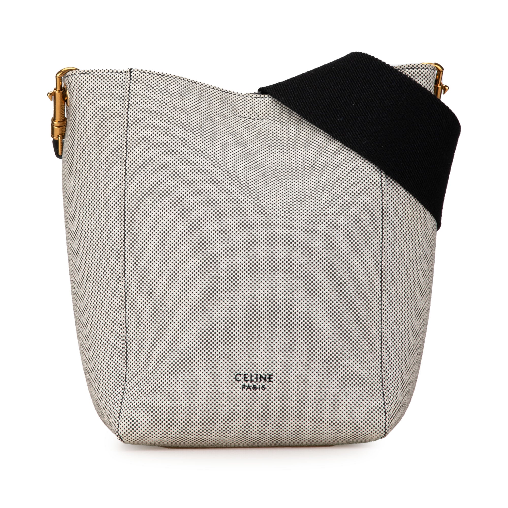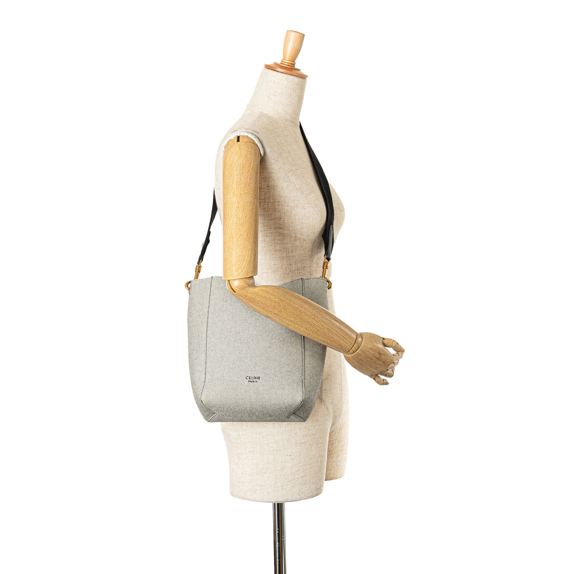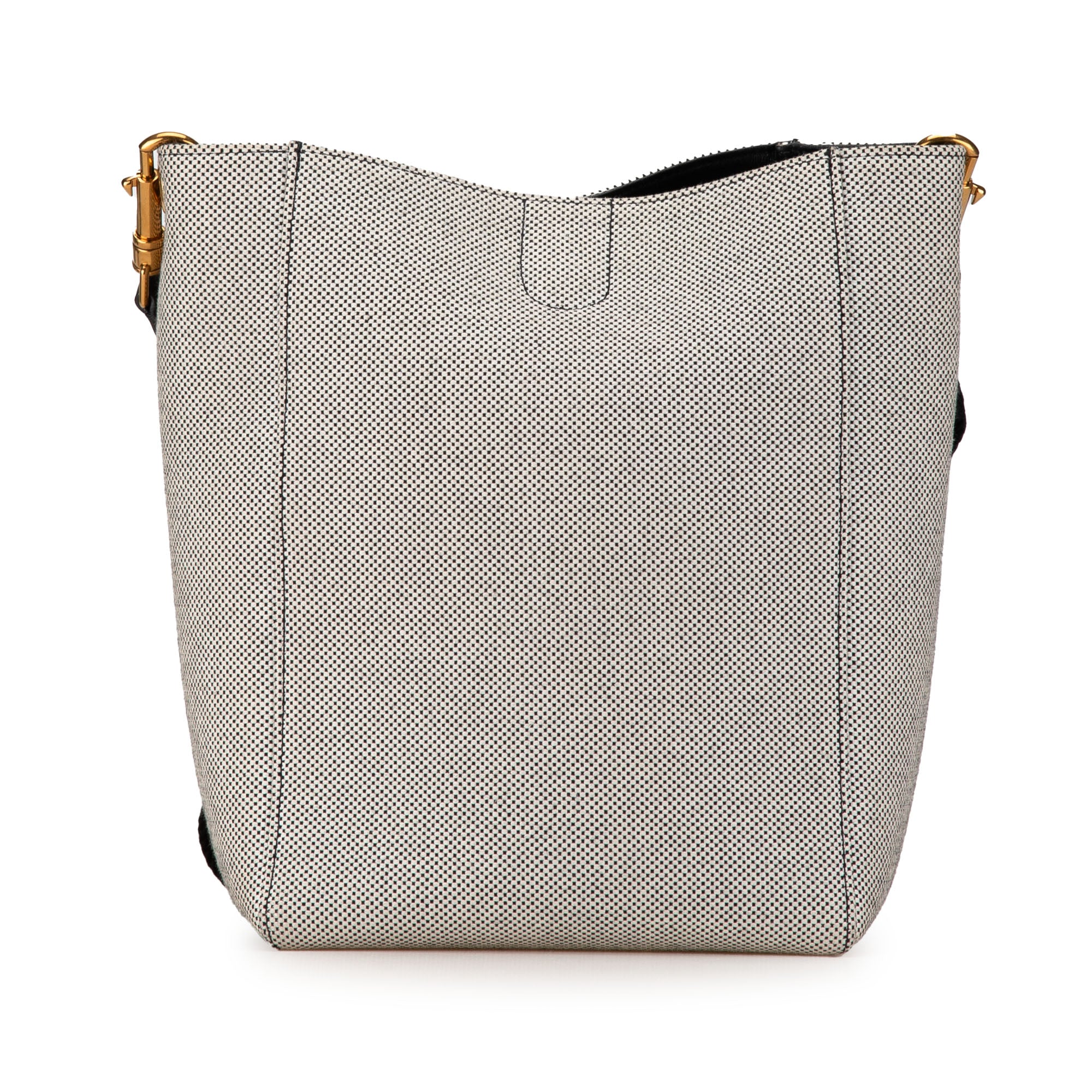 The Seau Sangle features a canvas body, a detachable flat canvas strap, an open top with hook closure, and interior zip and slip pockets. Inclusion: Dust bag. Retail Price: 1550.00