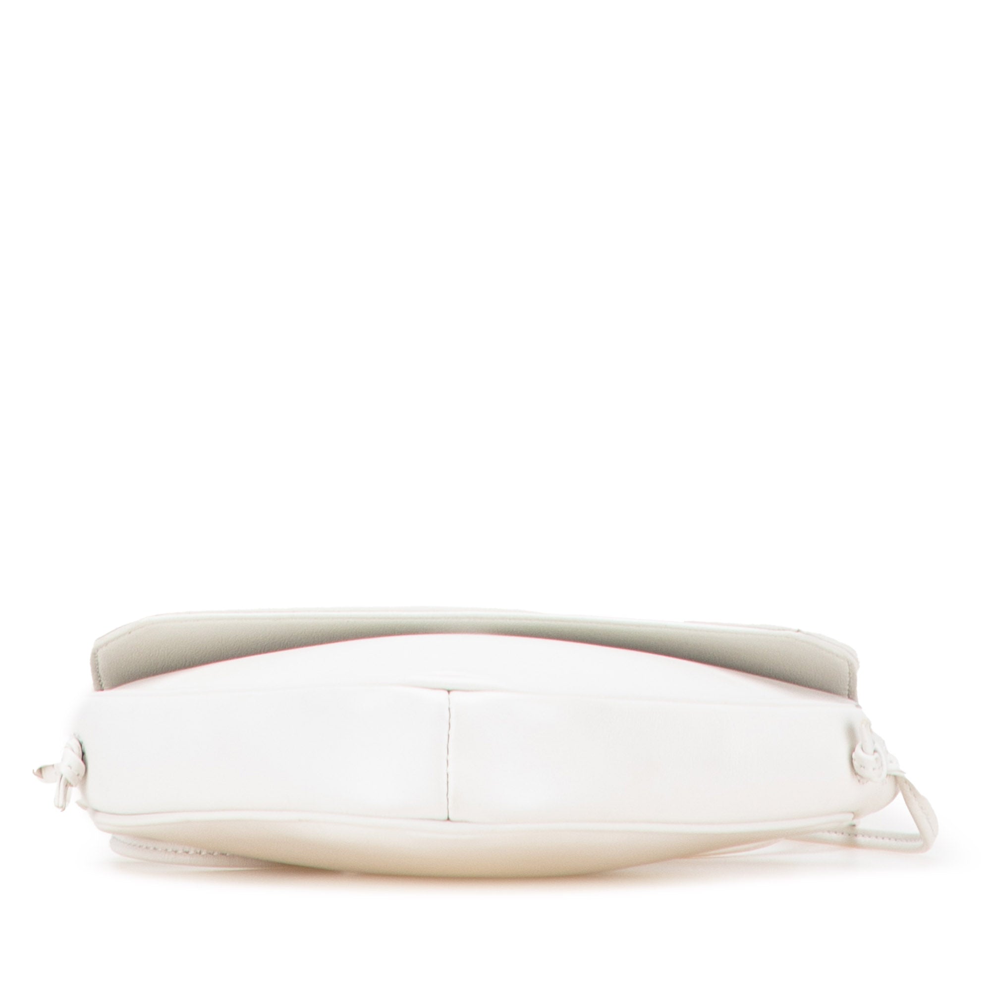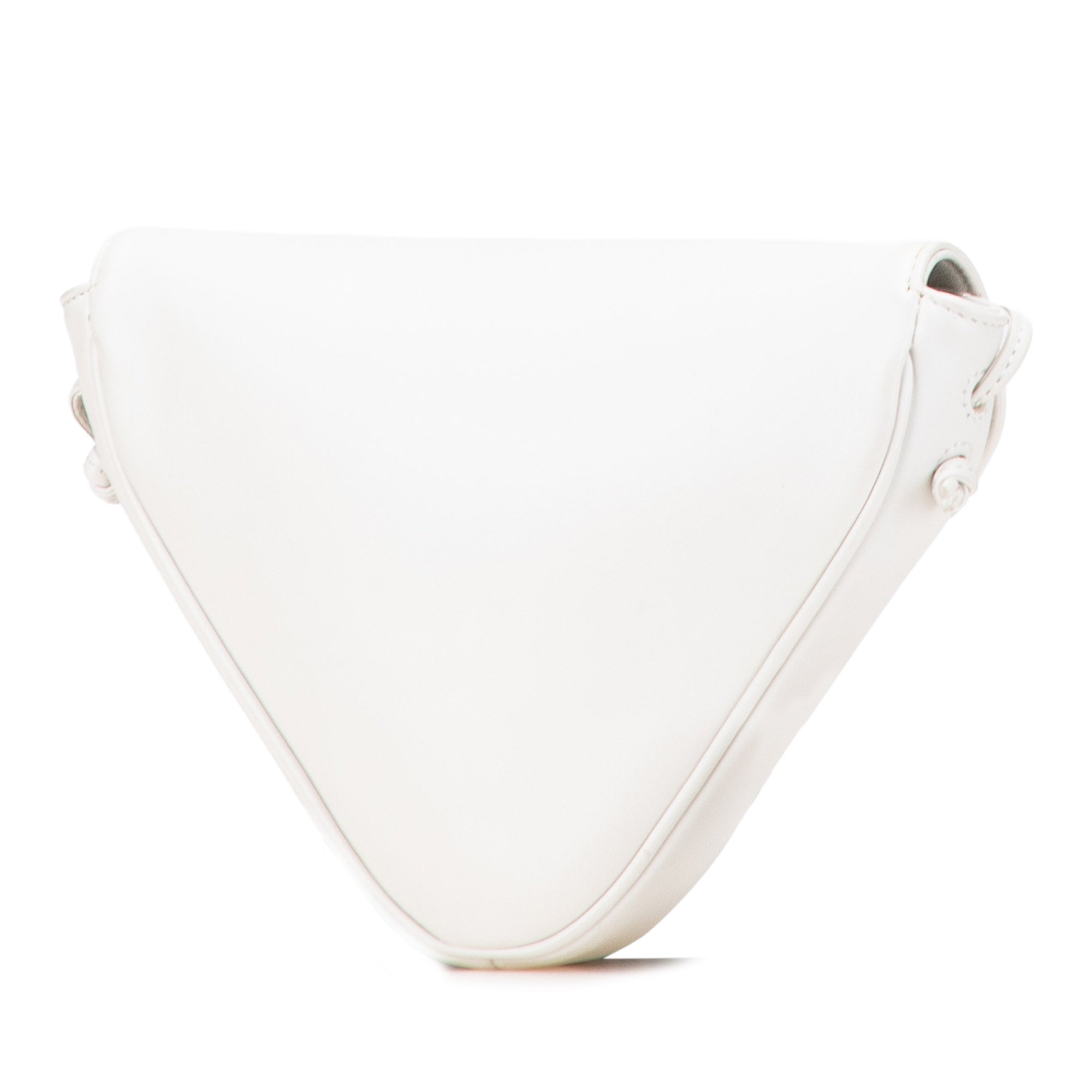 The Triangle crossbody bag features a leather body, an adjustable flat leather strap, and a top flap with magnetic snap closure. Retail Price: 1250.00