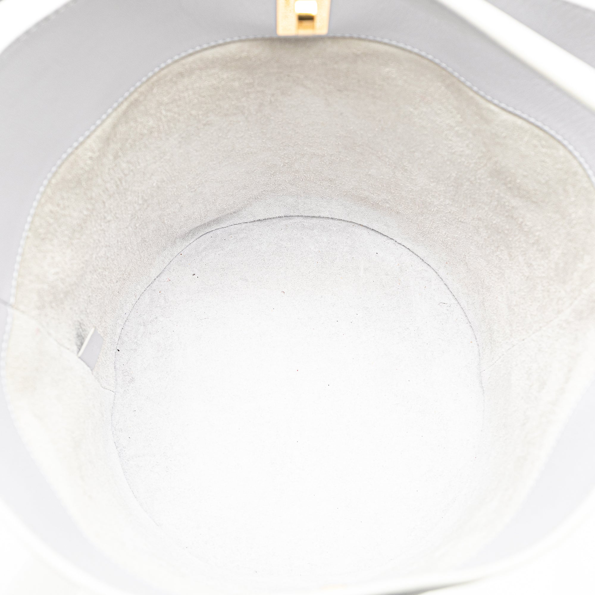 The Bucket 16 features a leather body, a rolled handle, a detachable flat leather strap, and an open top with a turn-lock closure. Inclusion: Dust bag. Retail Price: 2790.00