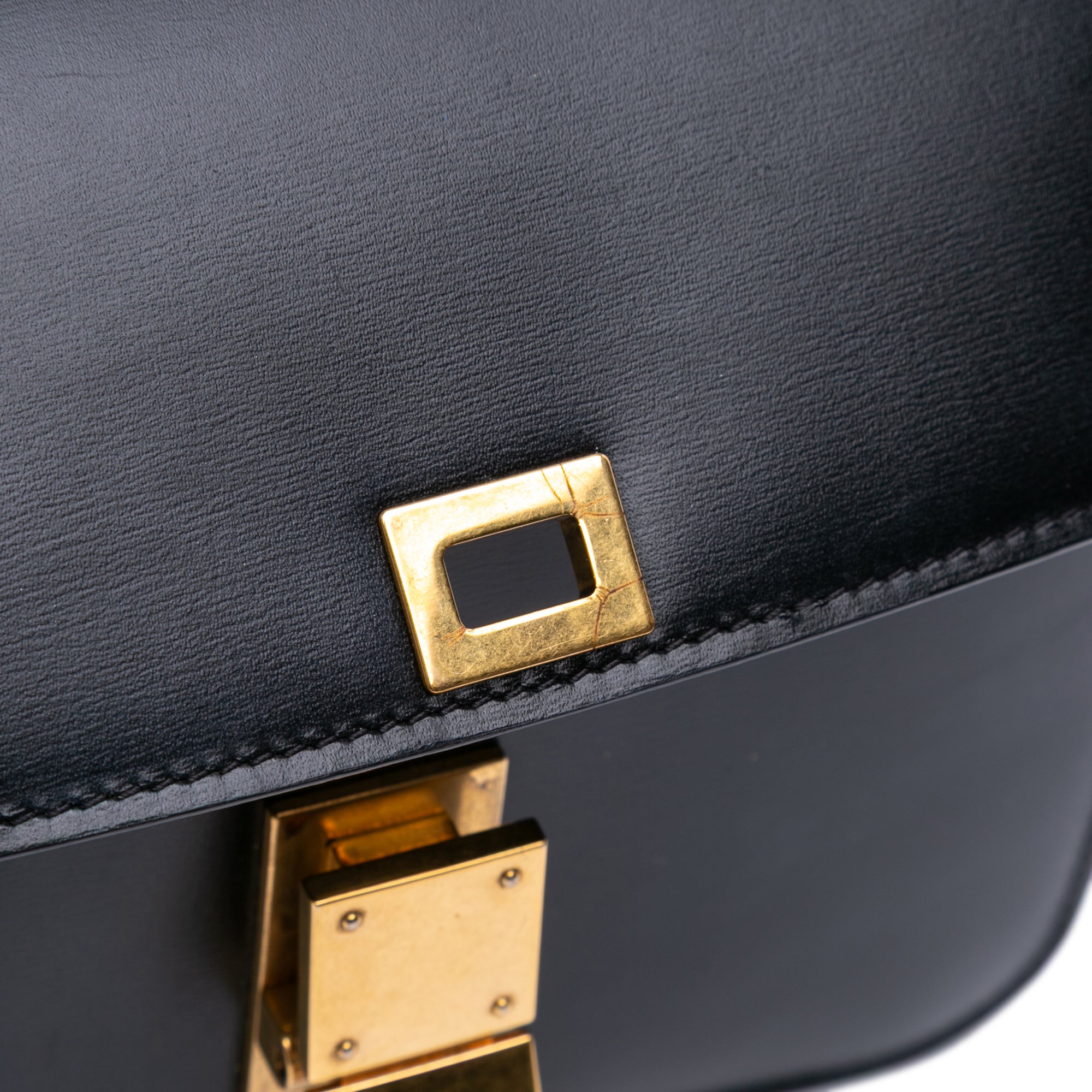 The Classic Box crossbody bag features a leather body, a flat leather strap, a front flap with a push lock closure, and interior slip and zip pockets. Retail Price: 3250.00