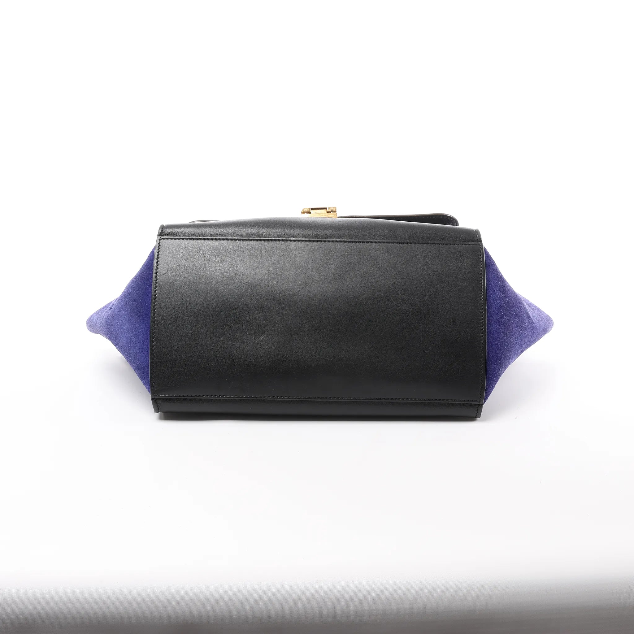 CELINE Trapeze Leather x Suede 2Way Handbag in Brown x Navy Blue x Black
