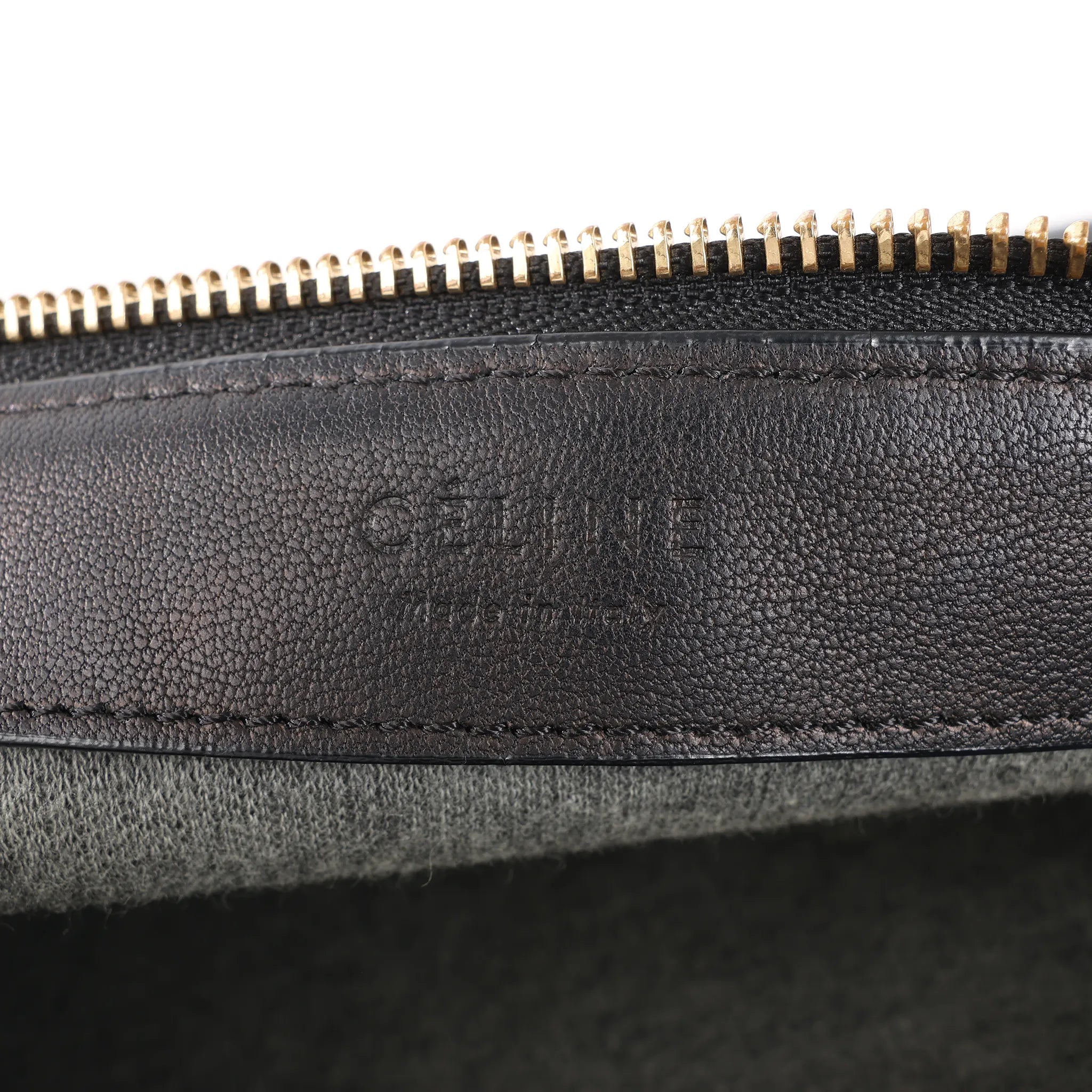 Brand: CELINEModel: Trio Size: LargeWidth: 24.5 cmHeight: 17 cmExterior Condition: ExcellentInterior Condition: ExcellentCondition Details: The exterior leather is clean in excellent condition except some rubbings at the bottom edges. The hardware is bright and crisp. The shoulder strap is clean and in great condition with rubbings on glazing. The interior lining is clean and overall in very good condition.Colour: BackInterior Colour: GrayHardware Colour: GoldMaterial: LeatherComes With: -