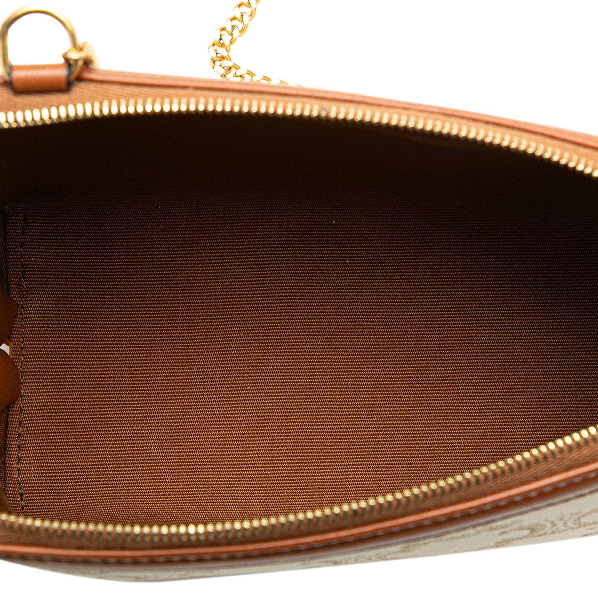 This crossbody bag features a coated canvas body with leather trim, a chain link shoulder strap, and a top zip closure. Inclusion: Dust bag, box. Retail Price: 1560.00
