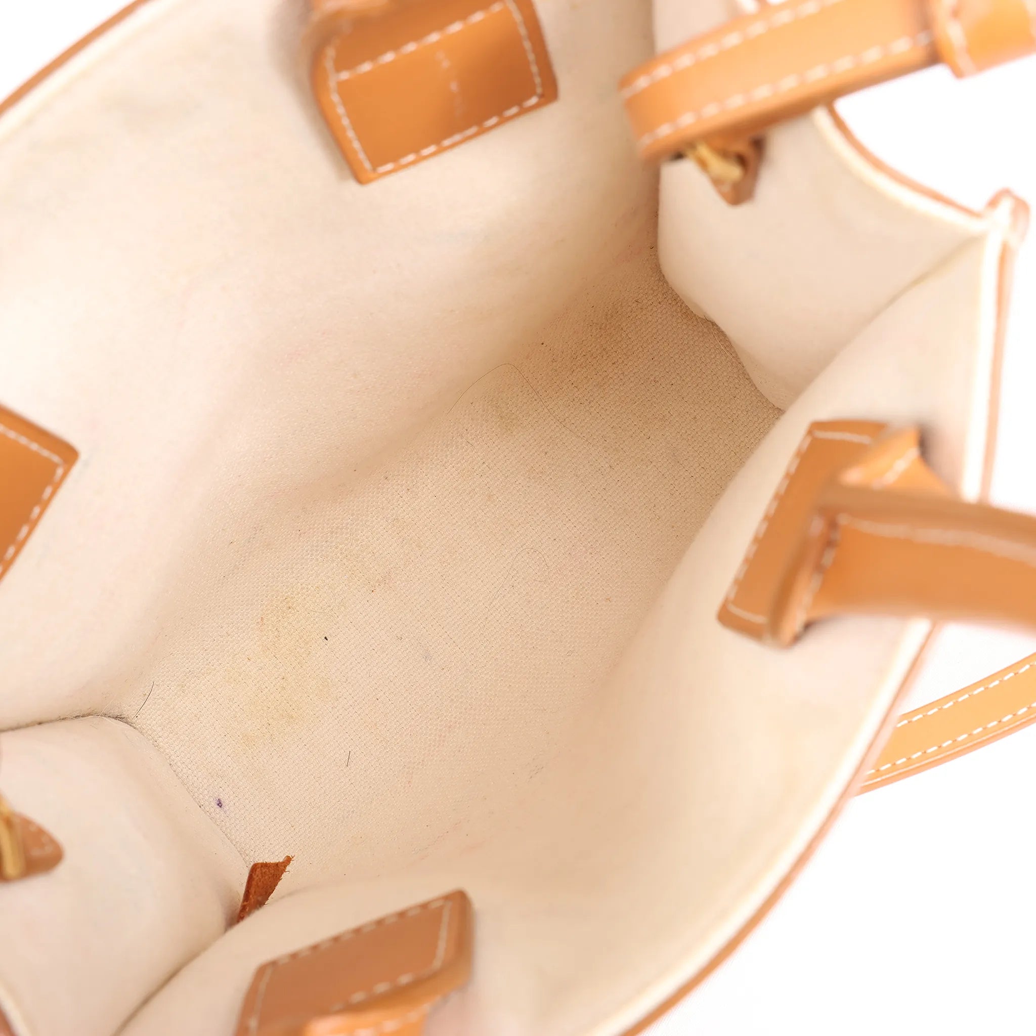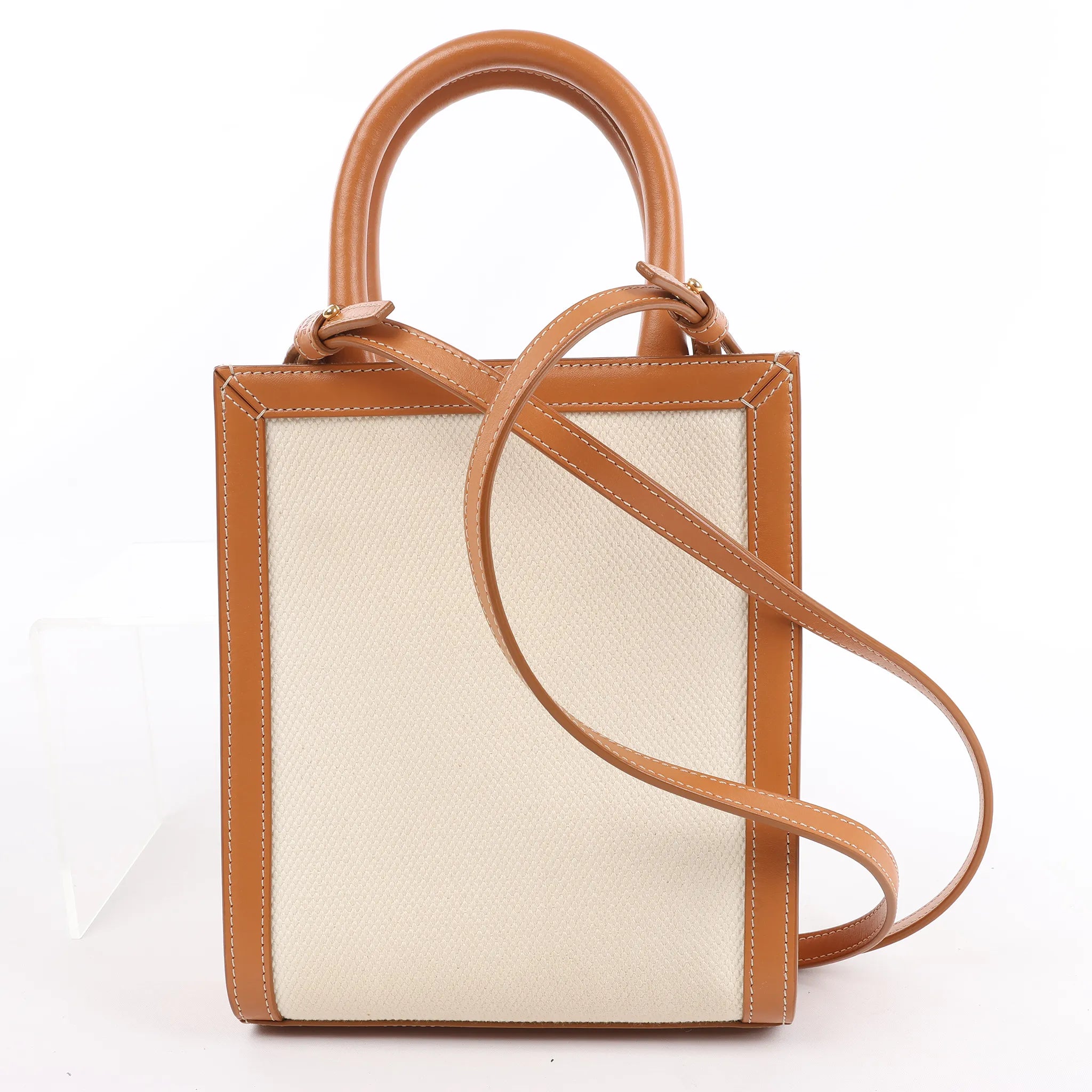 Celine Vertical Mini Hippopotamus Canvas x Leather 2Way Handbag Beige x Brown