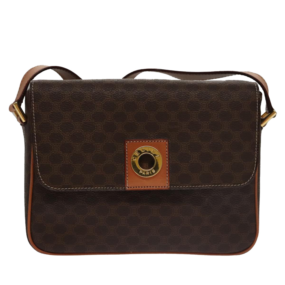 Celine Vintage Macadam Circle Logo Shoulder Bag Canvas and