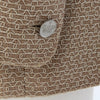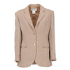 Chanel beige wool blend 90s jacket with white mesh pattern. V-neck, front buttoning, welt chest pocket, buttoned cuffs and two welt pockets. Slightly padded shoulders. One size down fit. Year: 1998 - The item shows some slightly yellow spots, as shown in the pictures.