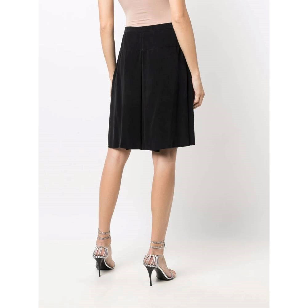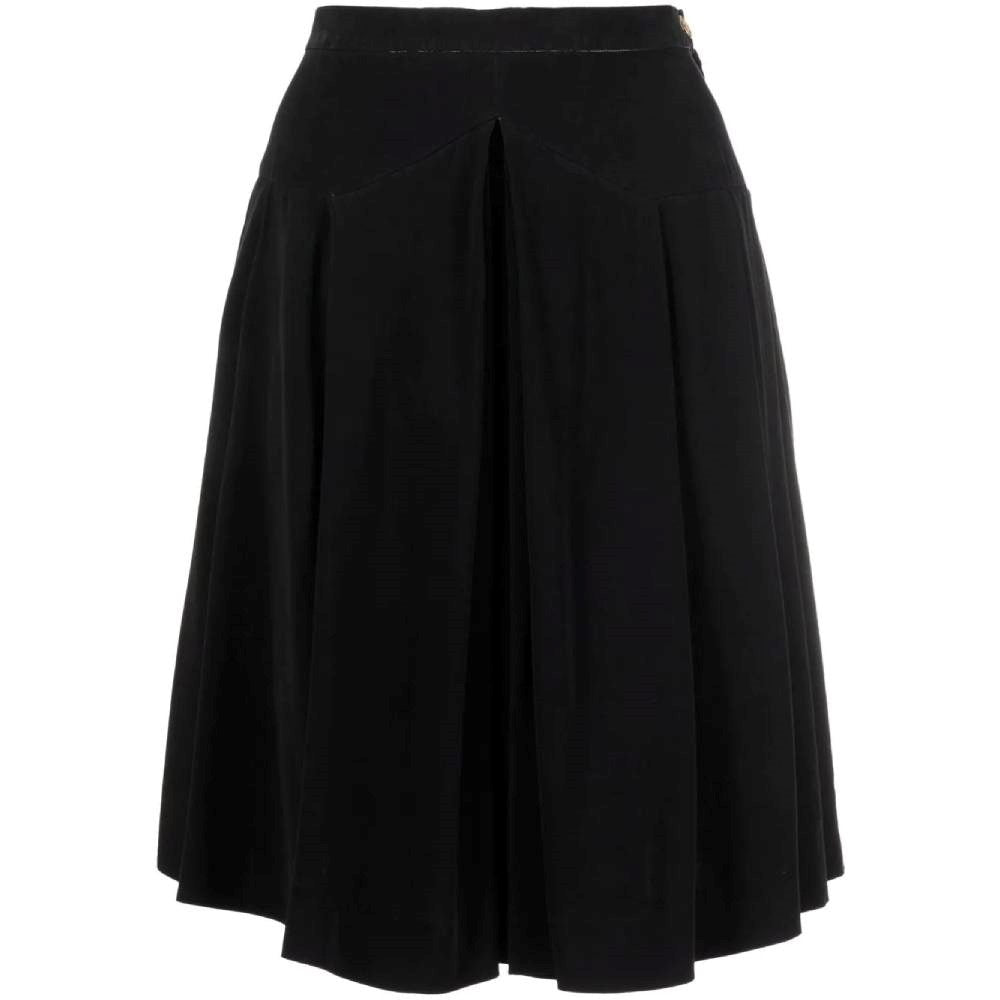 Chanel black viscose paneled 90s skirt with side metal gold-tone logoed button and zip fastening.