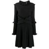 Chanel black ribbed wool 2010s midi dress. Round neck, long detachable sleeves and waist embellished with rouches. Back hooks and zip fastening.
