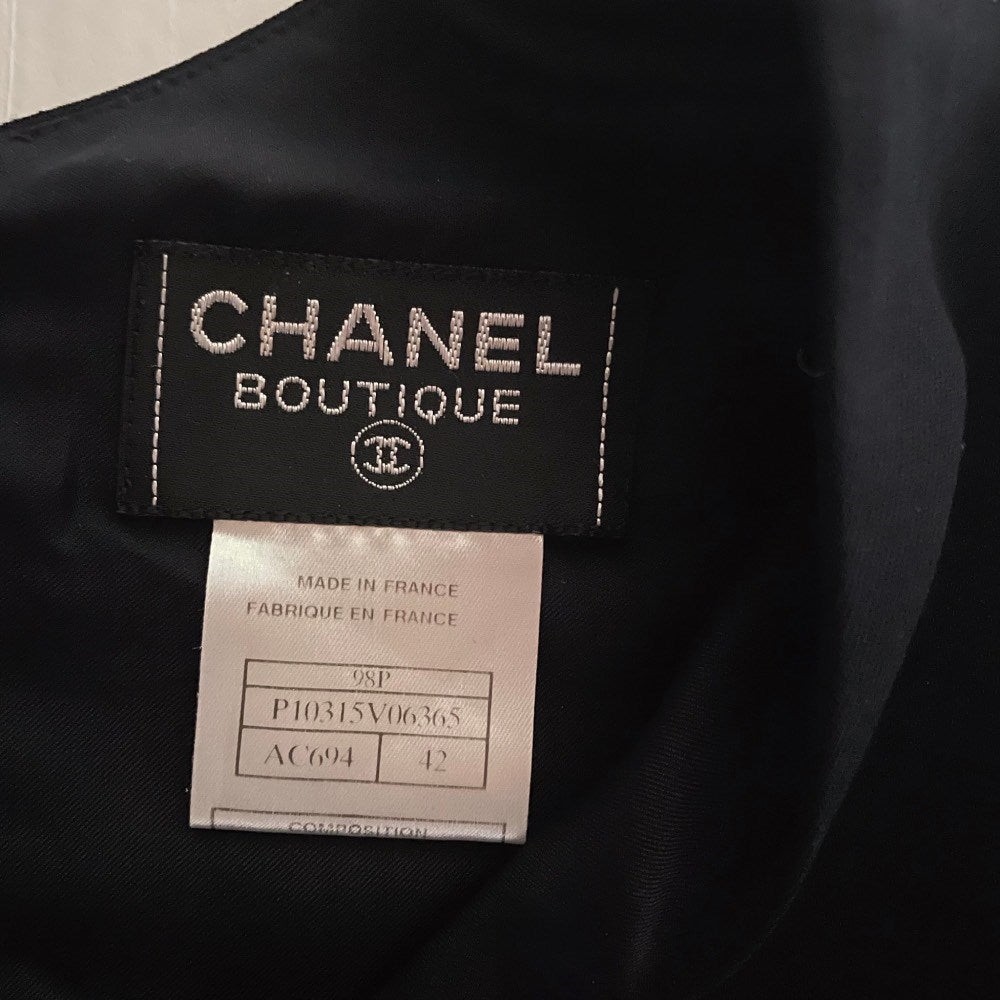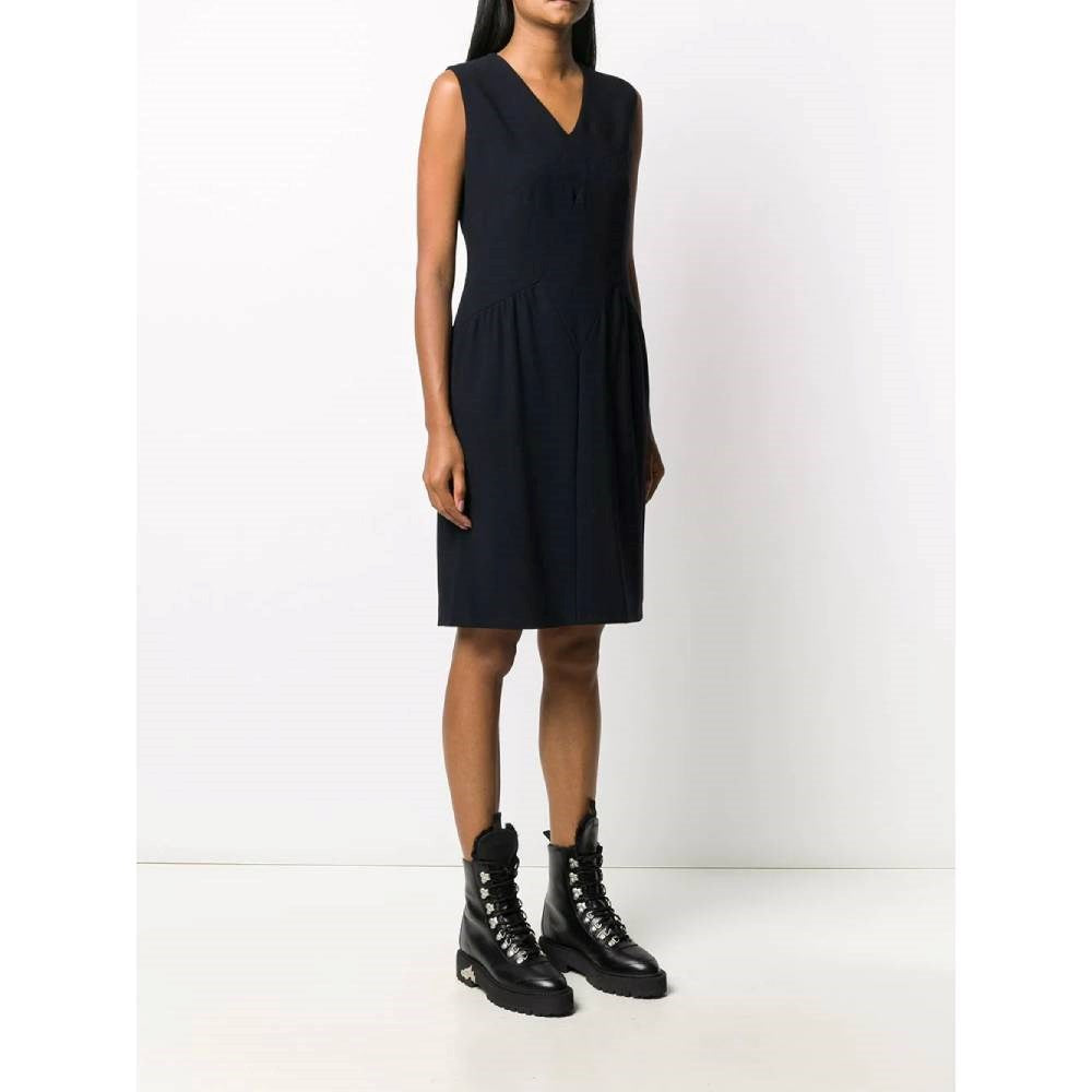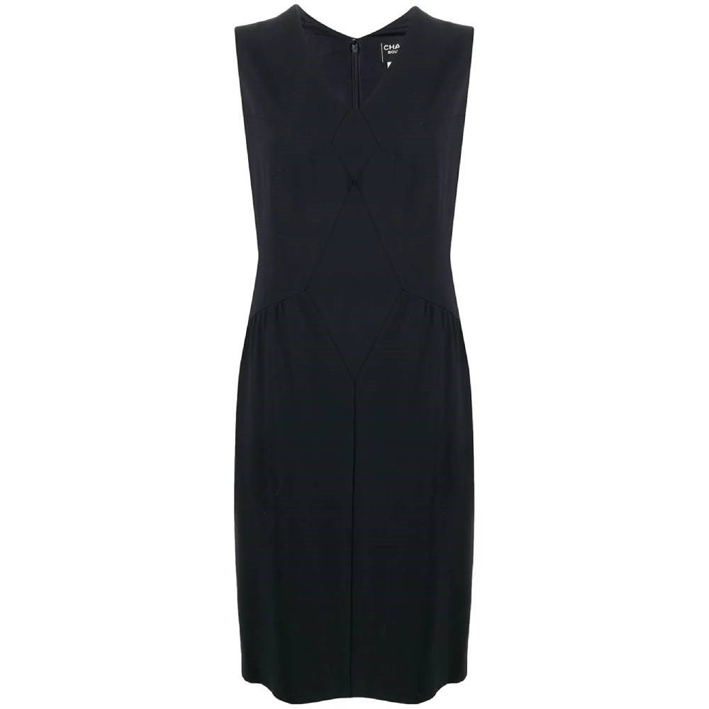 Chanel black wool sleeveless dress with V-neck, narrow waist and bottom flared. Back zip fastening. - Year: 1998