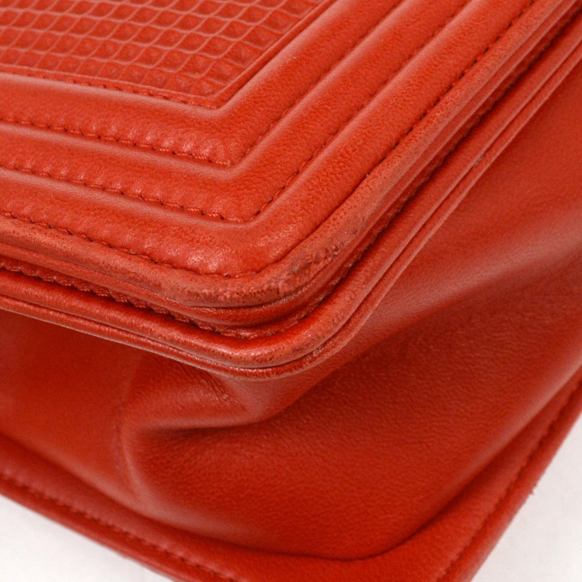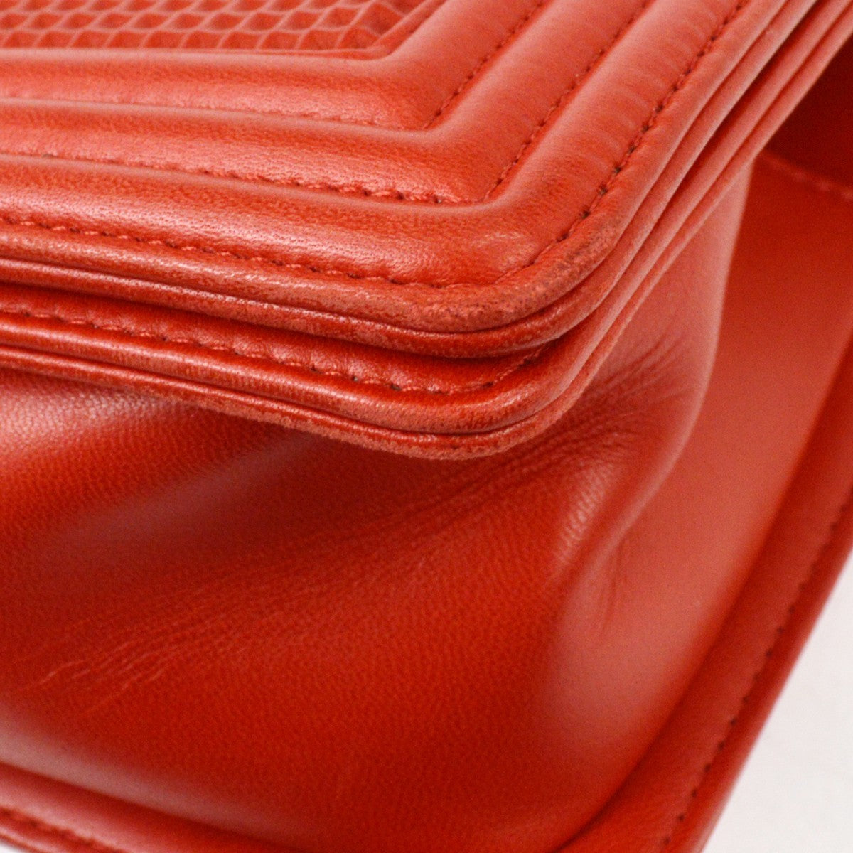 Brand : Chanel Model : Boy Flap Bag Style : Cube Embossed Lambskin Serial number : 18988646 Inclusions : Serial Sticker, Authenticity Card, Dust bag