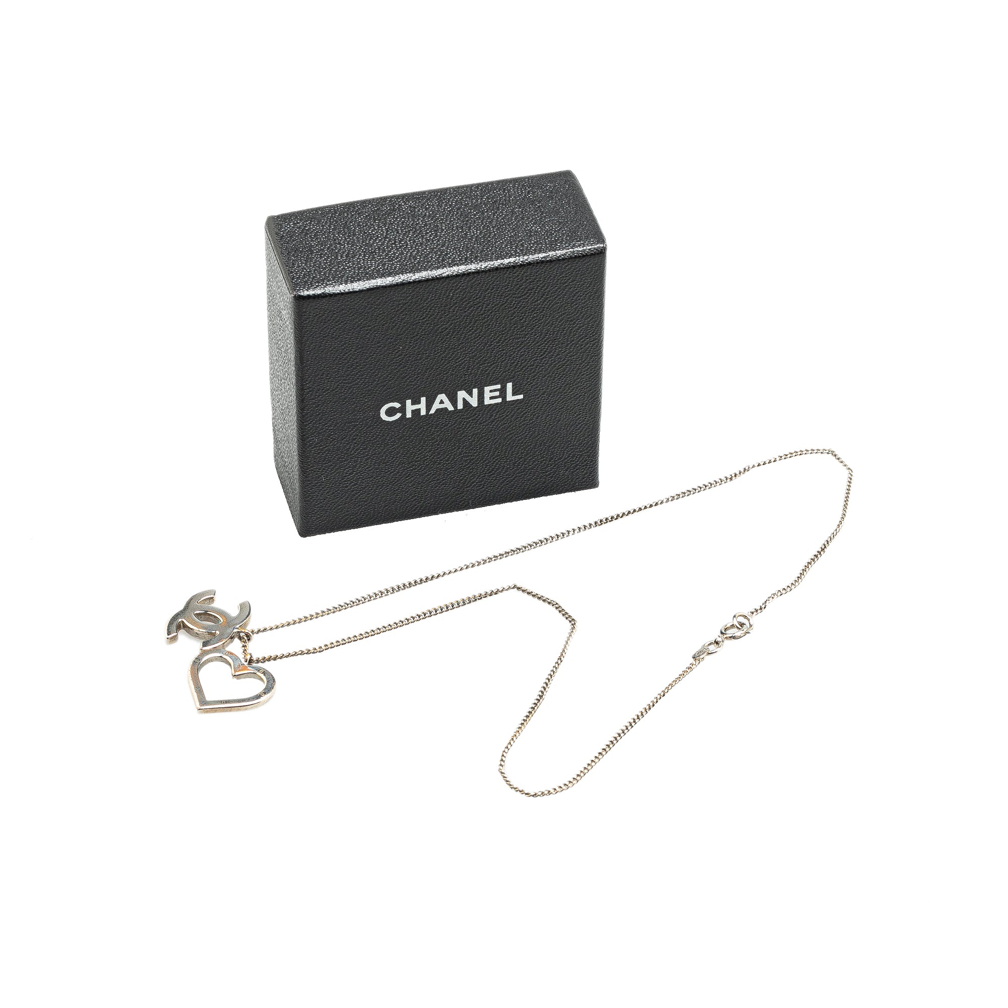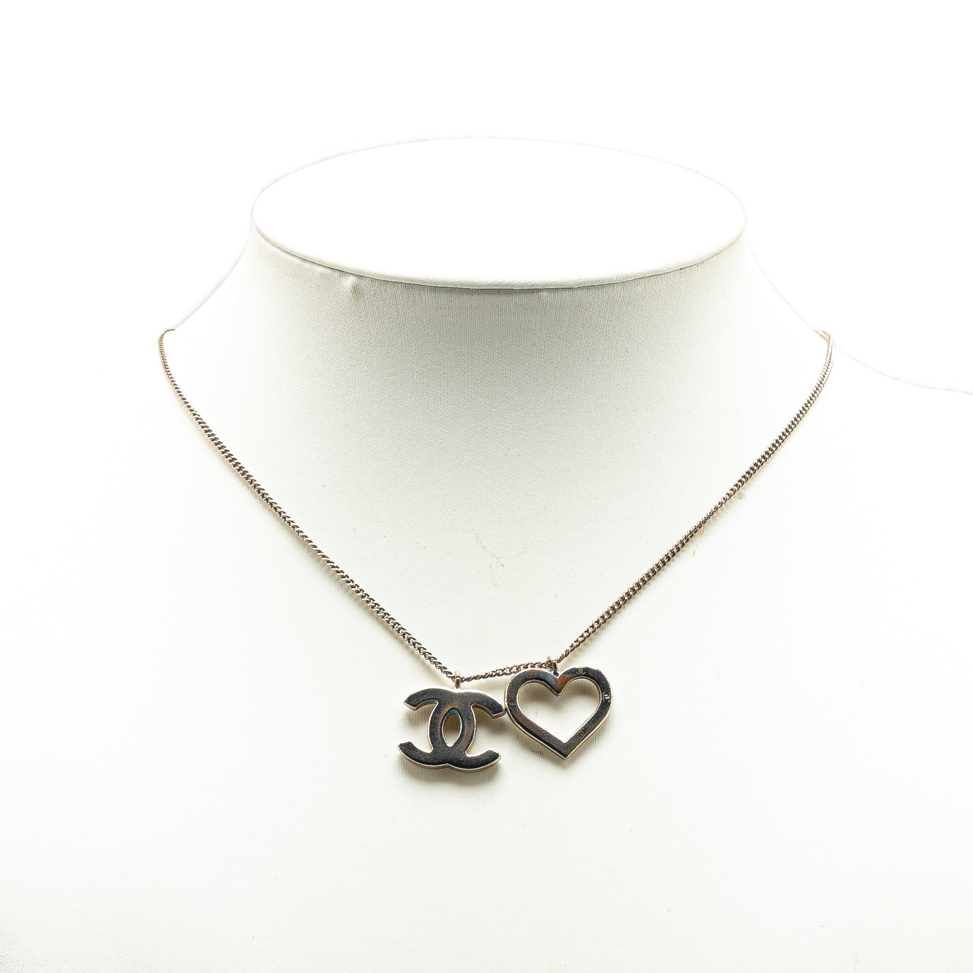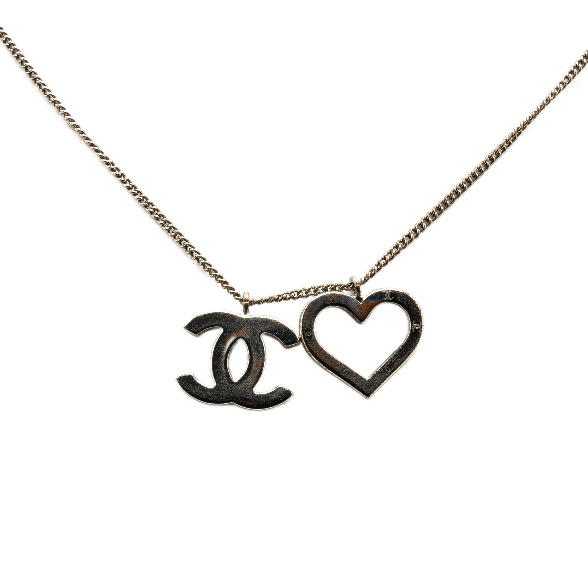 Chanel Brass CC Open Heart Pendant Necklace