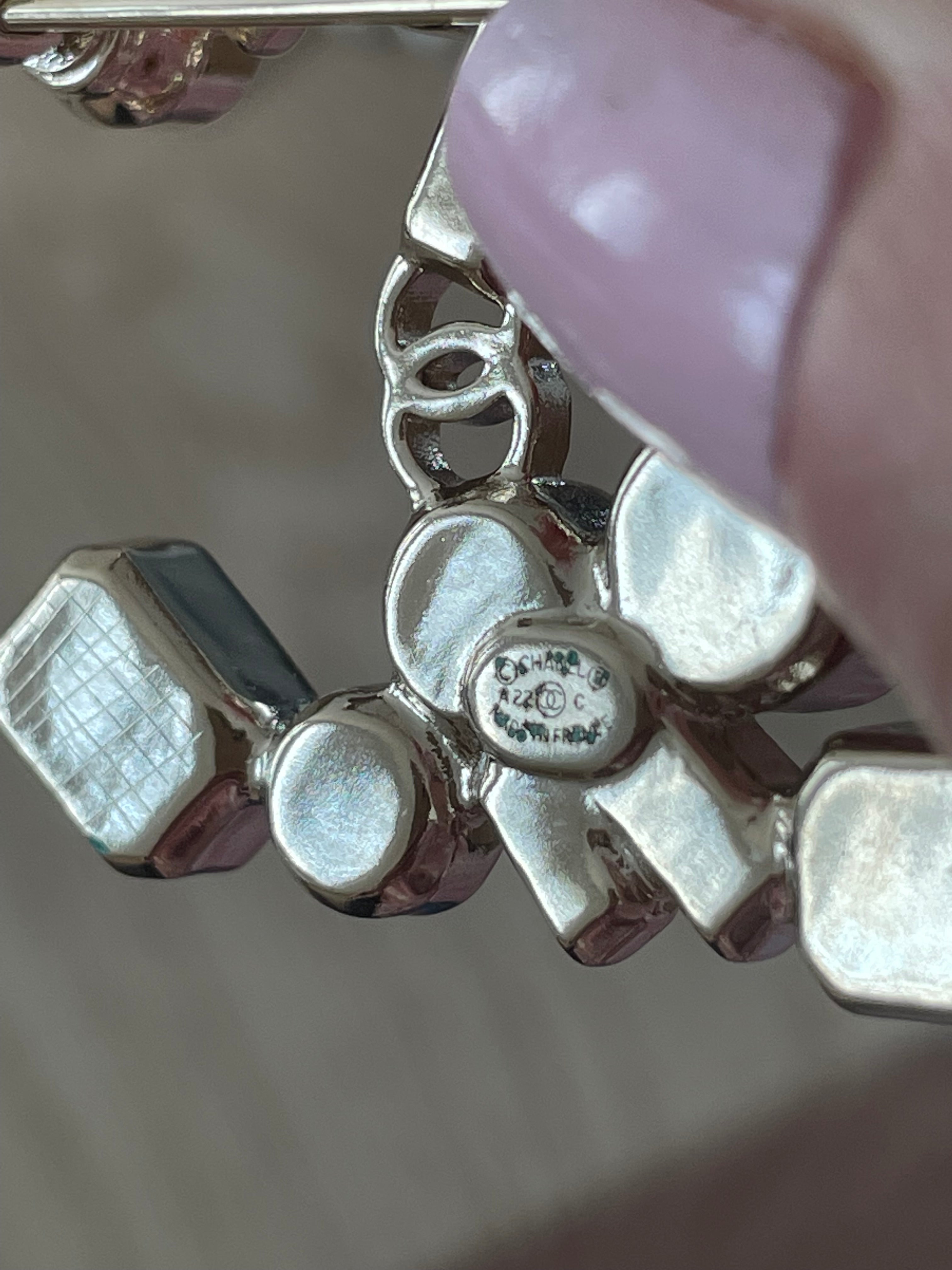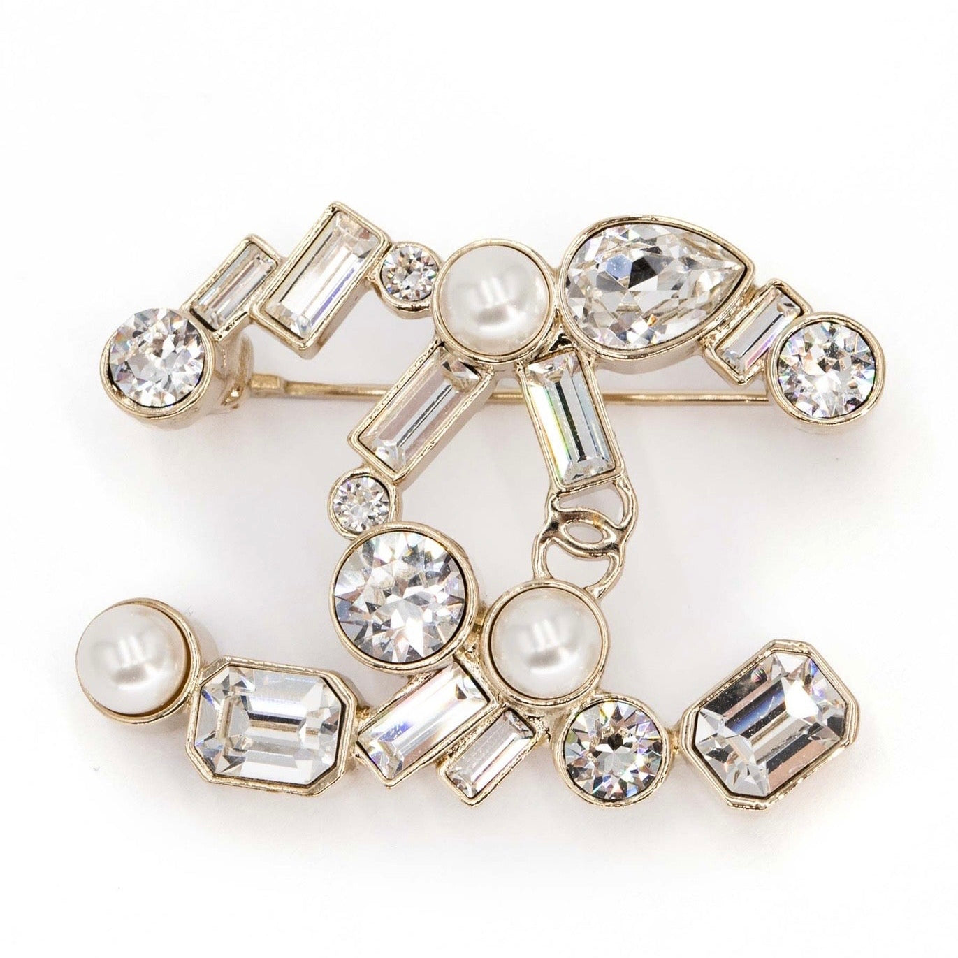 Chanel double CC brooch with round and square rhinestones.. - Chanel hallmark. - Double CC. - Champagne Metal. - Dimensions: 4.2 x 3 cm. Excellent condition but note slight marks on the back punch but worn is not visible at all. Sold in a neutral box