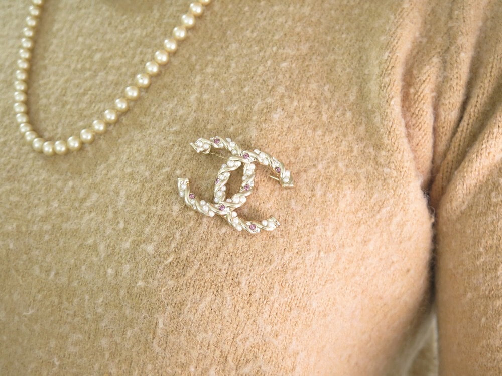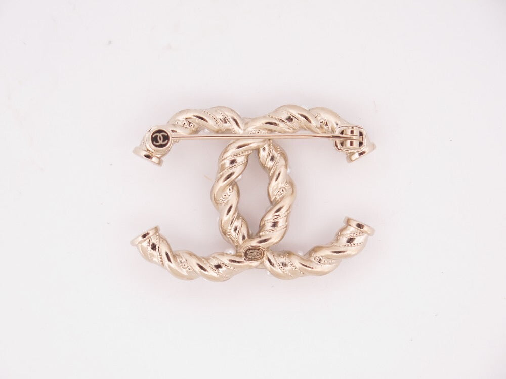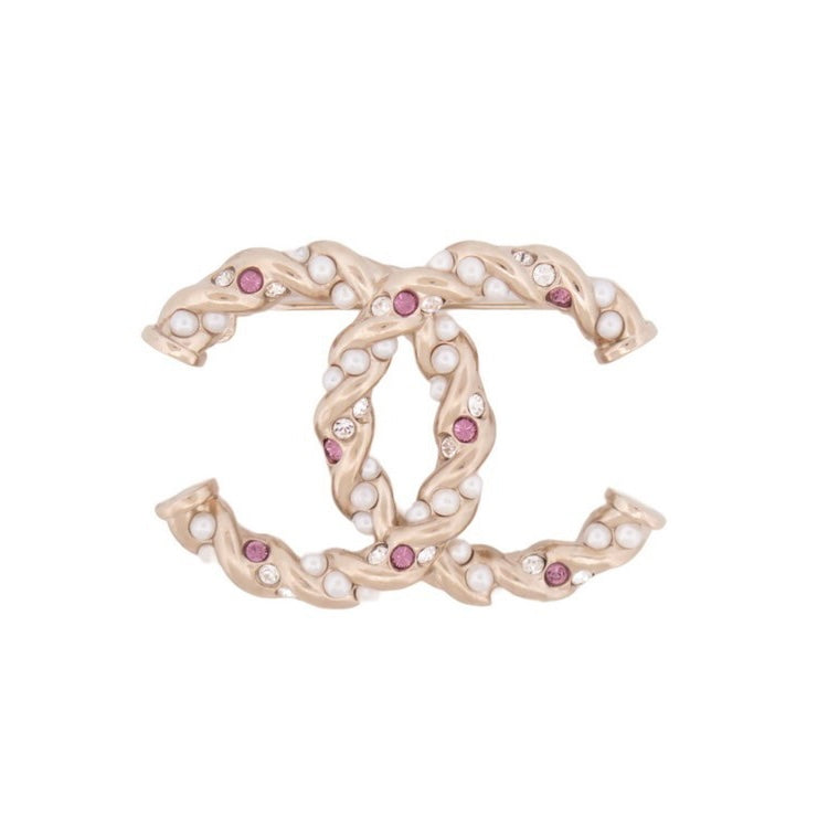 Chanel gold brooch with crystals and pearls - Chanel hallmark - Double CC - Dimensions: 4.5 x 3.3 cm - excellent condition Sold in a neutral box