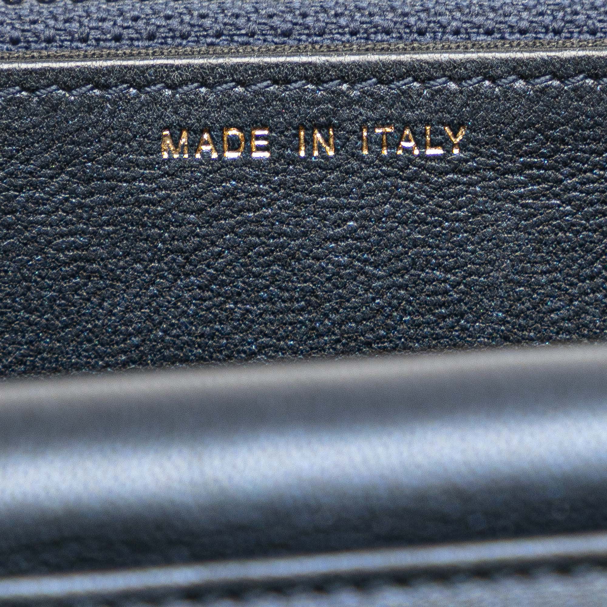 The Boy wallet on chain features a stitched calf leather body, a leather woven chain strap, a front flap with push lock closure, and interior zip and slip pockets. Inclusion: authenticity card. Retail Price: 3500.00