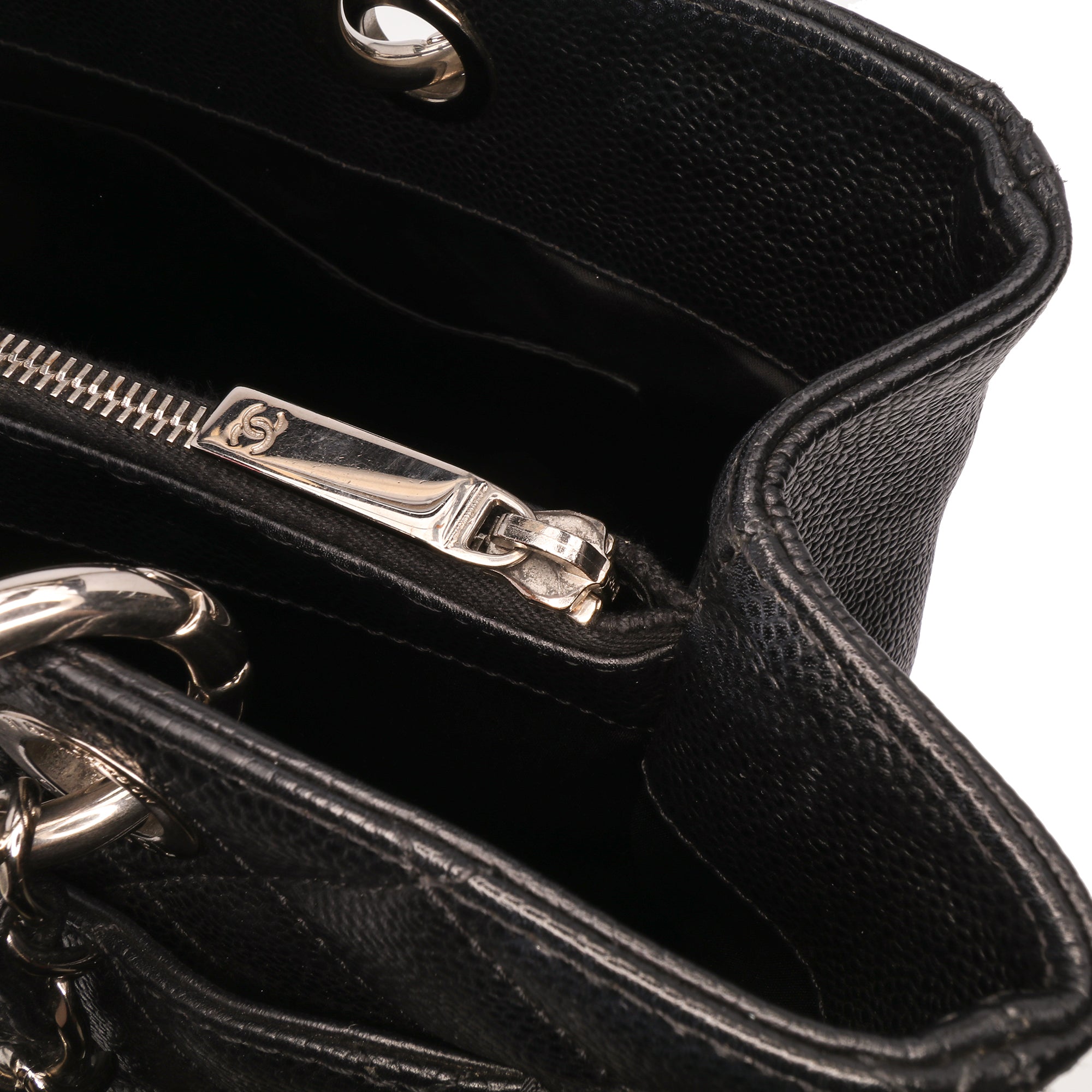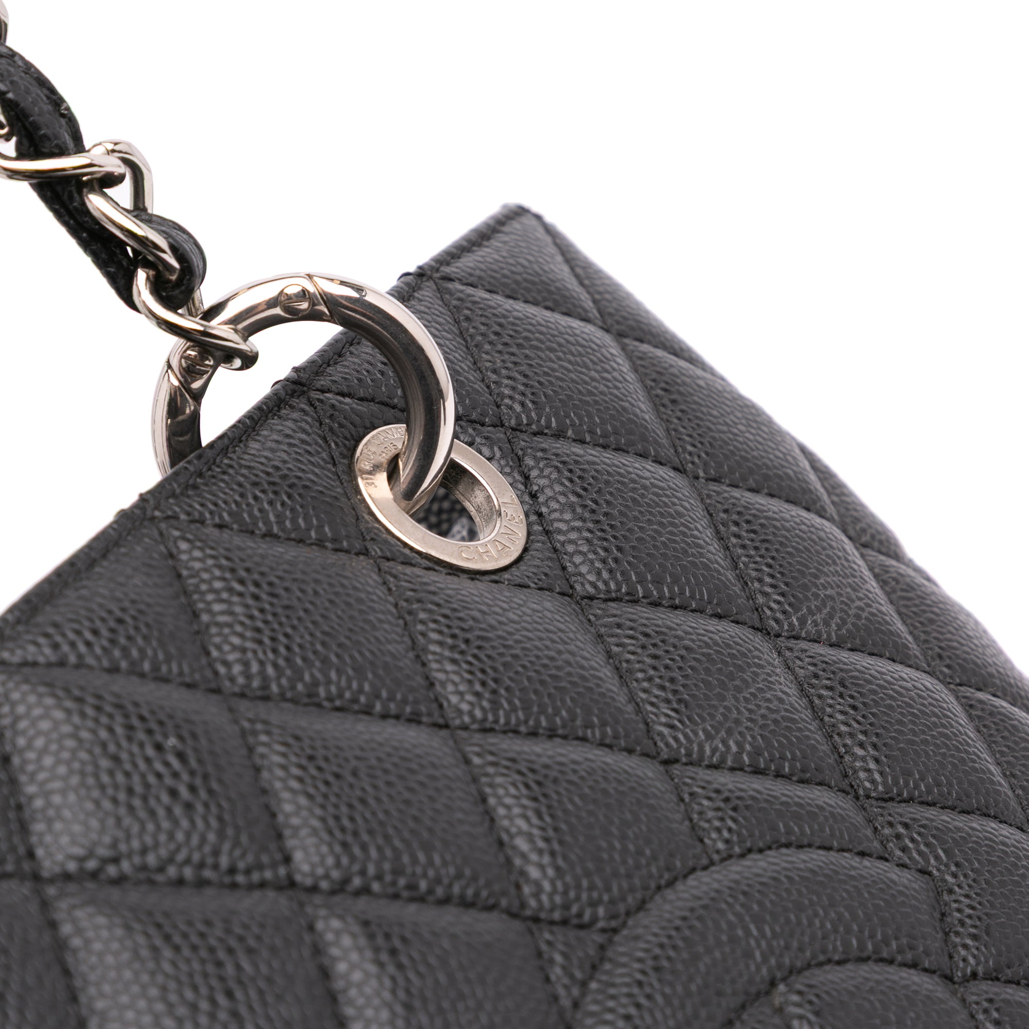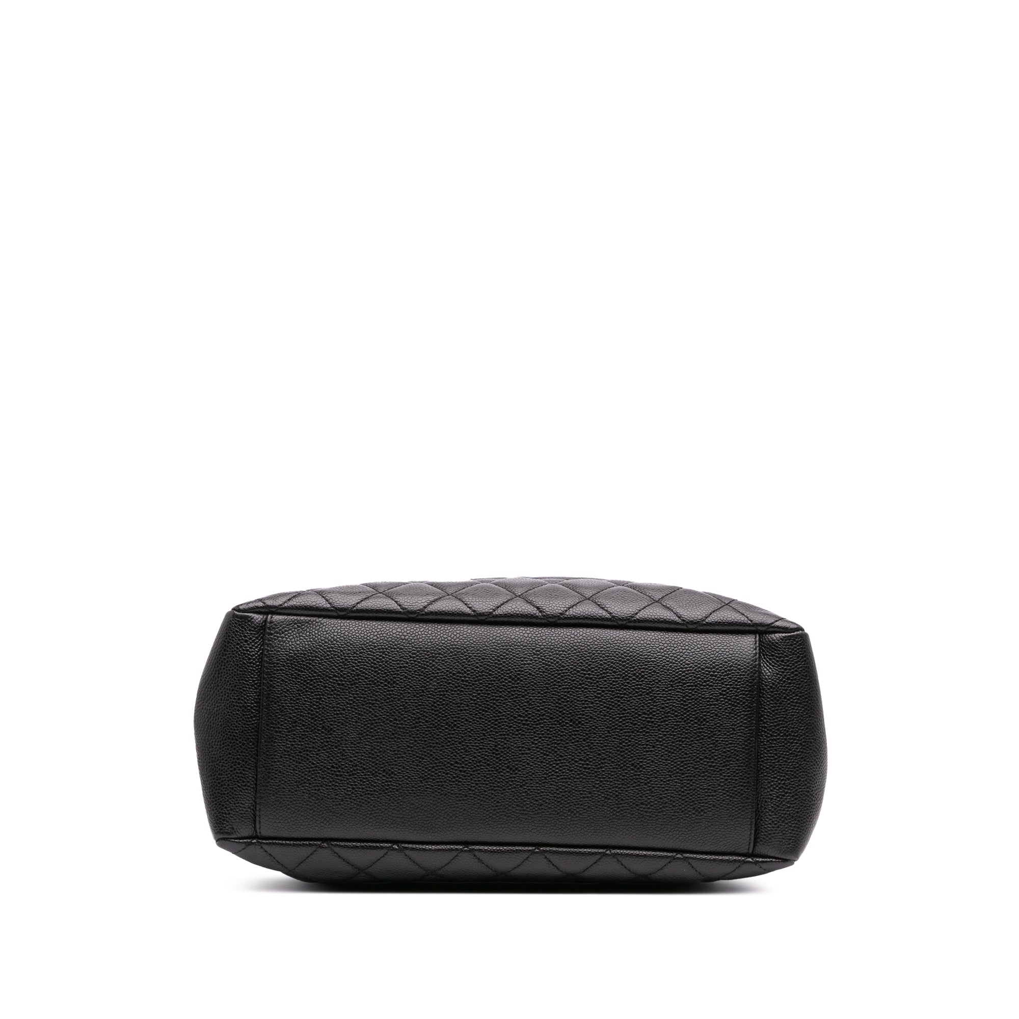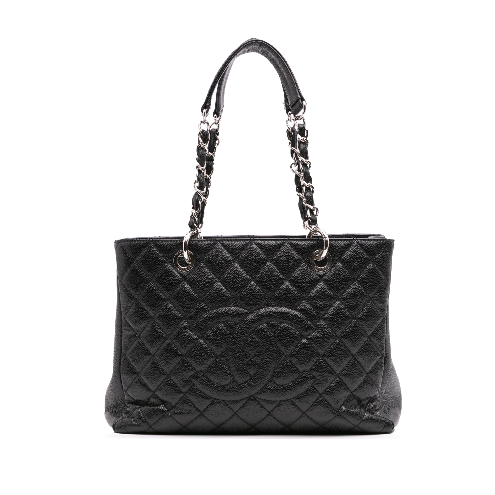 The Grand Shopping Tote features a quilted leather body, leather woven chain shoulder straps, an open top, an exterior back slip pocket, an interior zip compartment, and interior zip and slip pockets. Inclusion: Dust bag. Retail Price: 3890.00