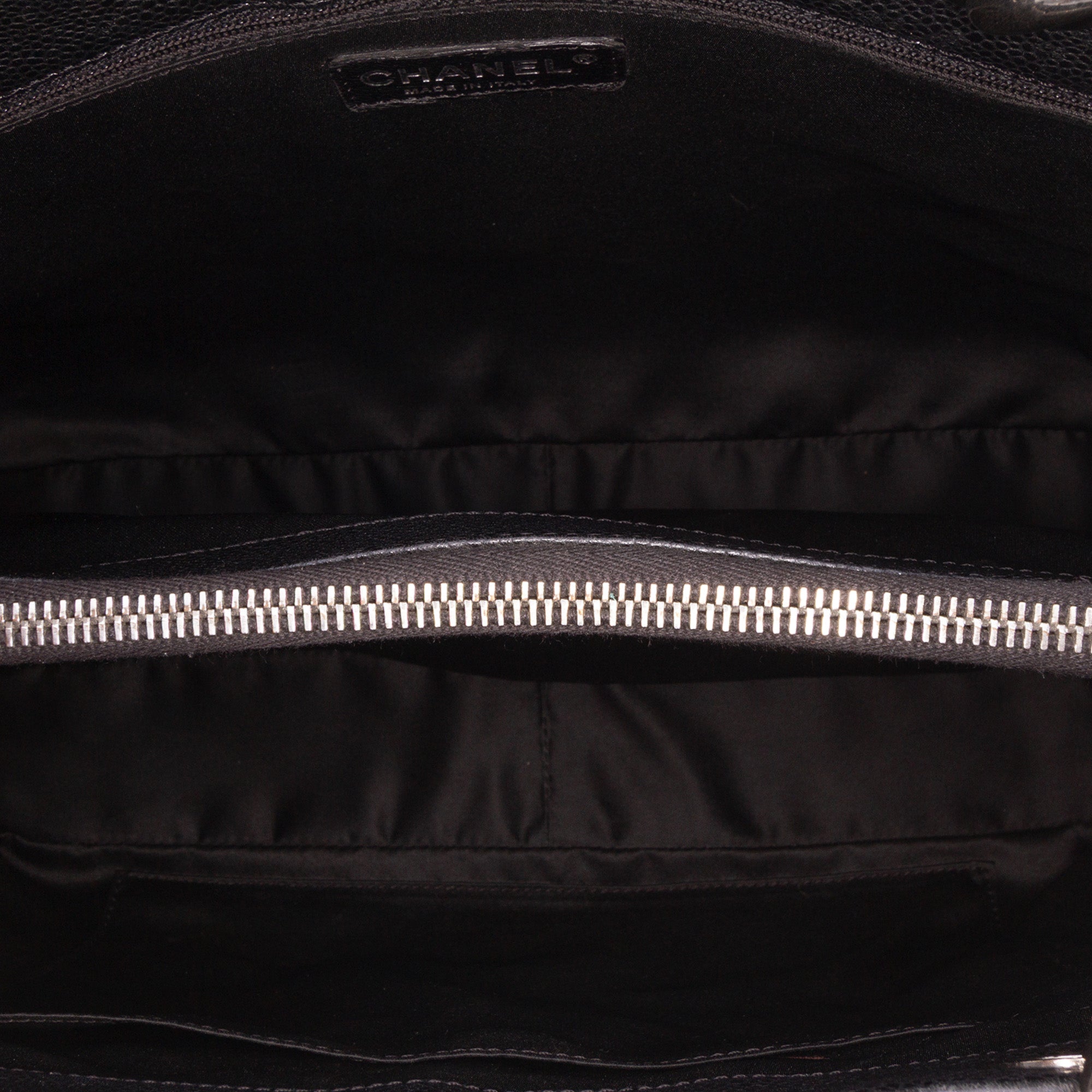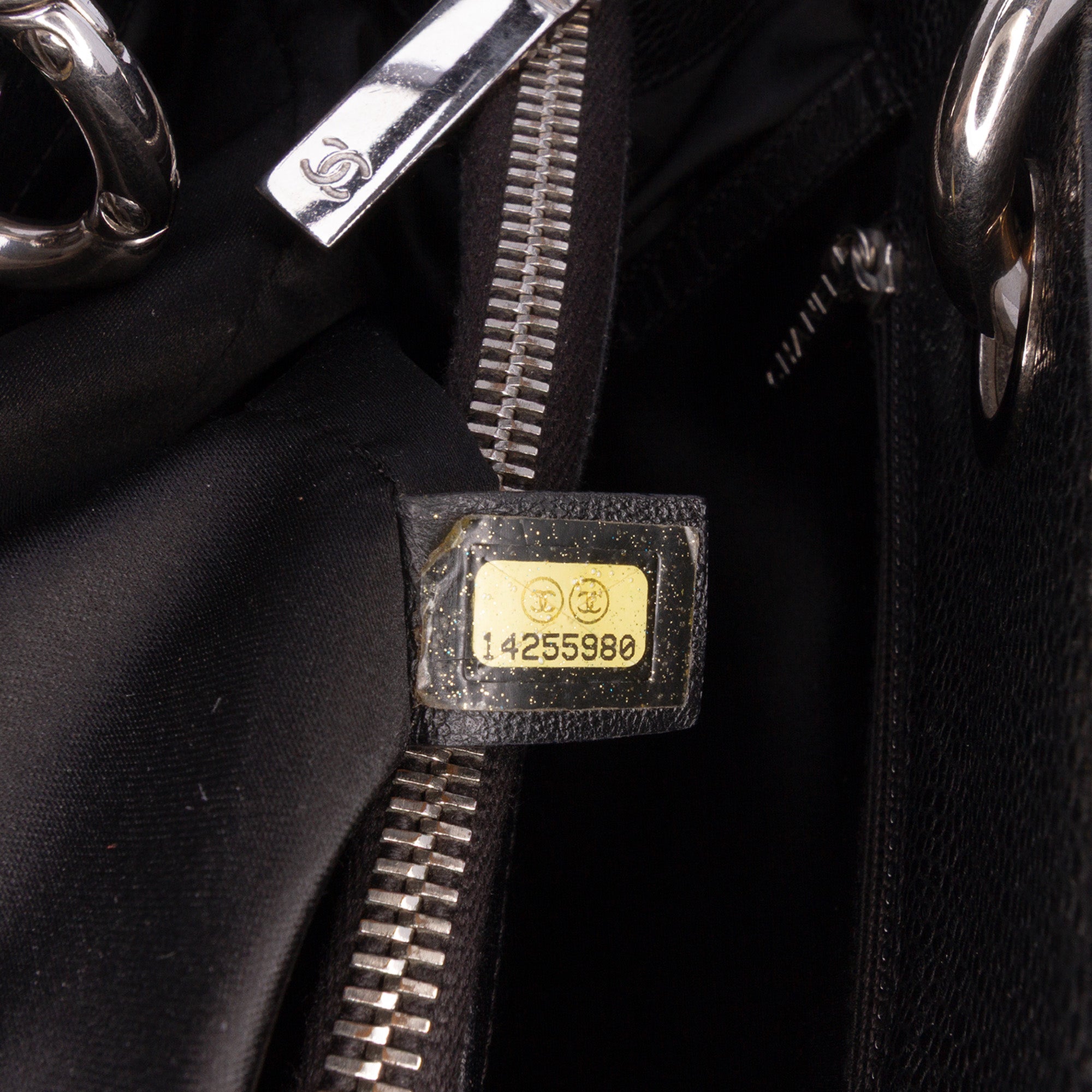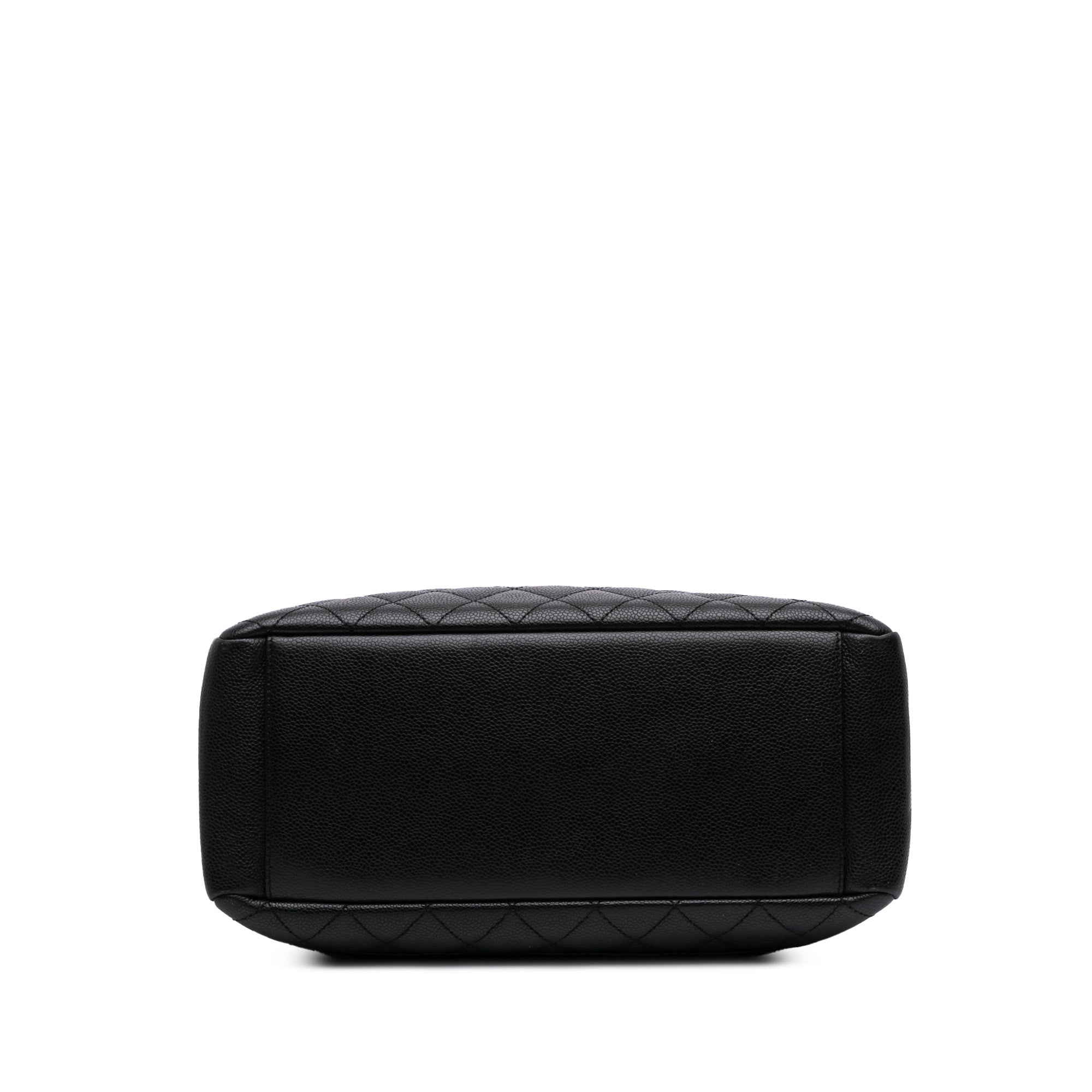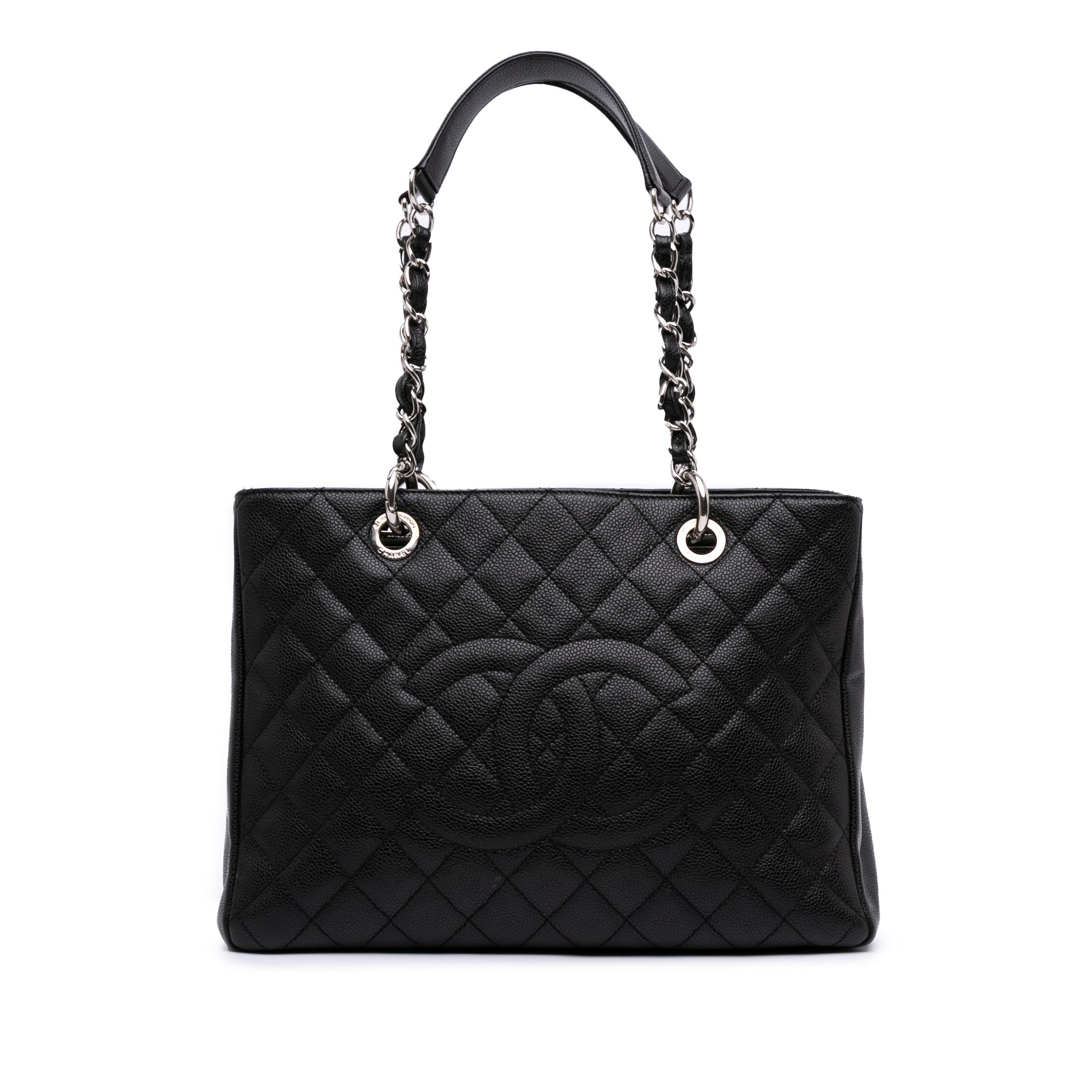 The Grand Shopping Tote features a quilted leather body, leather woven chain shoulder straps, an open top, an exterior slip pocket, and interior zip and slip pockets. Inclusion: authenticity card. Retail Price: 3890.00