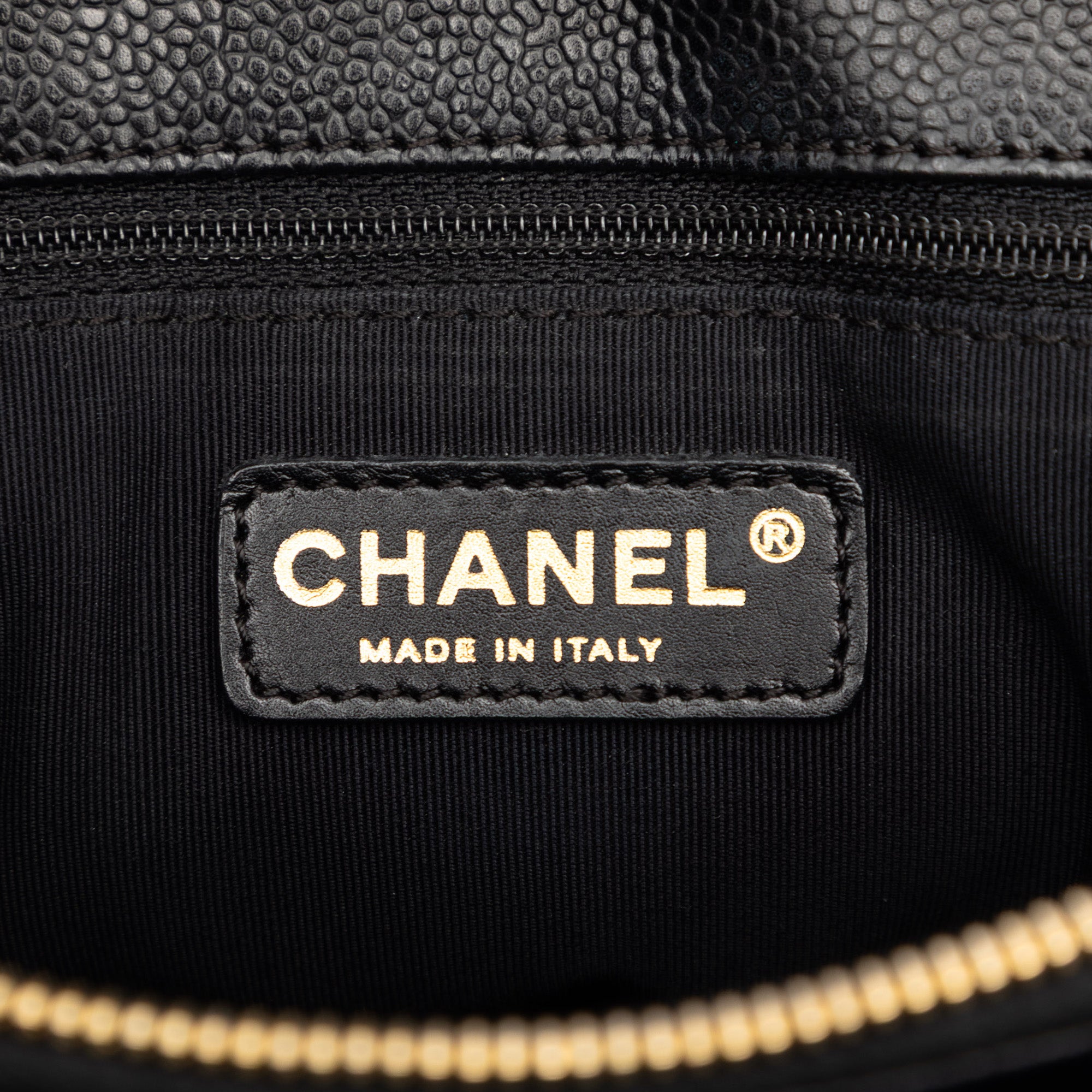 The Grand Shopping Tote features a quilted Caviar leather body, leather woven chain shoulder straps, an open top, an interior zip compartment, an exterior back slip pocket, and interior zip and slip pockets. Retail Price: 3948.00
