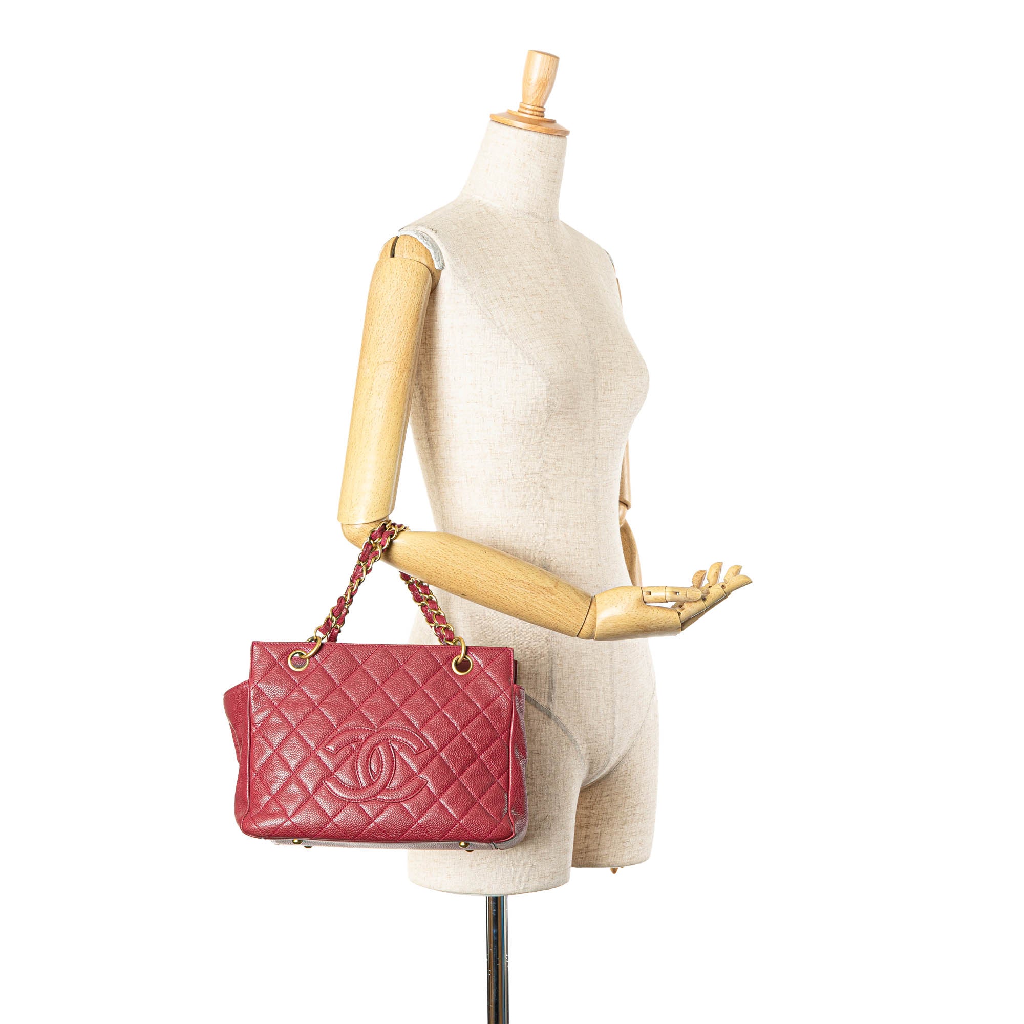 The Shopping Bag tote bag features a quilted caviar leather body, leather woven chain straps, a top zip closure, and an interior zip and slip pockets. Inclusion: Dust bag, authenticity card. Retail Price: 3395.00