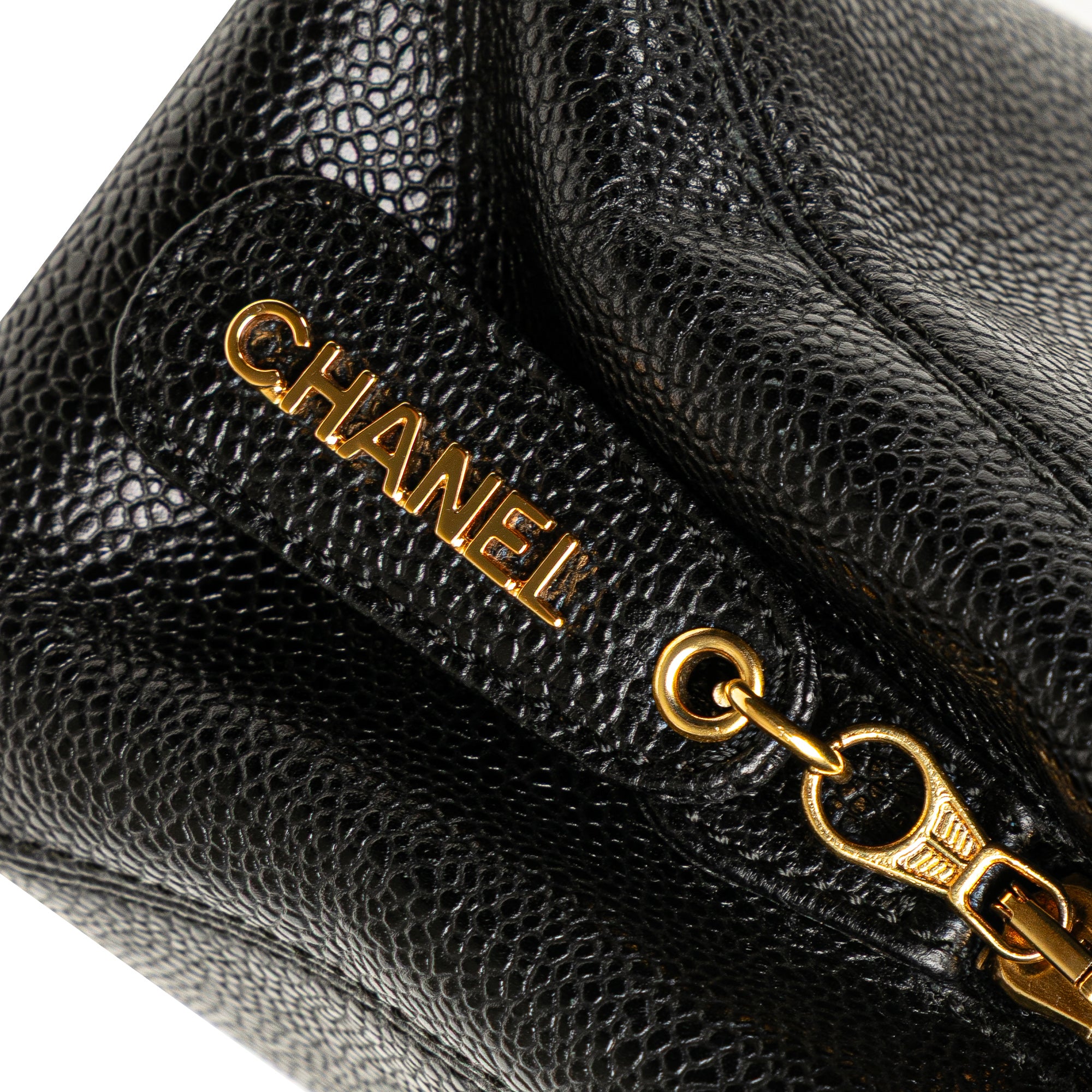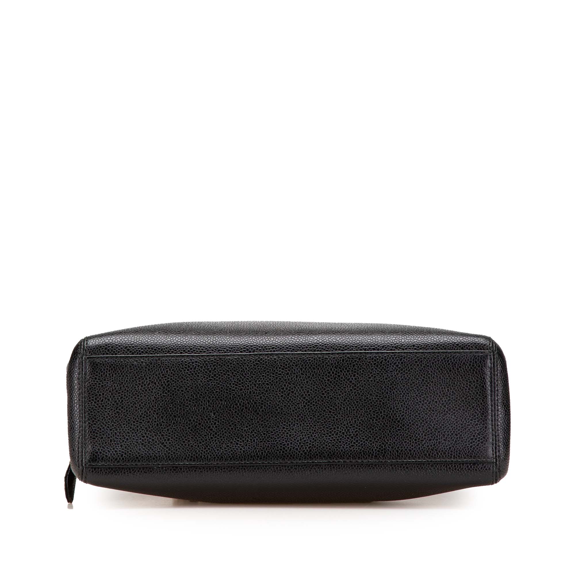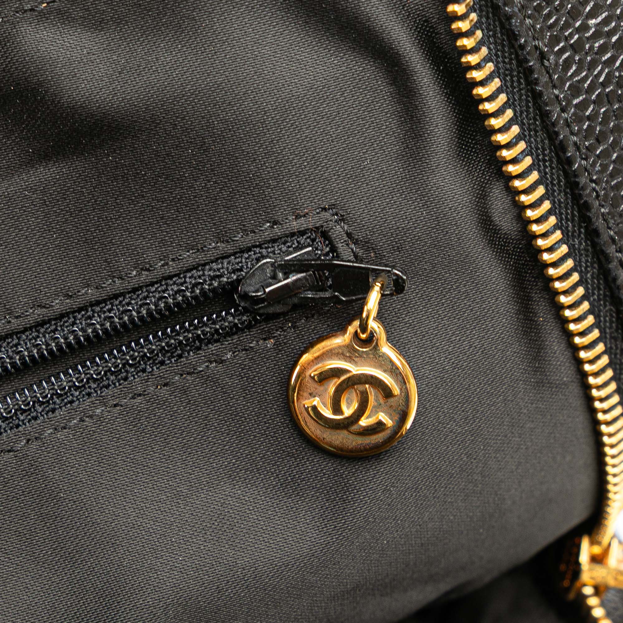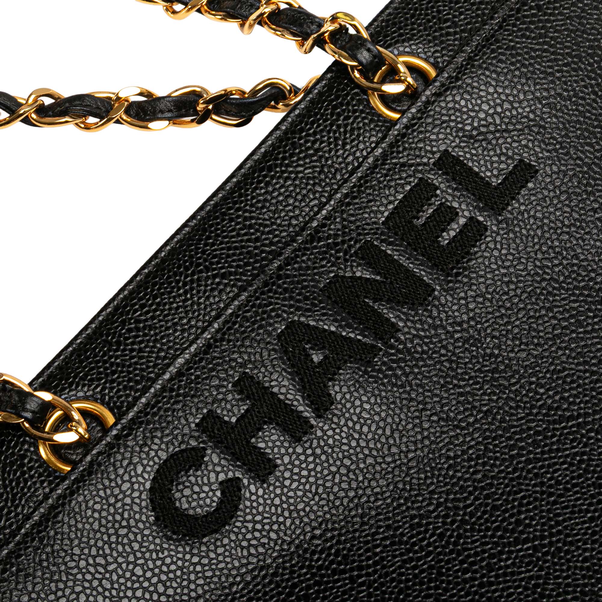 This tote bag features a caviar leather body, leather woven chain link straps, an open top, an interior zip compartment, an exterior front slip pocket, and an interior zip pocket. Inclusion: authenticity card. Retail Price: 3400.00