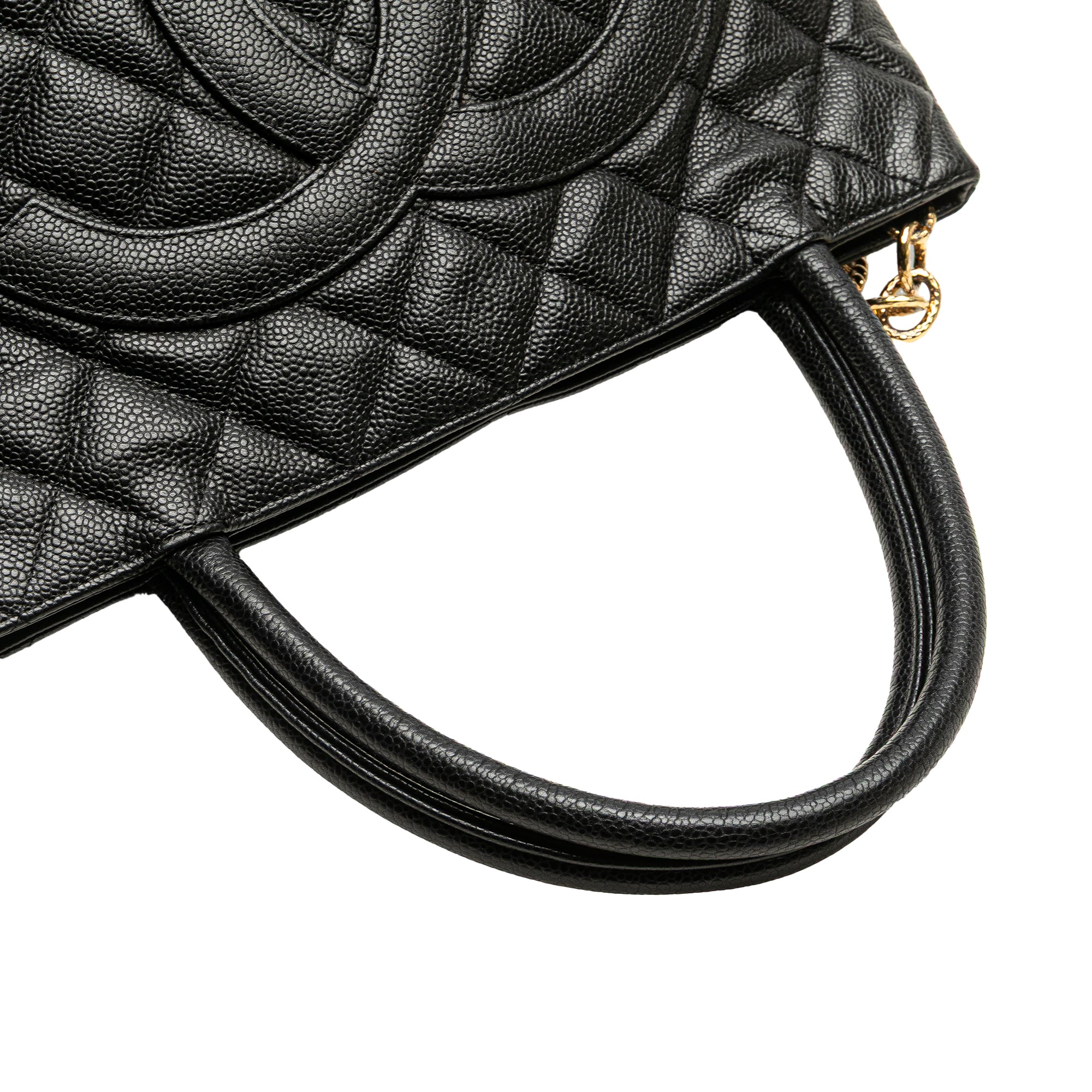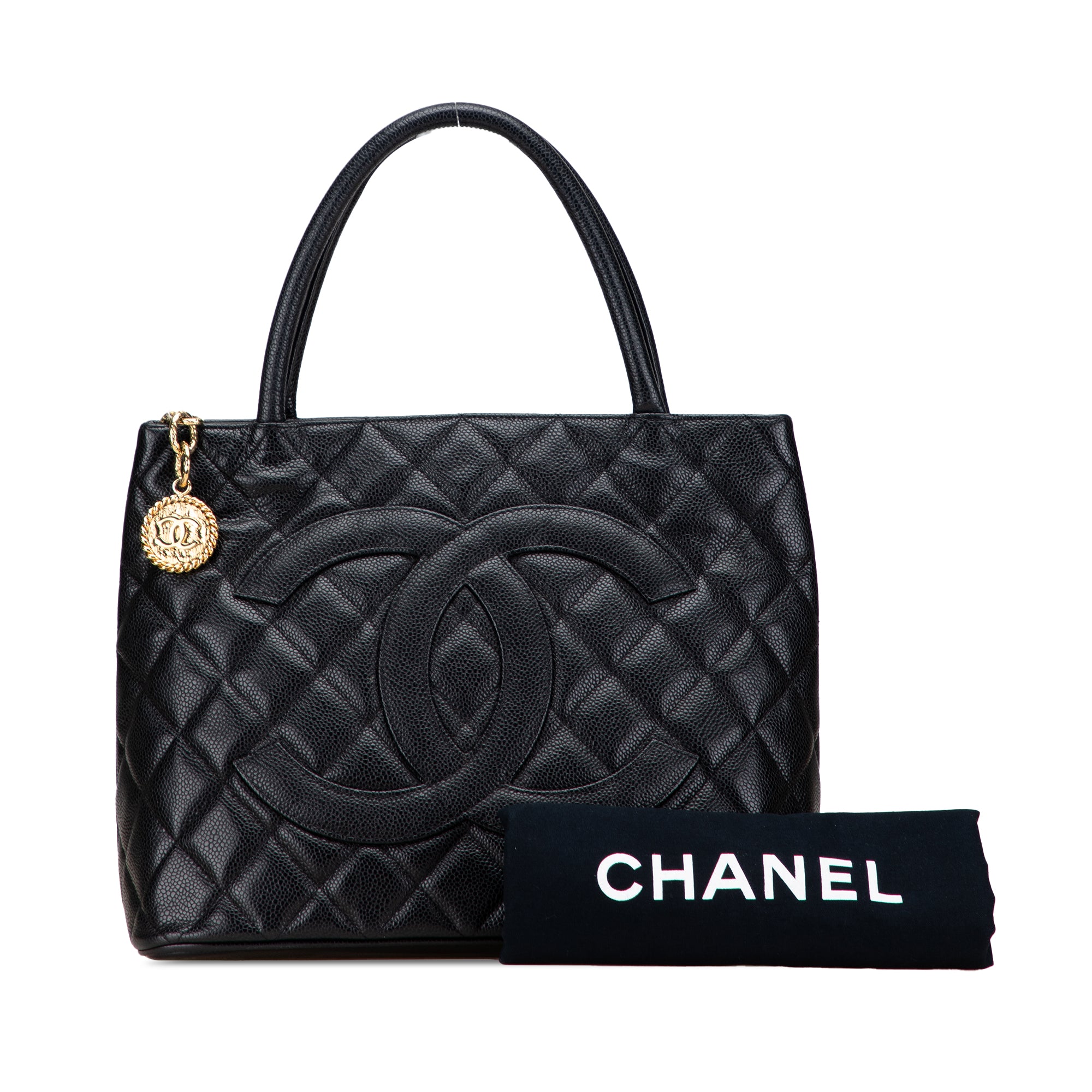 The Medallion tote bag features a quilted caviar leather body, rolled leather handles, a top zip closure, an exterior back slip pocket, and interior zip and slip pockets. Inclusion: Dust bag. Retail Price: 2513.00