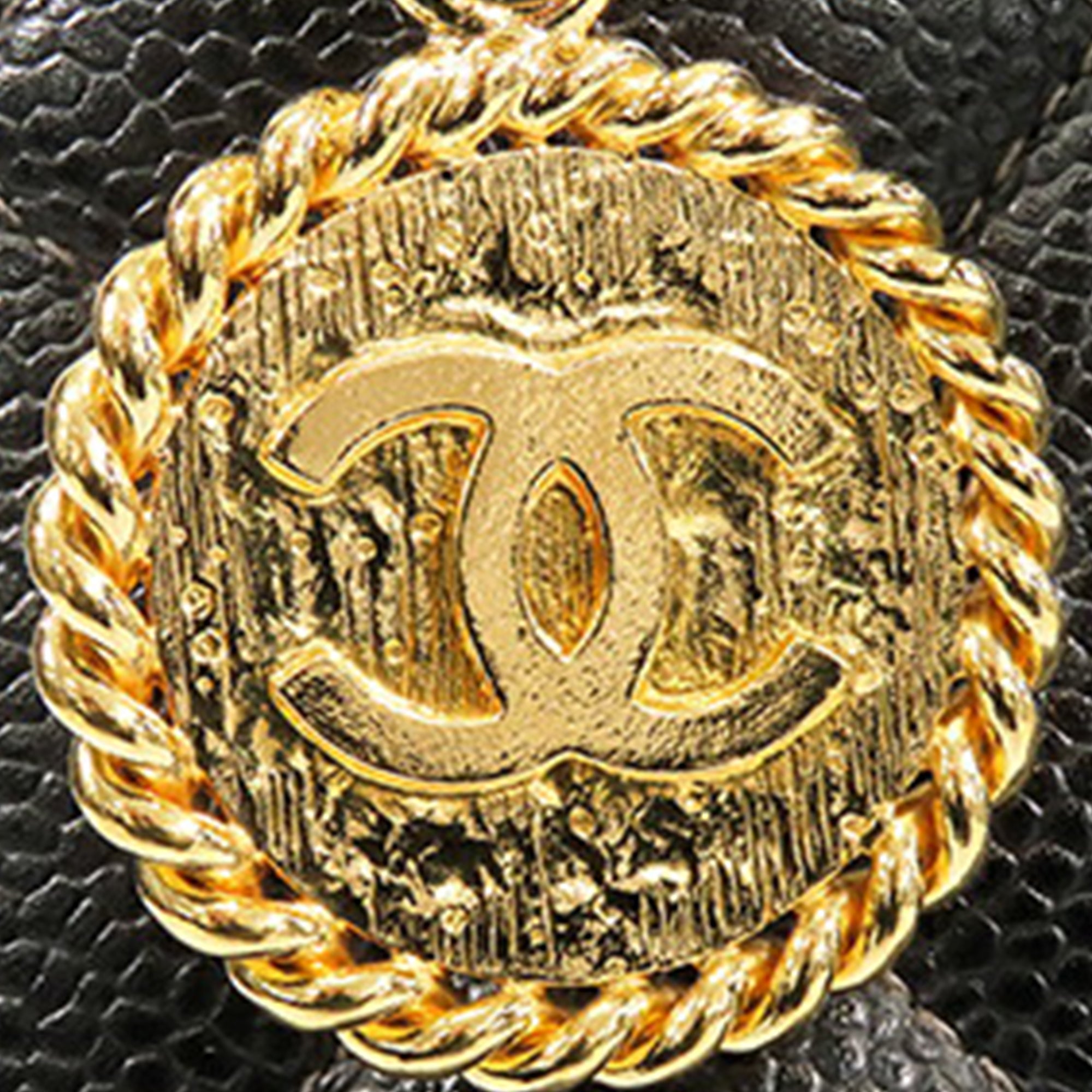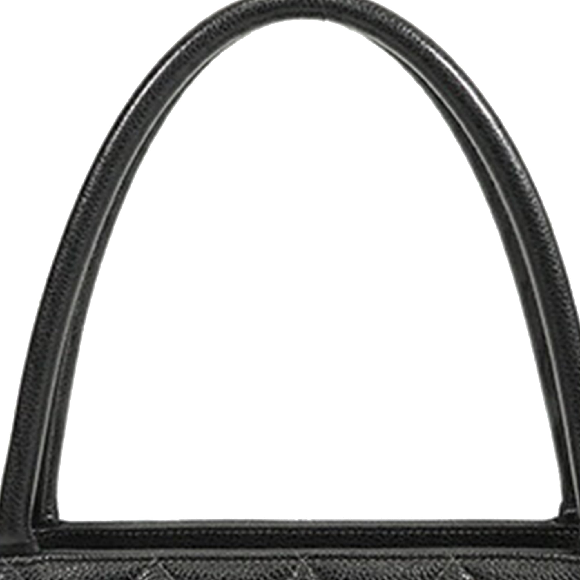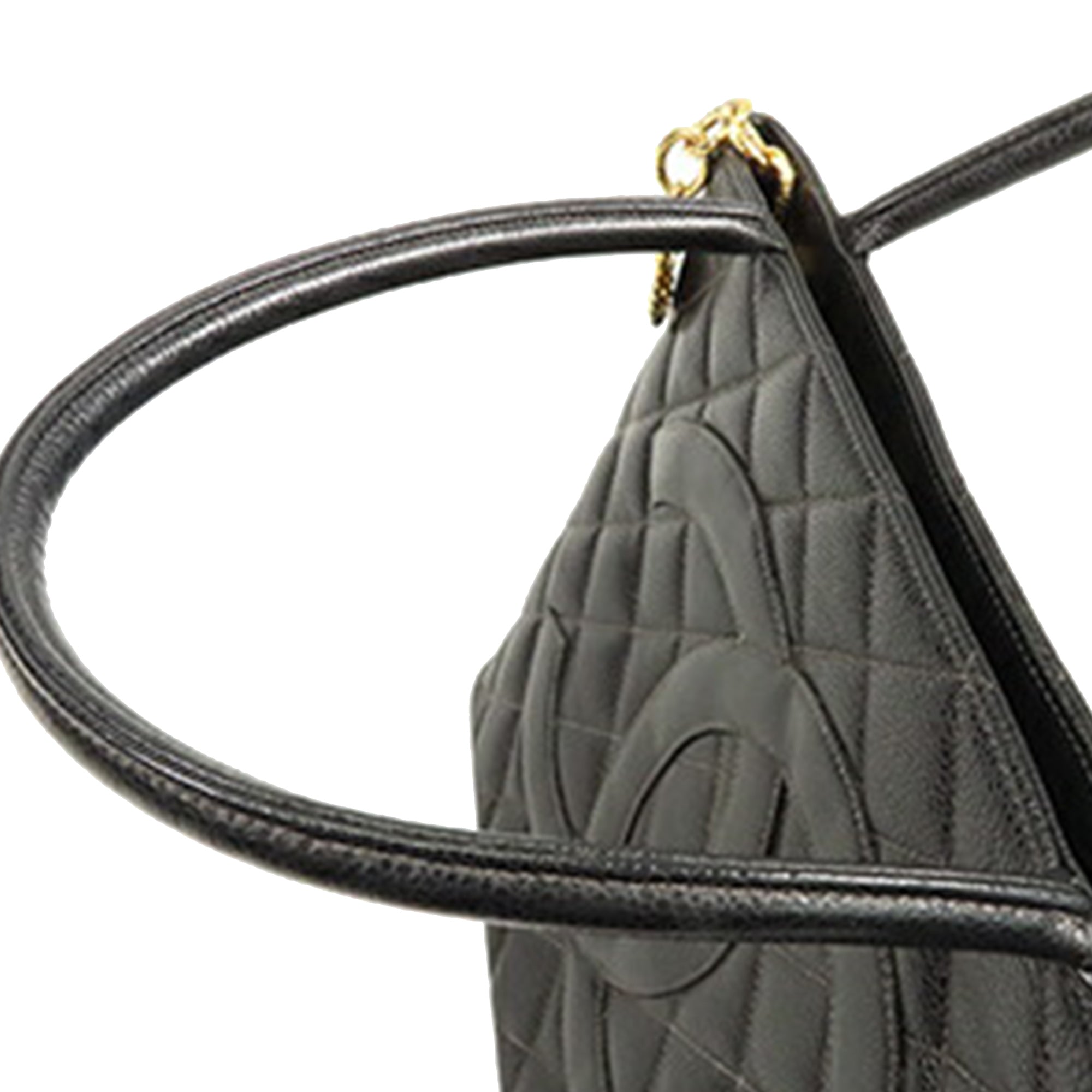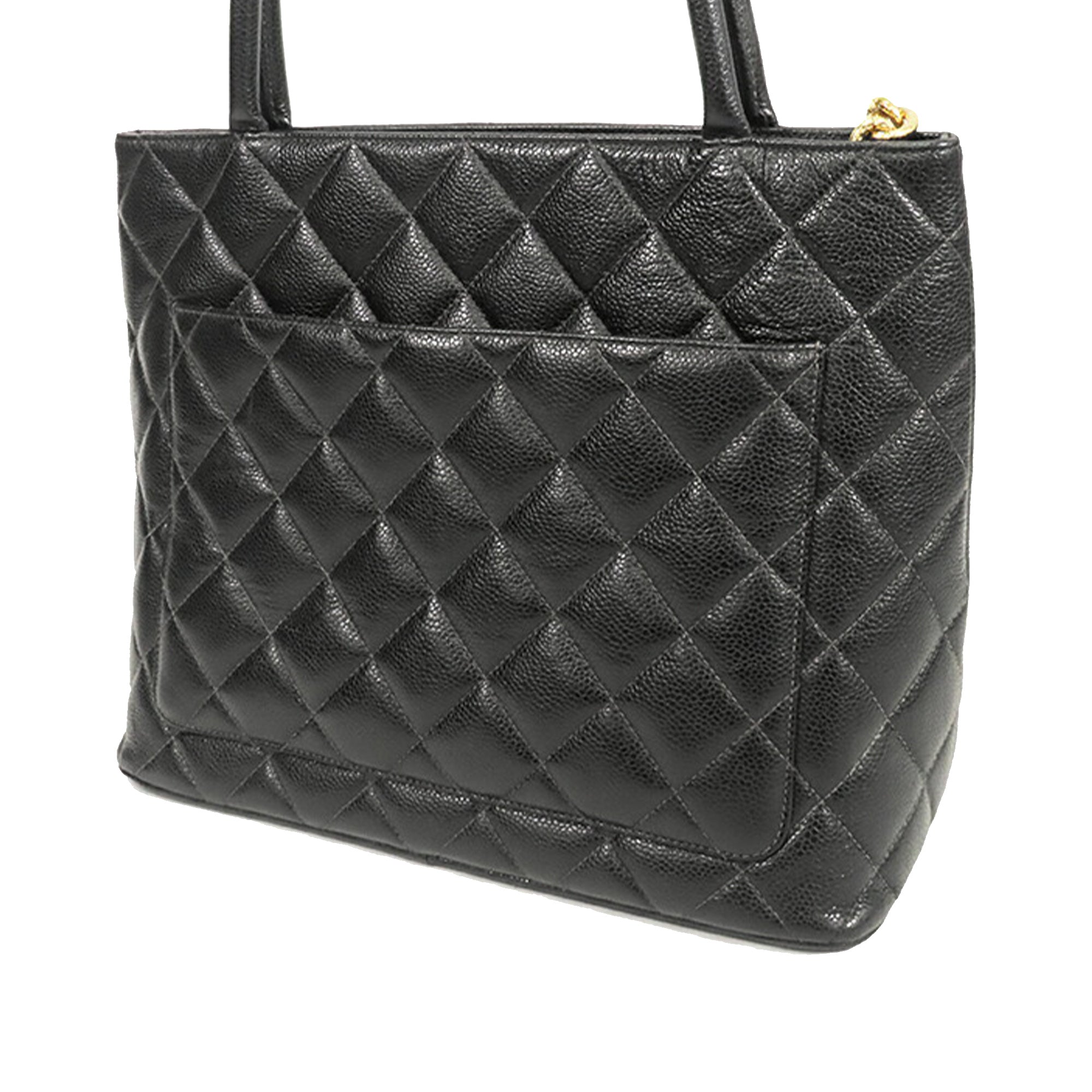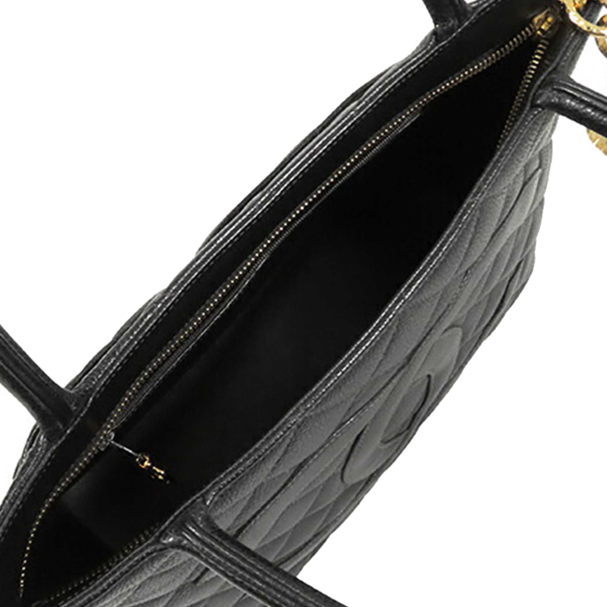 The Medallion tote bag features a quilted caviar leather body, rolled leather handles, a top zip closure, an exterior back slip pocket, and interior zip and slip pockets. Inclusion: authenticity card. Retail Price: 2400.00