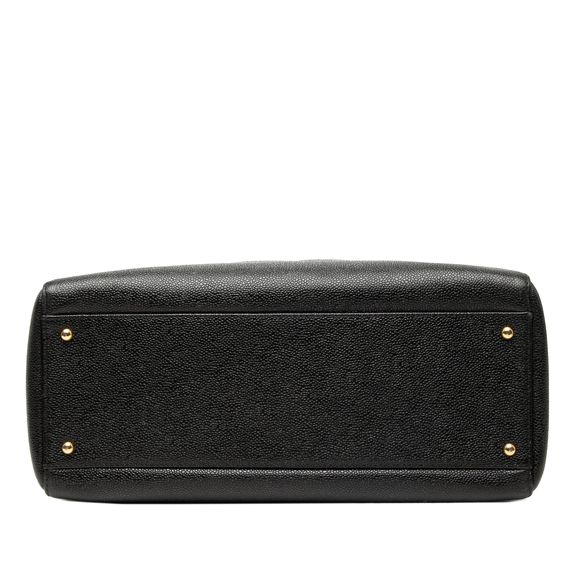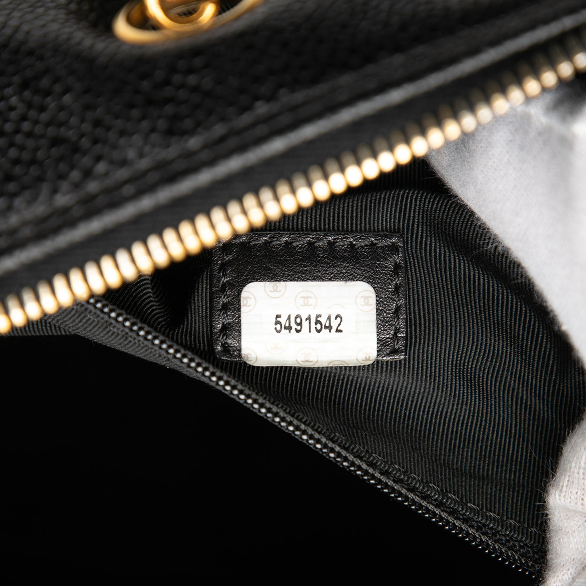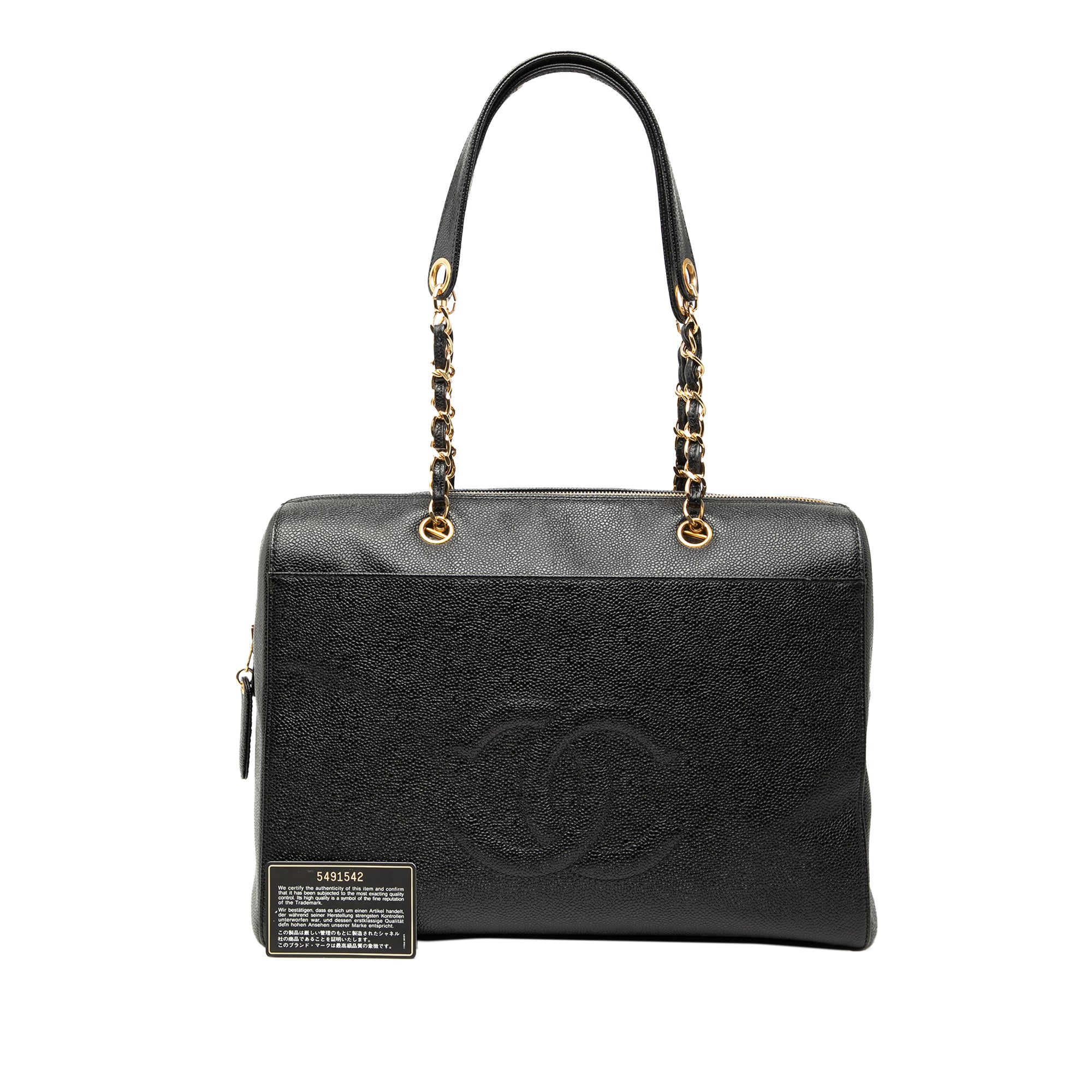 This shoulder bag features a caviar leather body, leather woven chain-link straps with leather guard, a top zip closure, an exterior front slip pocket, an exterior back zip pocket, and interior zip pockets. Inclusion: authenticity card. Retail Price: 3000.00