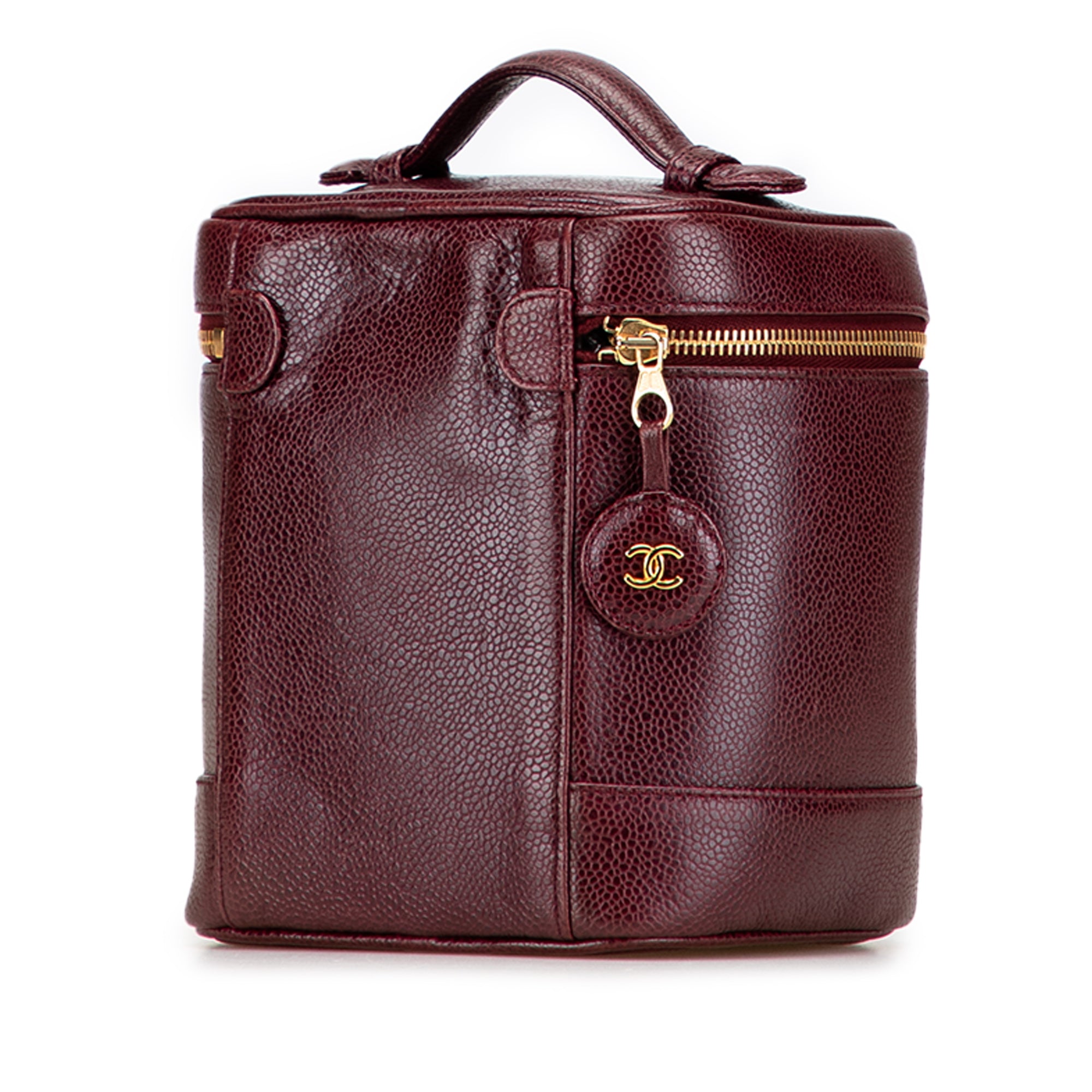 This vanity bag features a caviar leather body, a flat top handle, a flat strap, a zip around closure and an interior slip pocket. Inclusion: authenticity card. Retail Price: 1980.00