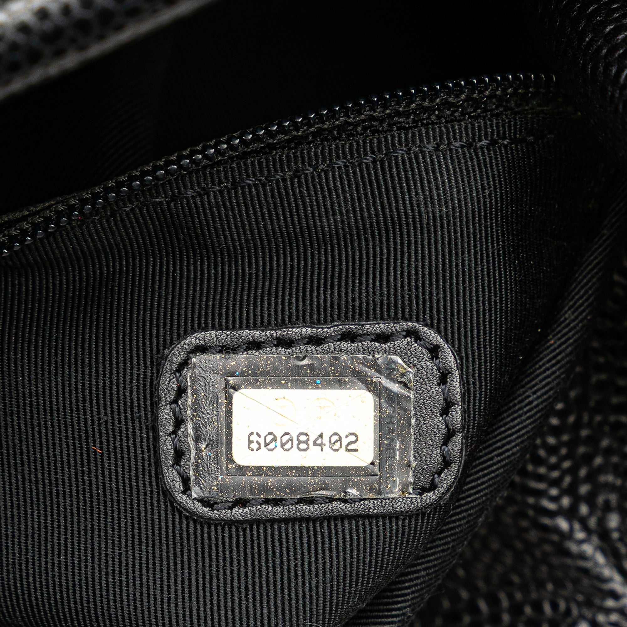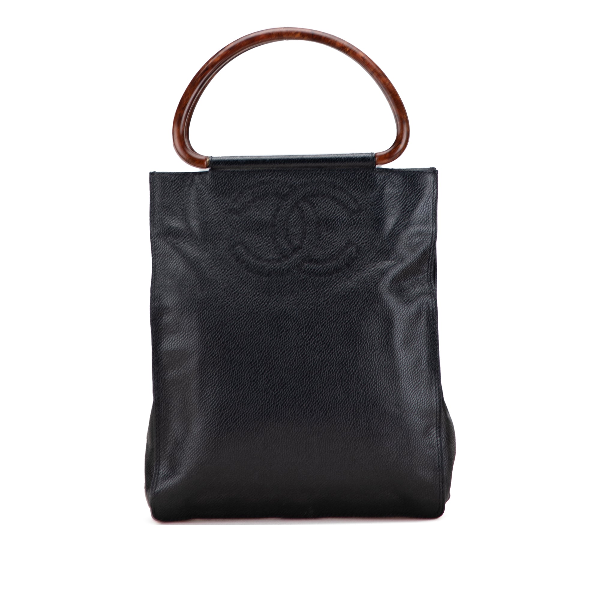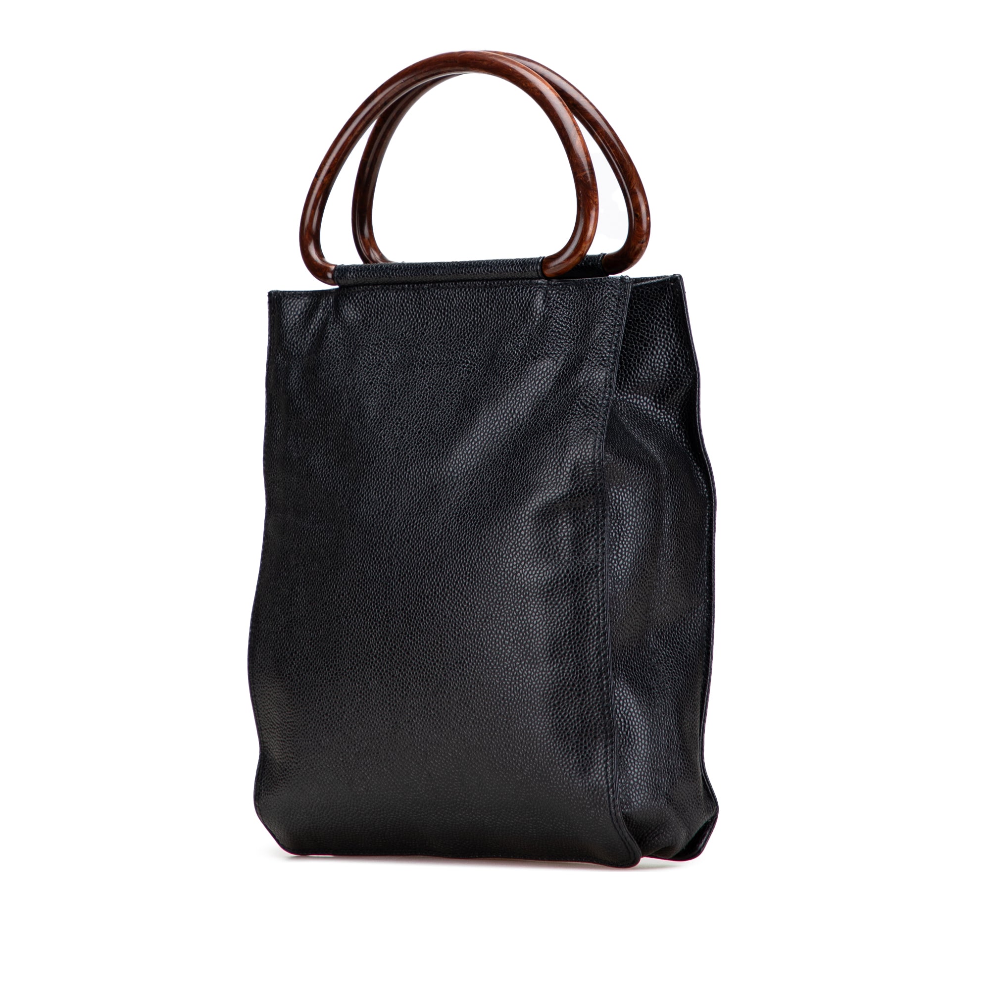 This tote features a caviar body, wooden top handles, an open top, and an interior zip pocket. Retail Price: 3150.00