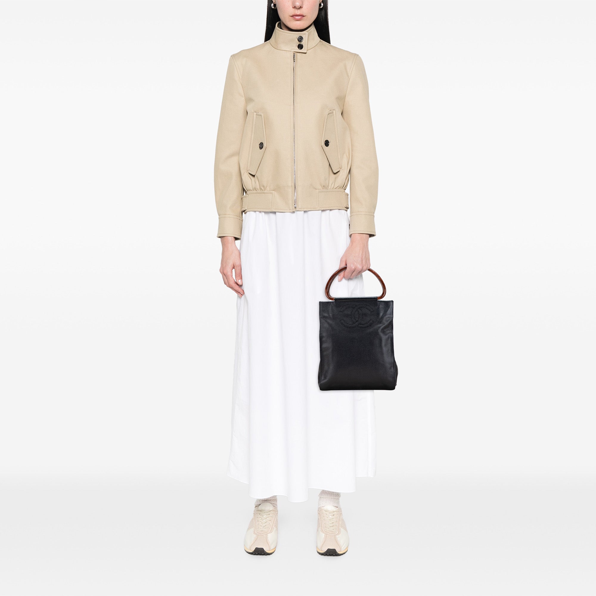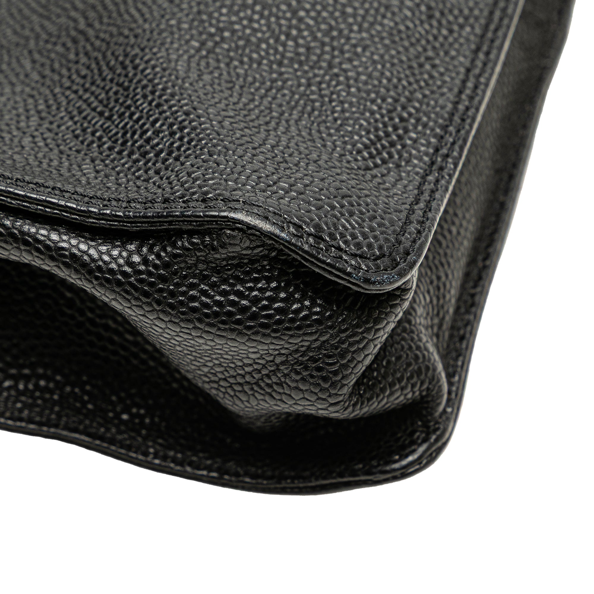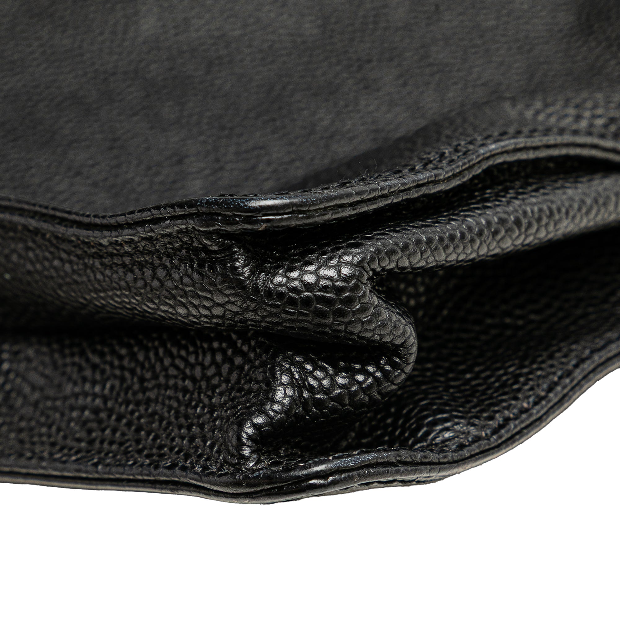 This tote features a caviar body, wooden top handles, an open top, and an interior zip pocket. Retail Price: 3150.00